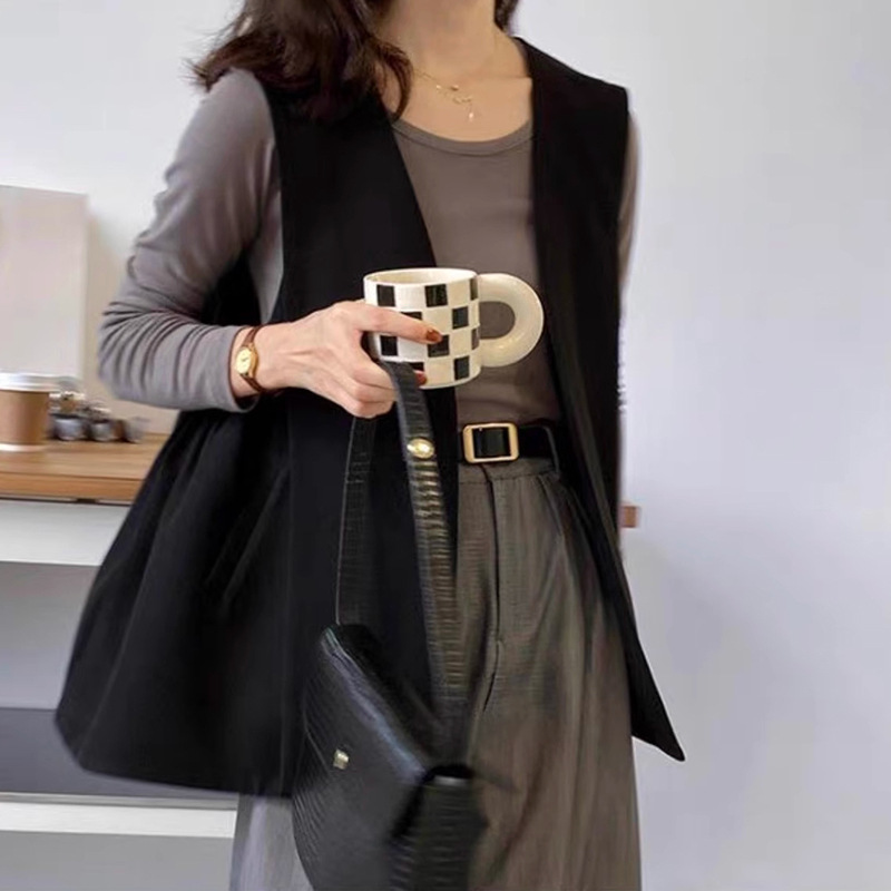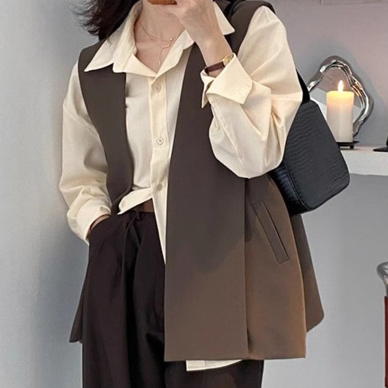 여성을 위한 한국식 루즈 캐주얼 정장 조끼 재킷, 패셔너블한 통근 솔리드 컬러 민소매 조끼 조끼 탑