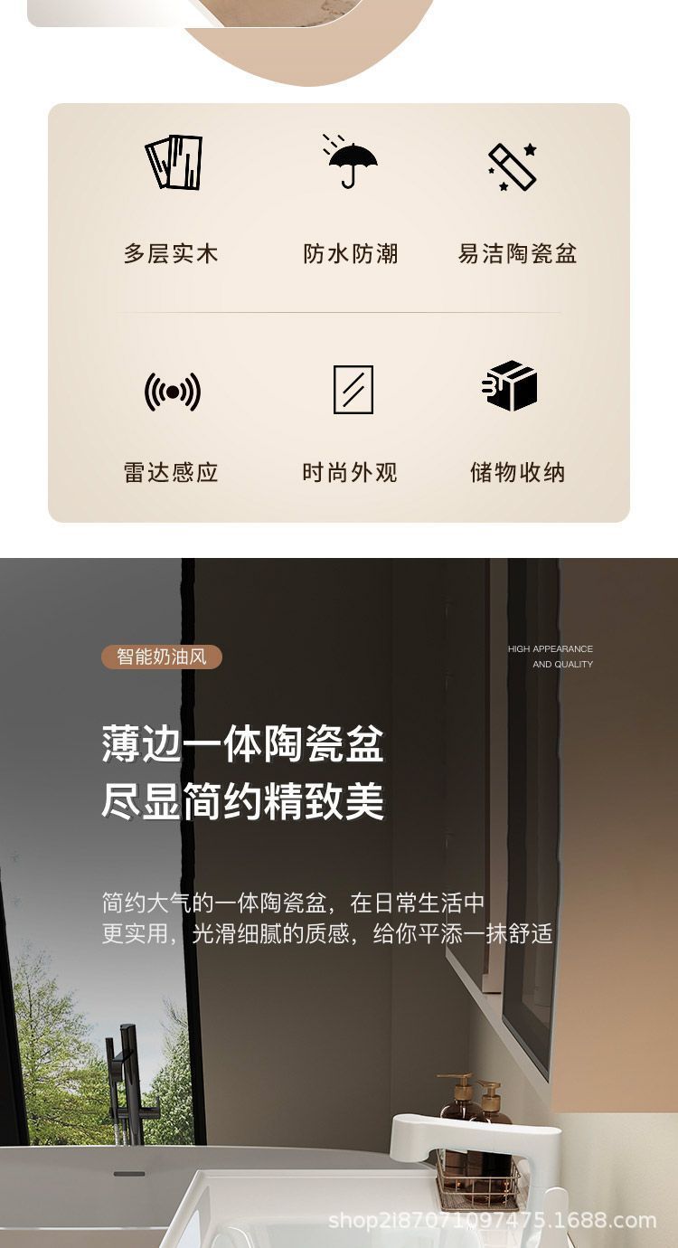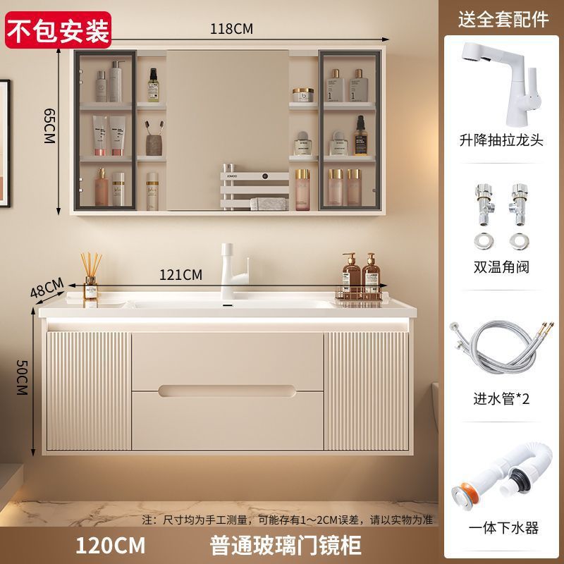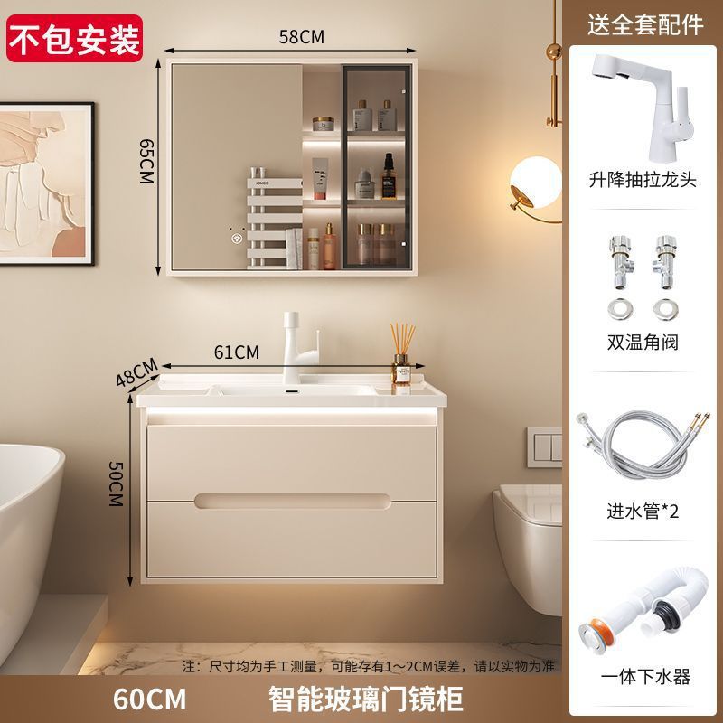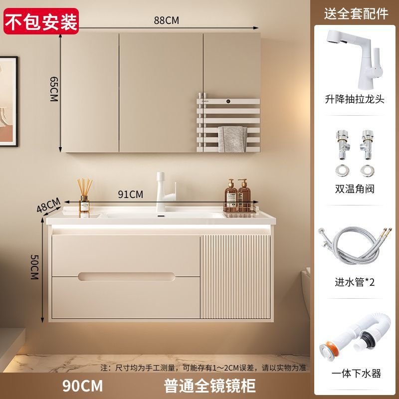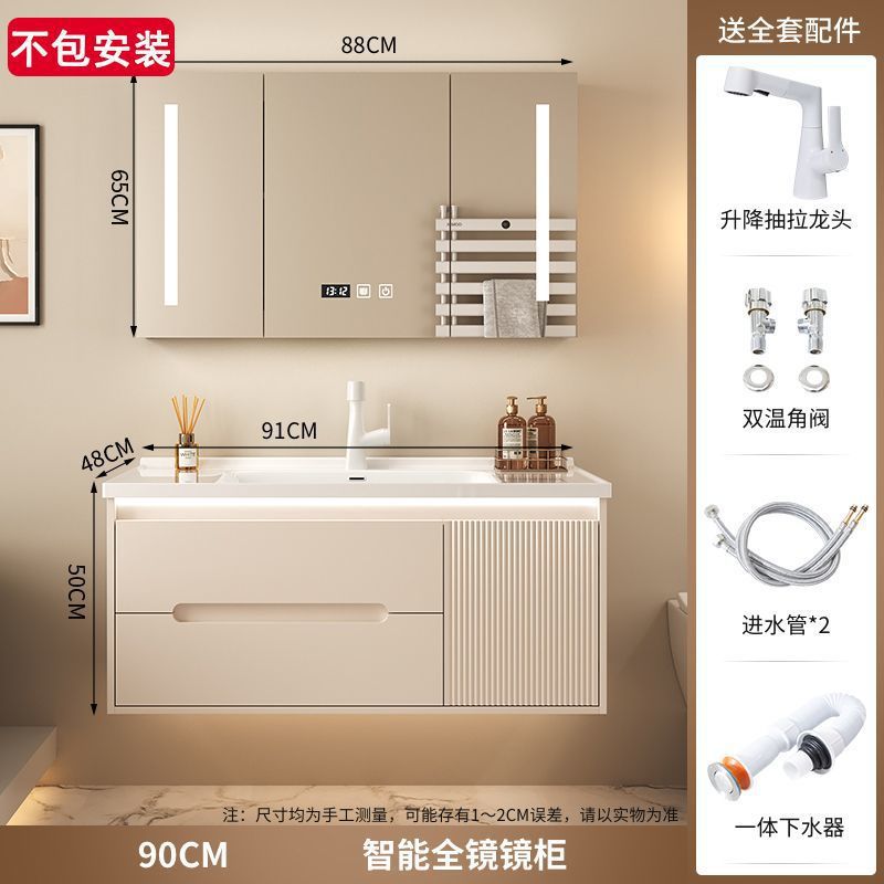 크림 에어 욕실 캐비닛 올인원 분지 세라믹 세면기 화장실 지능형 세면기 캐비닛 조합 세면대