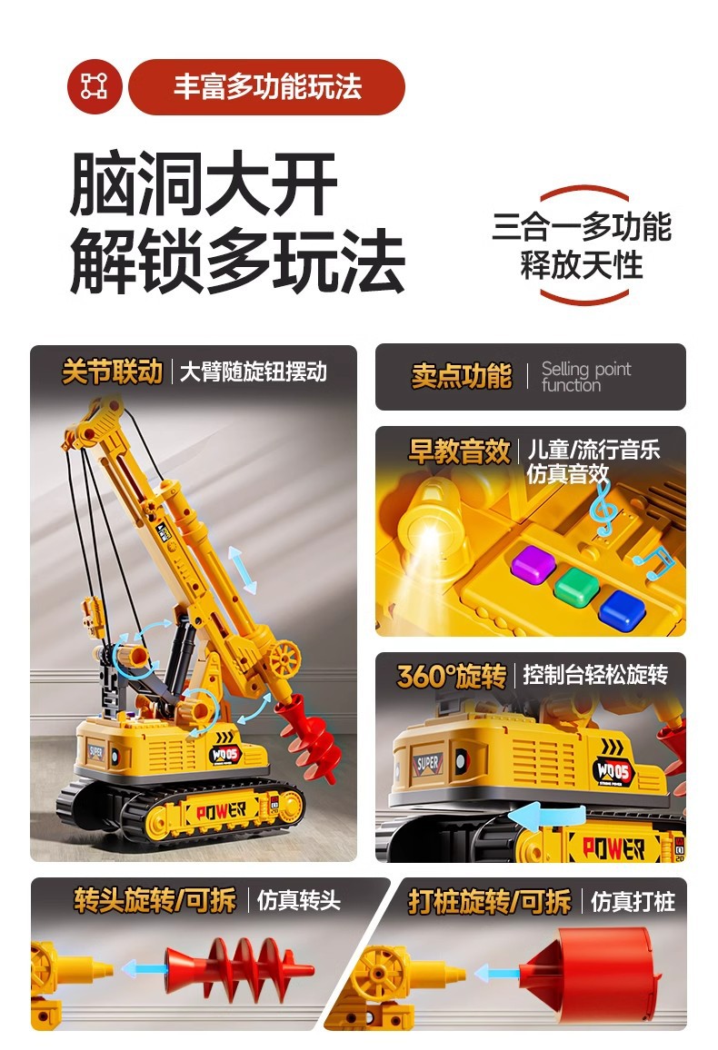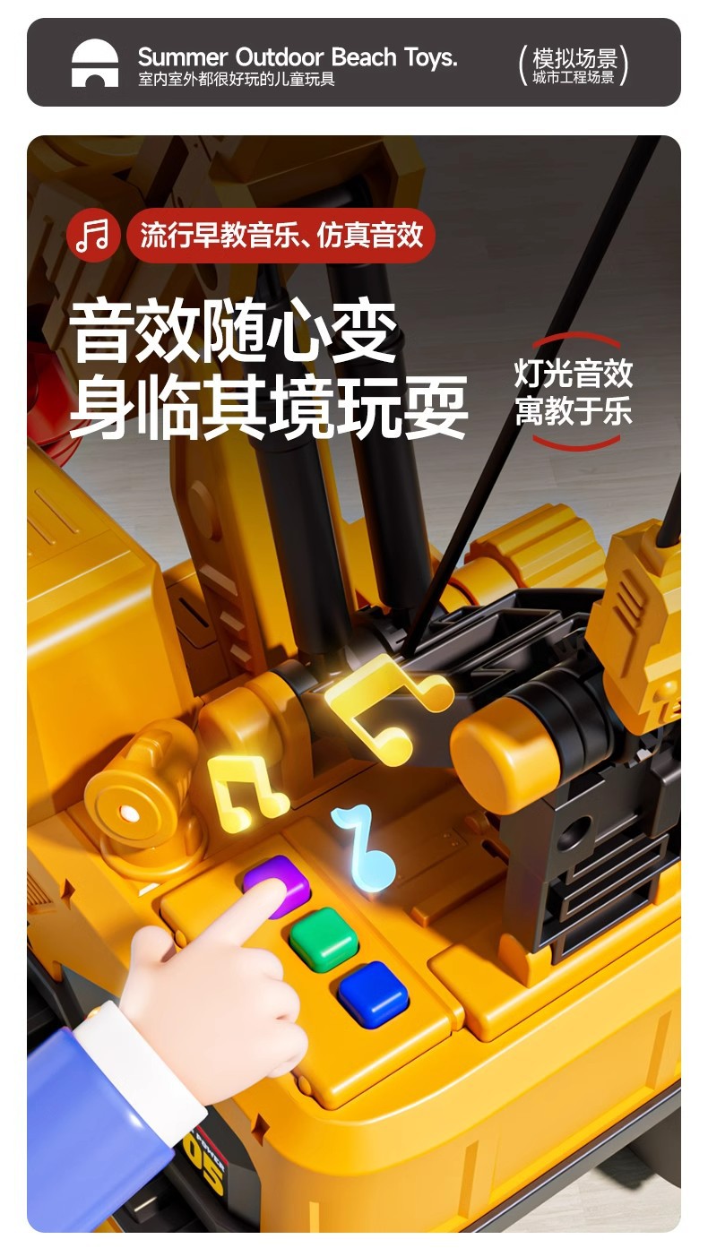 새로운 대형 더미 드라이버 장난감 자동차 어린이 음악 이야기 엔지니어링 자동차 소년 시뮬레이션 관성 드릴링 머신 모델스토어 가기