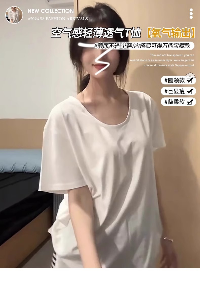 순수 어깨 통기성 쿨 반팔 티셔츠 여성용 여름 새로운 캐주얼 루즈 슬리밍 슈퍼 잘 생긴 캐주얼 탑