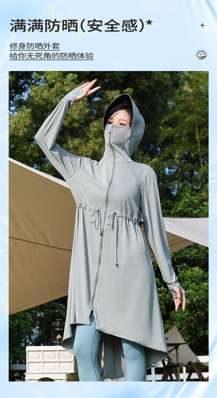 여름 승마 태양 보호 의류 여성의 야외 여행 UV 보호 아이스 실크 아이스 쿨 썬 보호 의류 후드 스킨 코트