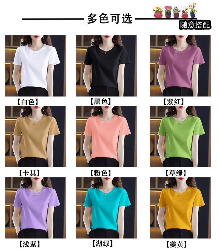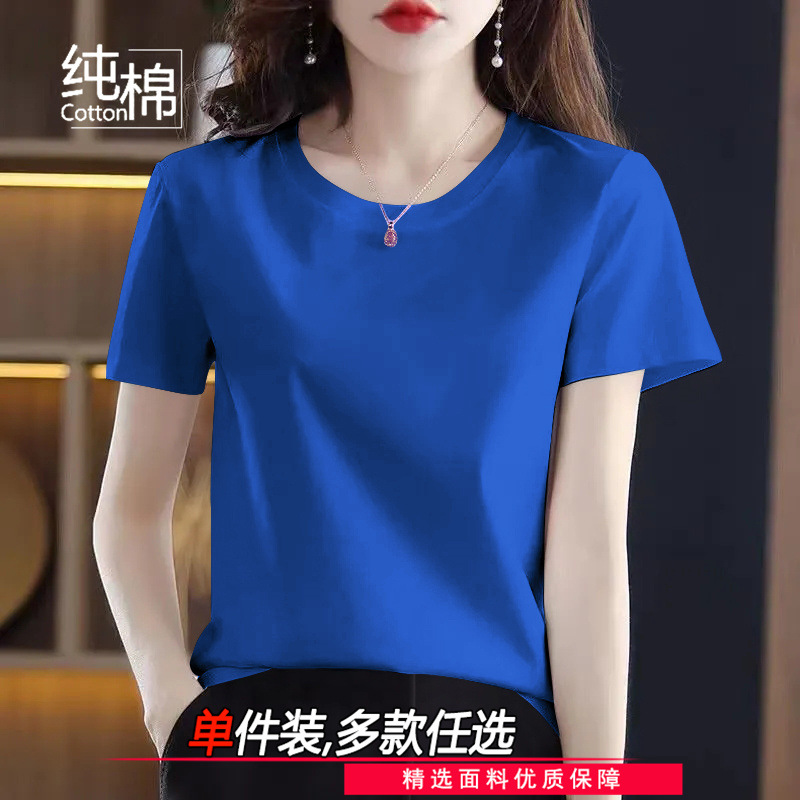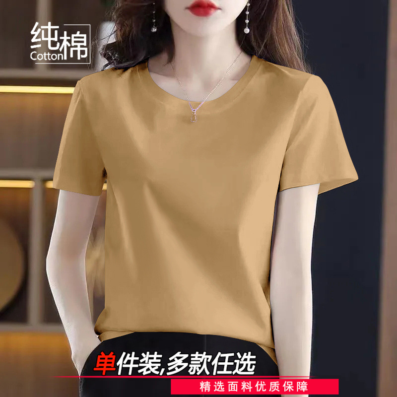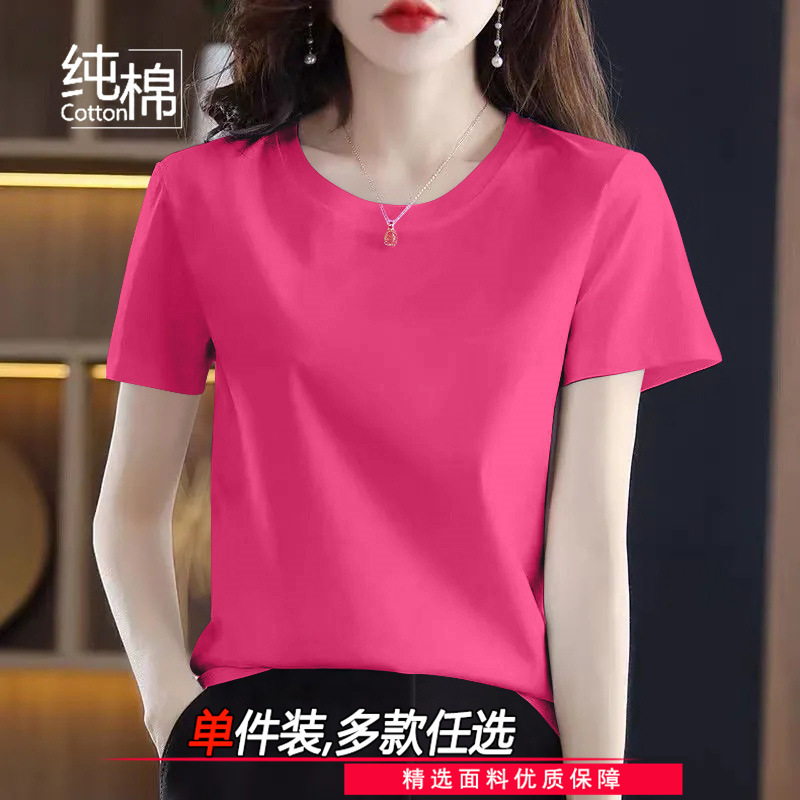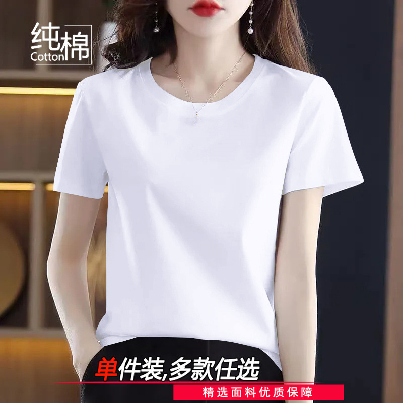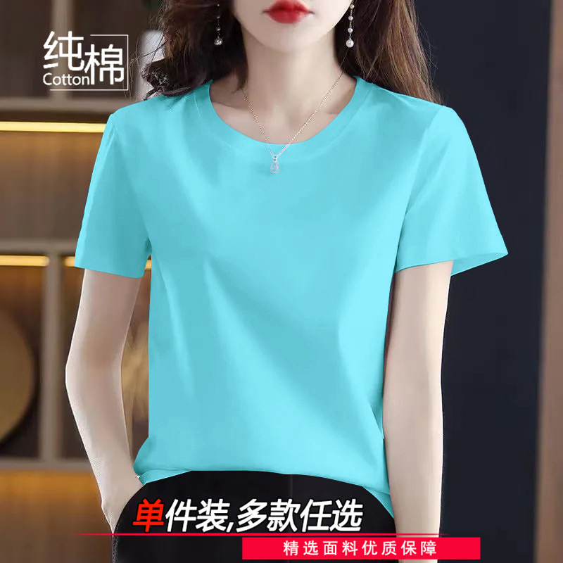 코튼 라운드 넥 반팔 티셔츠 여성 여름 새로운 캐주얼 패션 한국 루즈 올매치 고품질 심플 탑스토어 가기