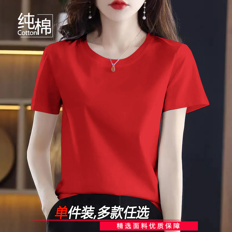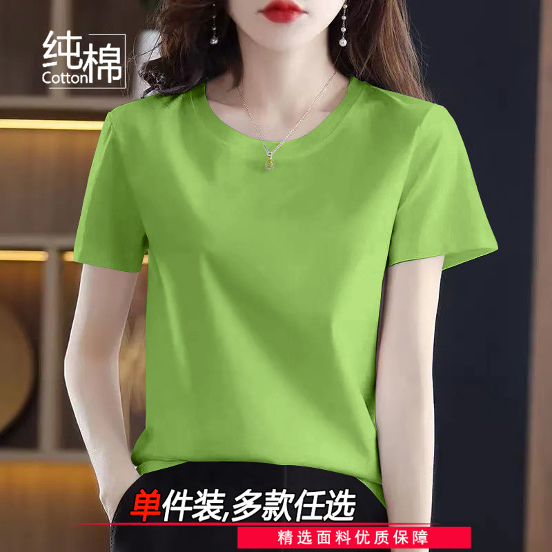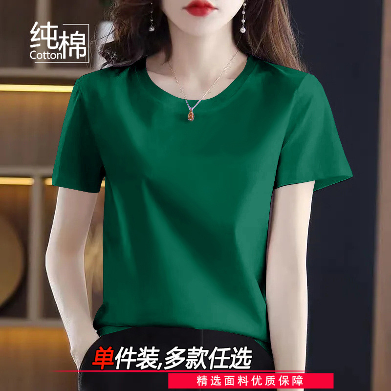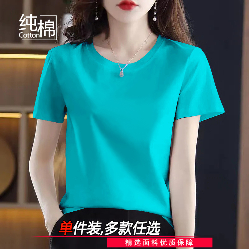 코튼 라운드 넥 반팔 티셔츠 여성 여름 새로운 캐주얼 패션 한국 루즈 올매치 고품질 심플 탑