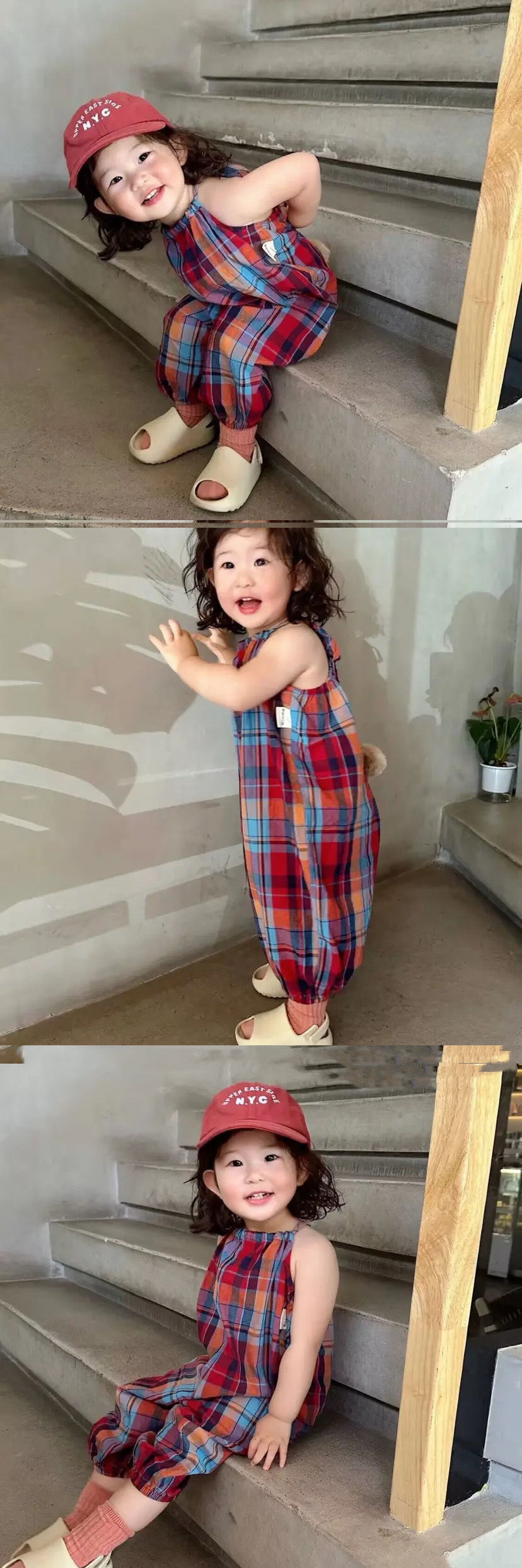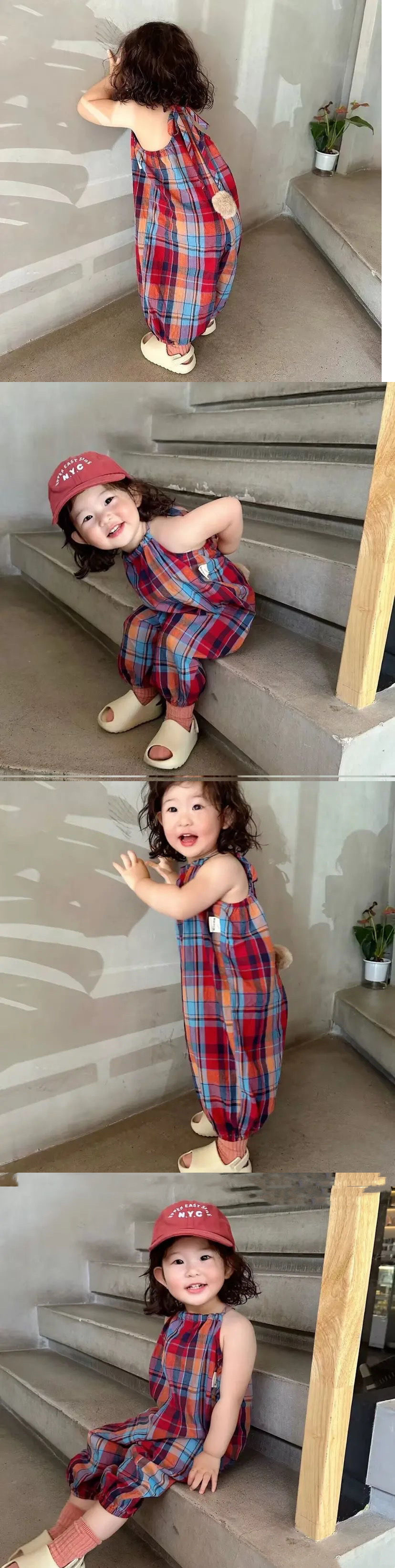 한국 아동복 바지 여름 새로운 도착 세련된 귀여운 토끼 꼬리 격자 끈 슬링 캐주얼 바지스토어 가기