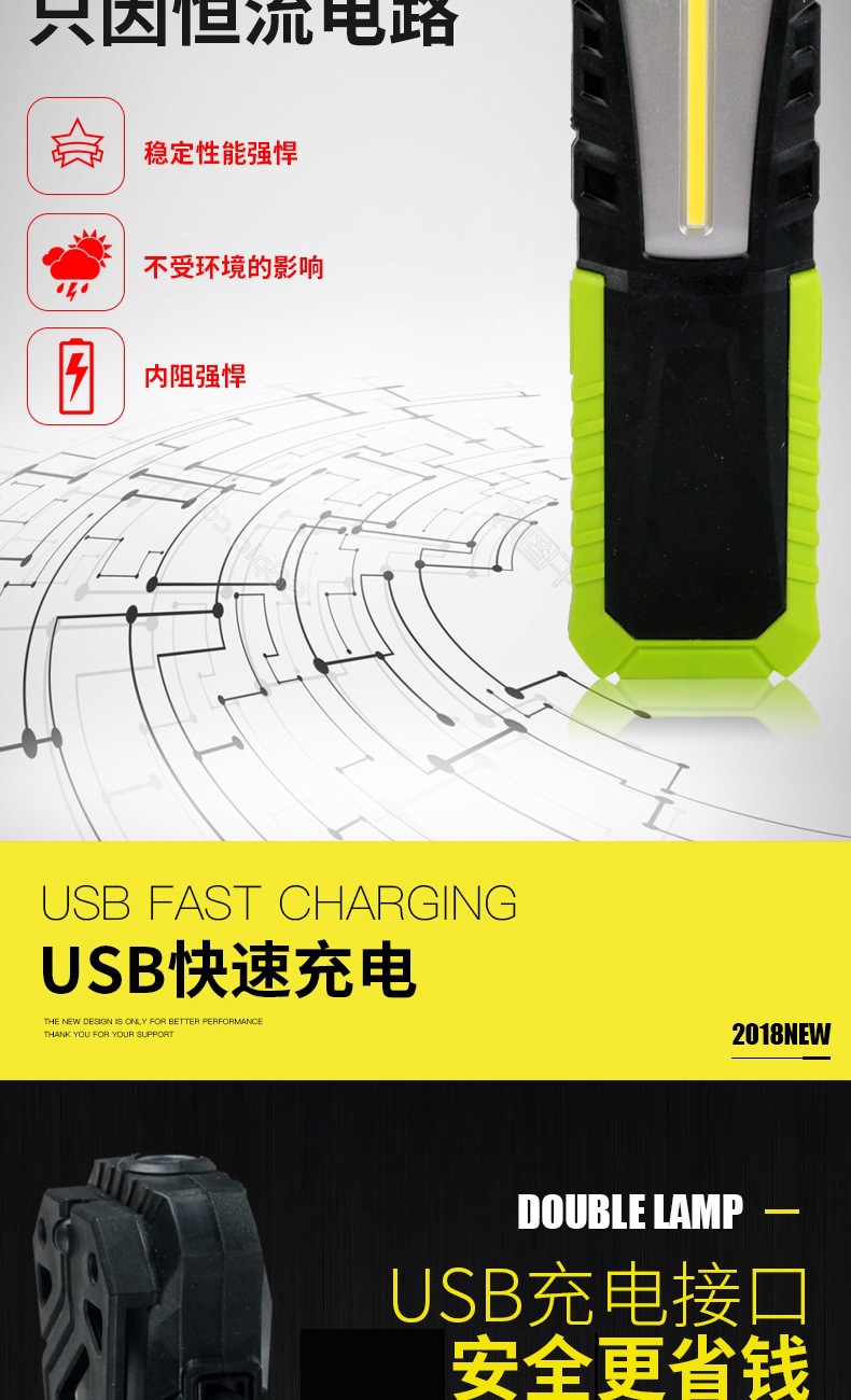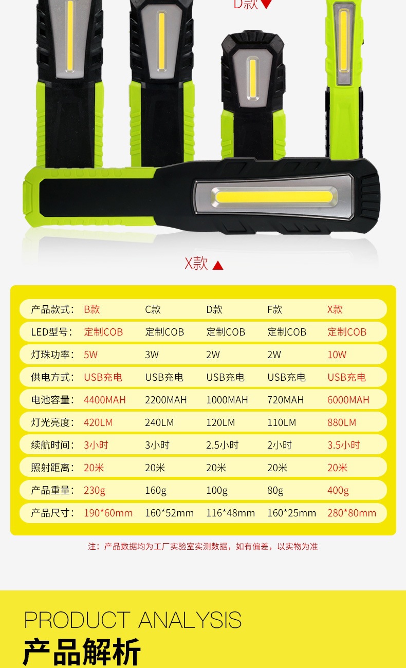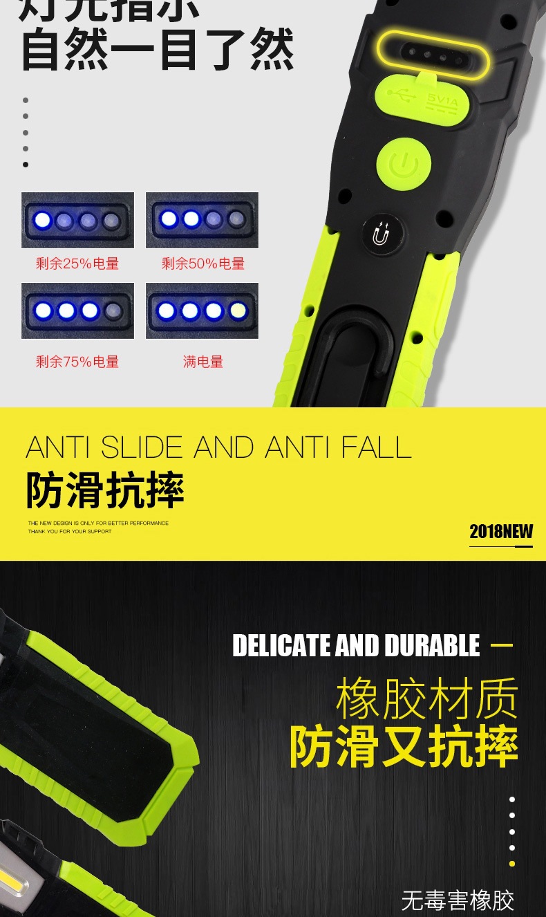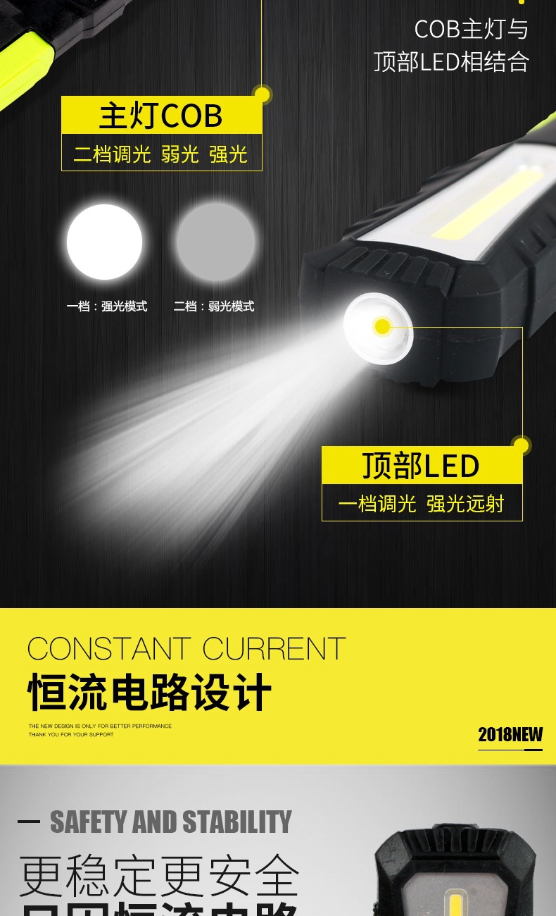 사이후 자동 수리 램프 작업 램프 드롭 방지 충전식 고강도 자석 핸드 헬드 유지 보수 및 정밀 검사 강력한 손전등
