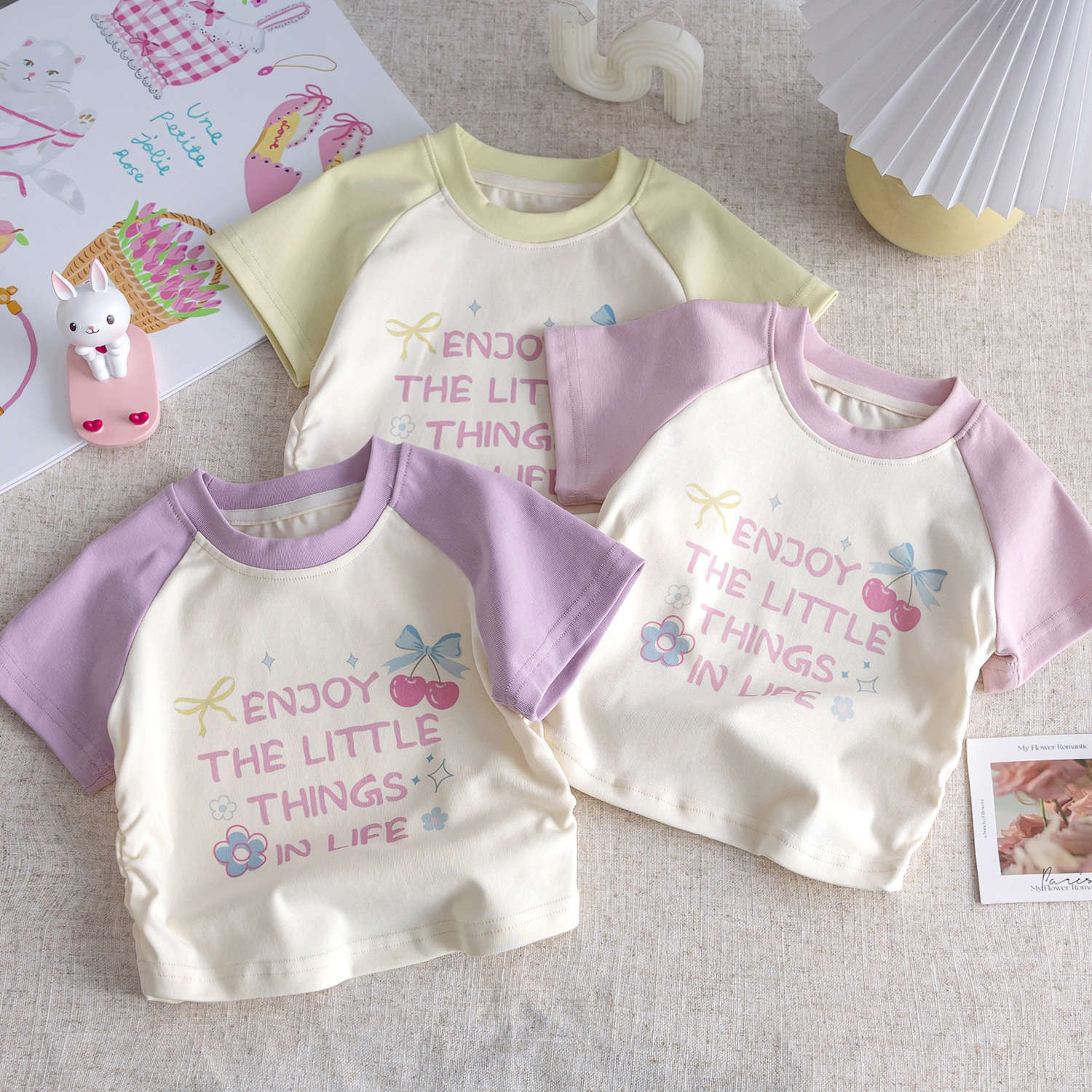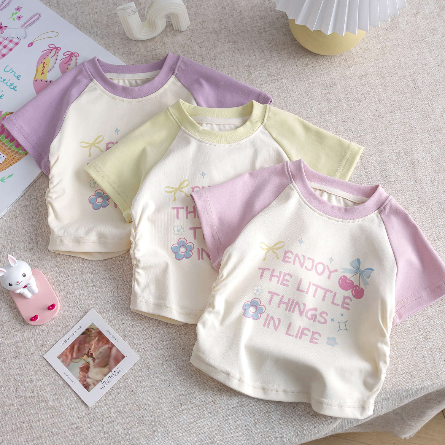 2025 새로운 여름 소녀 만화 컬러 매칭 어린이 프린트 티셔츠 아동면 짧은 소매 아기 웨스턴 스타일 탑스토어 가기
