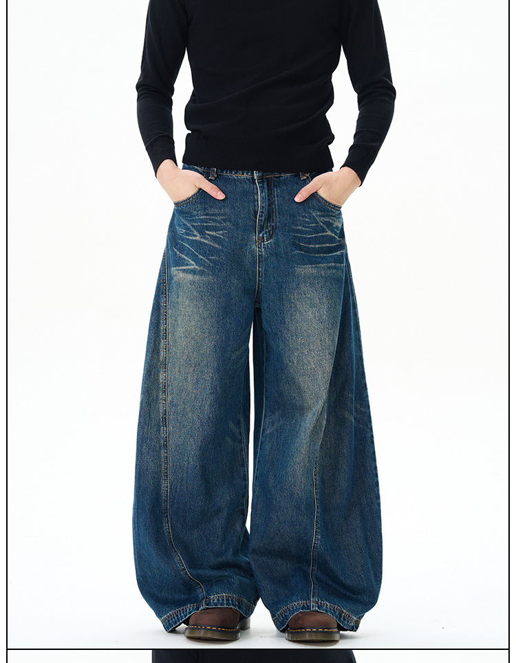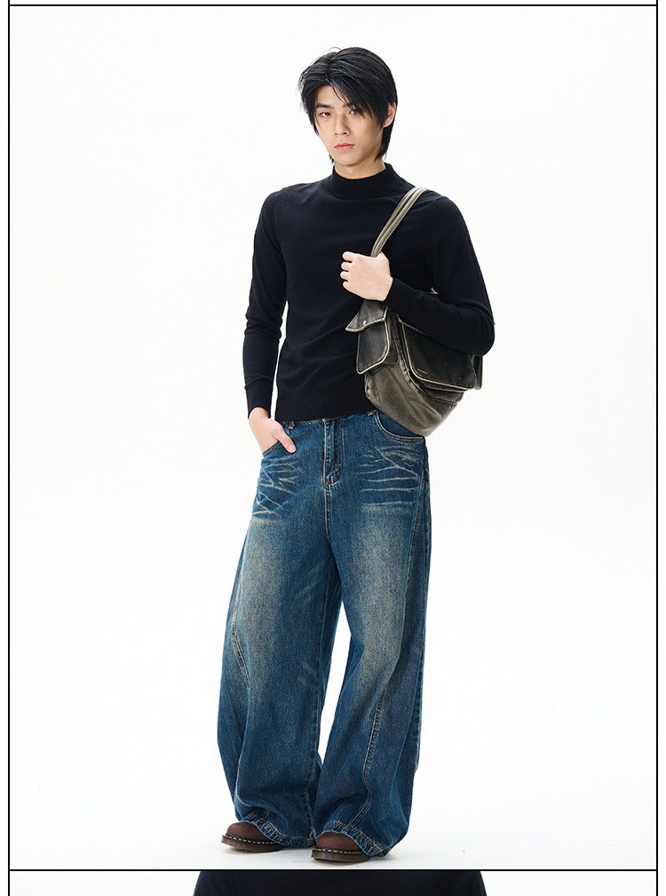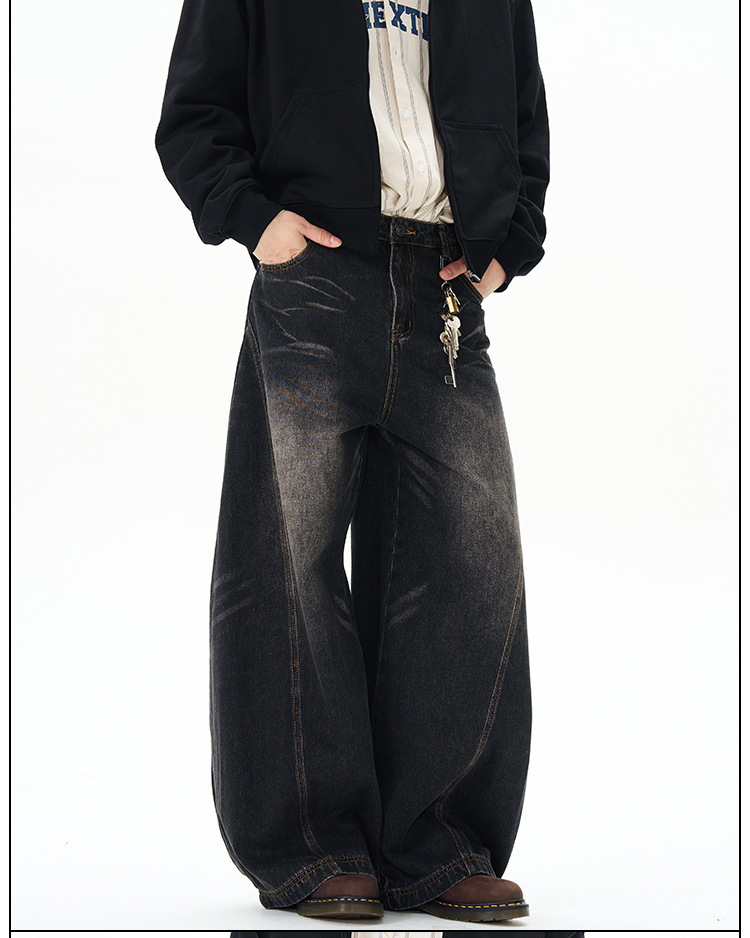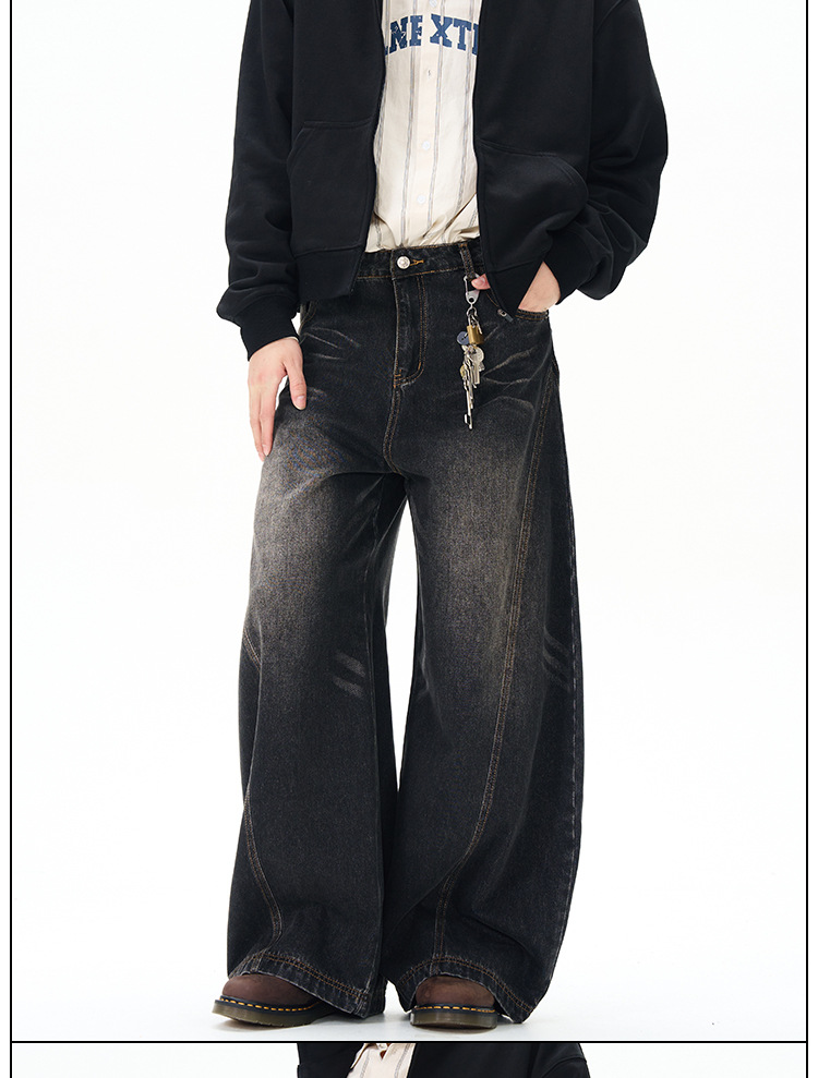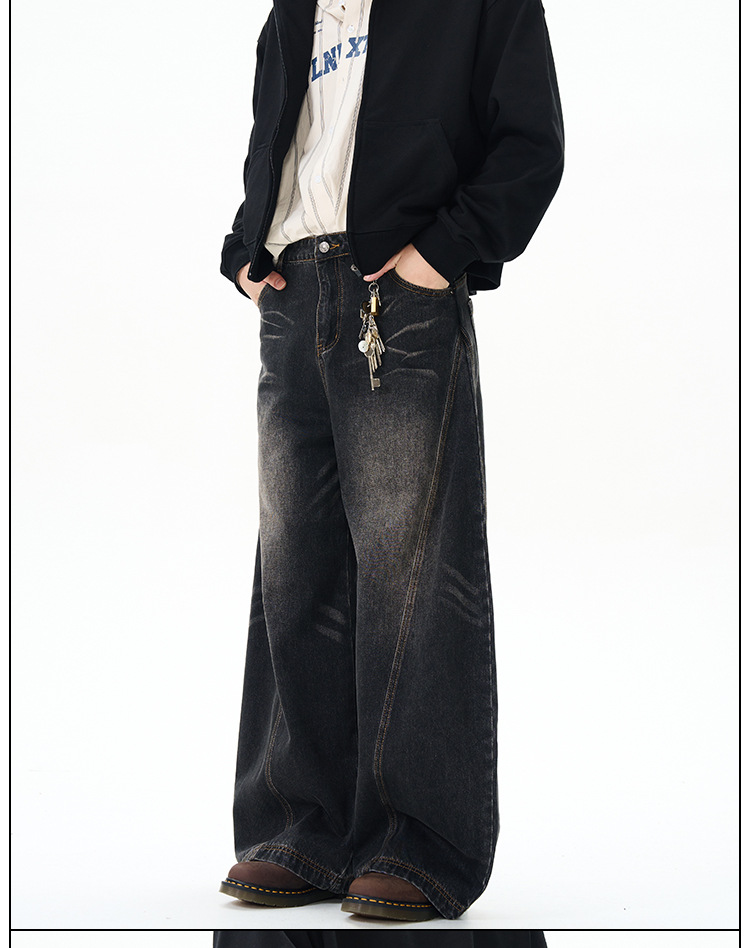 Weilang의 상점 미국 하이 스트리트 게으르고 편안한 바지 남성용 러피안 잘 생긴 고급 만세 바지 연인 청바지 조수스토어 가기