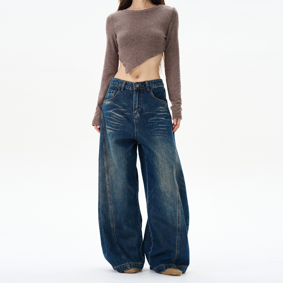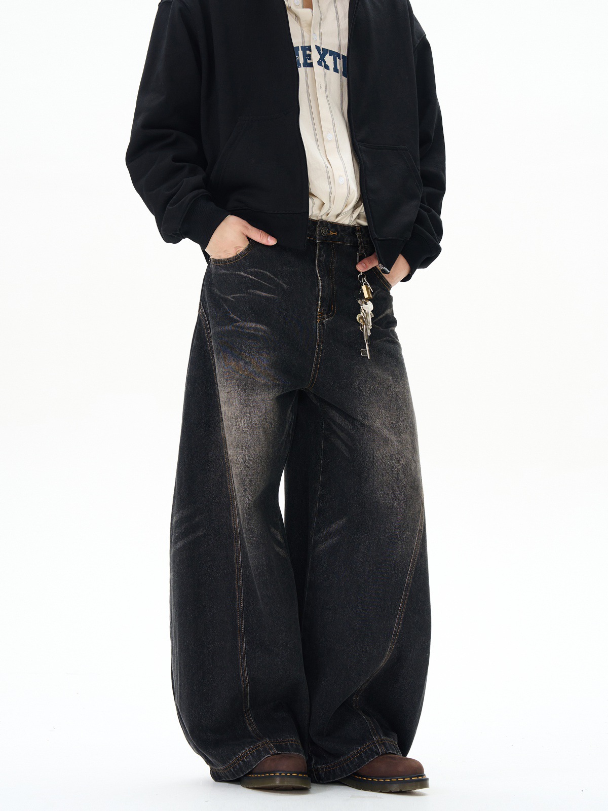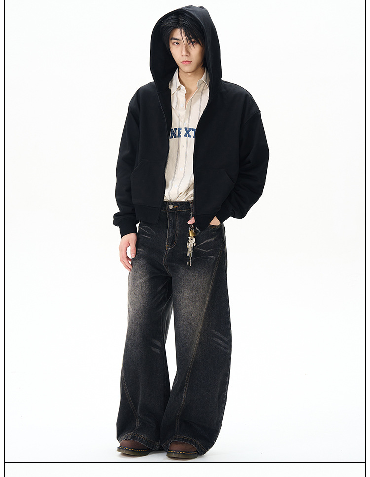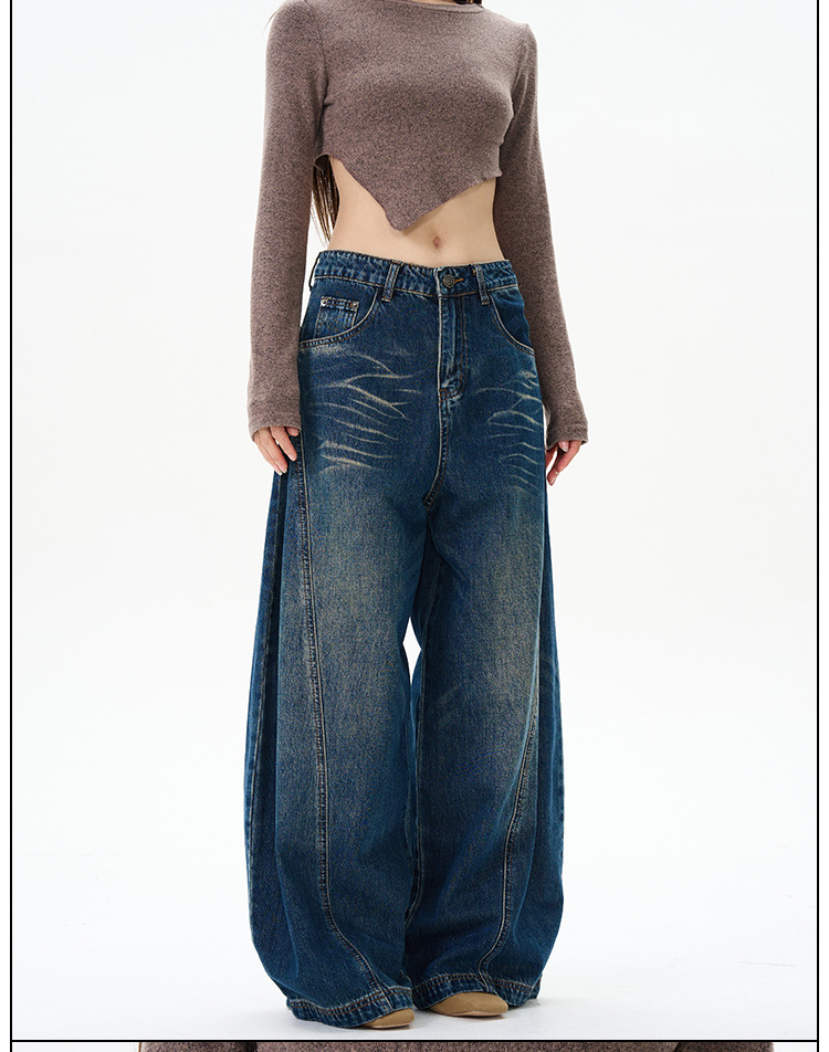 Weilang의 상점 미국 하이 스트리트 게으르고 편안한 바지 남성용 러피안 잘 생긴 고급 만세 바지 연인 청바지 조수스토어 가기