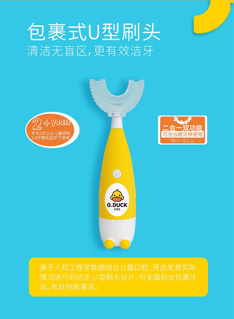 작은 노란색 오리 어린이 칫솔 년 전기 위의 부드러운 머리 아기 자동 이중 목적스토어 가기