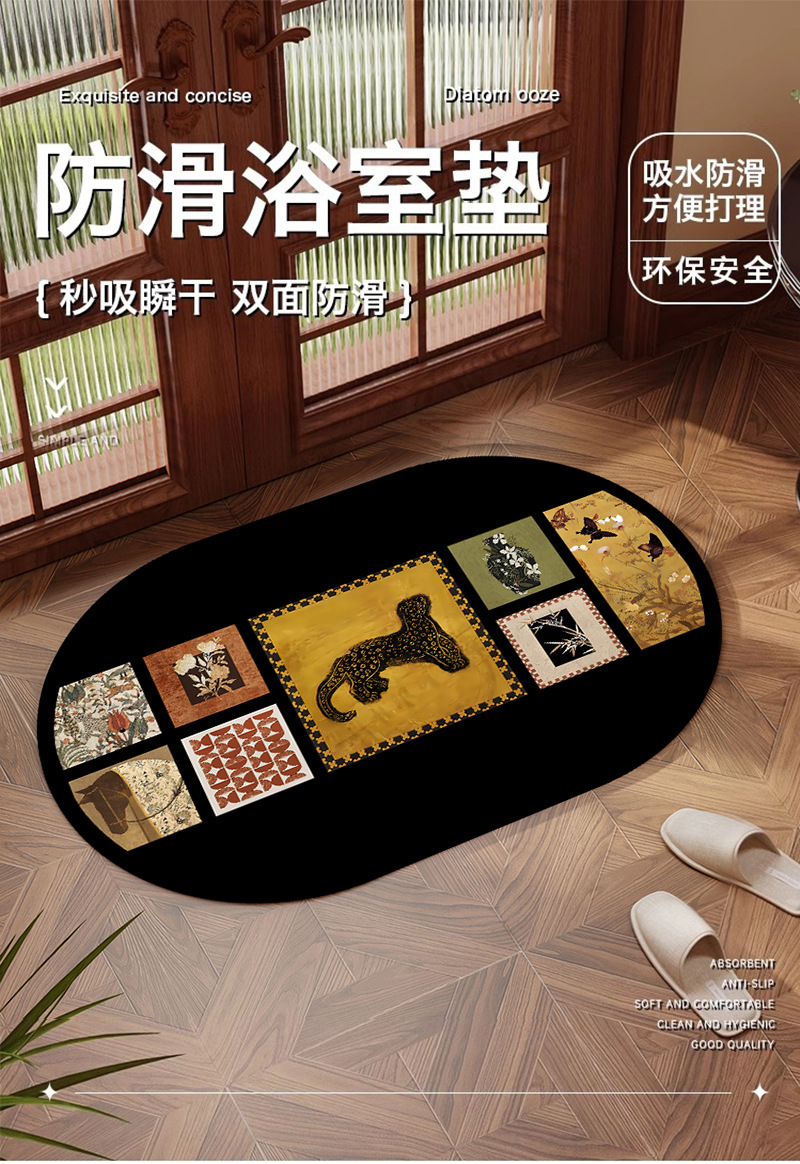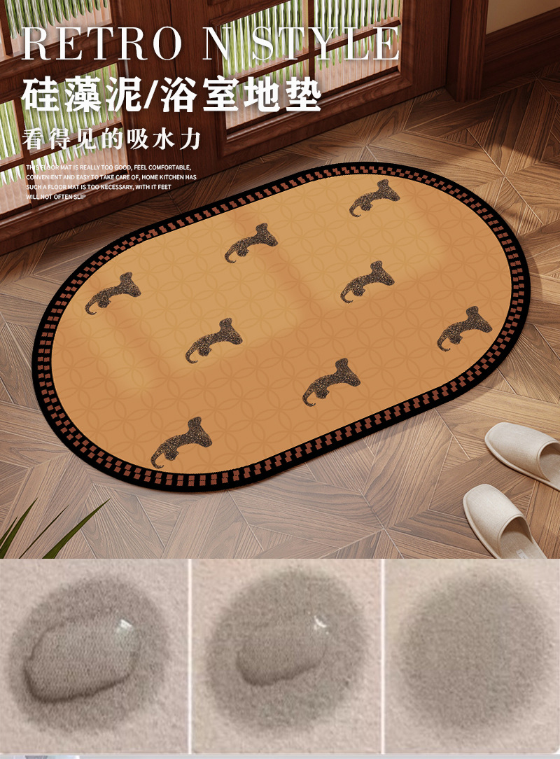 중간 골동품 화장실 문 흡수성 바닥 매트 diatom 진흙 미끄럼 방지 높은 수준의 욕실 화장실 화장실 발 매트