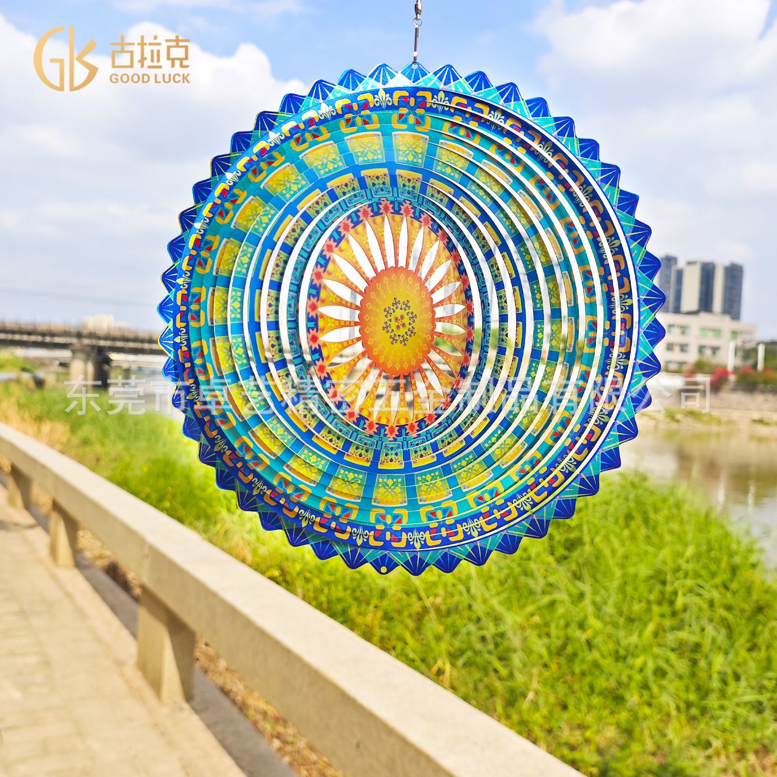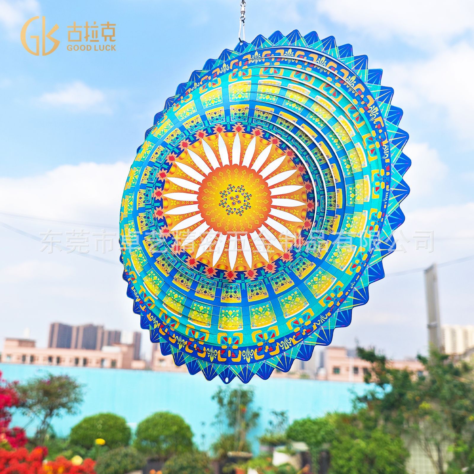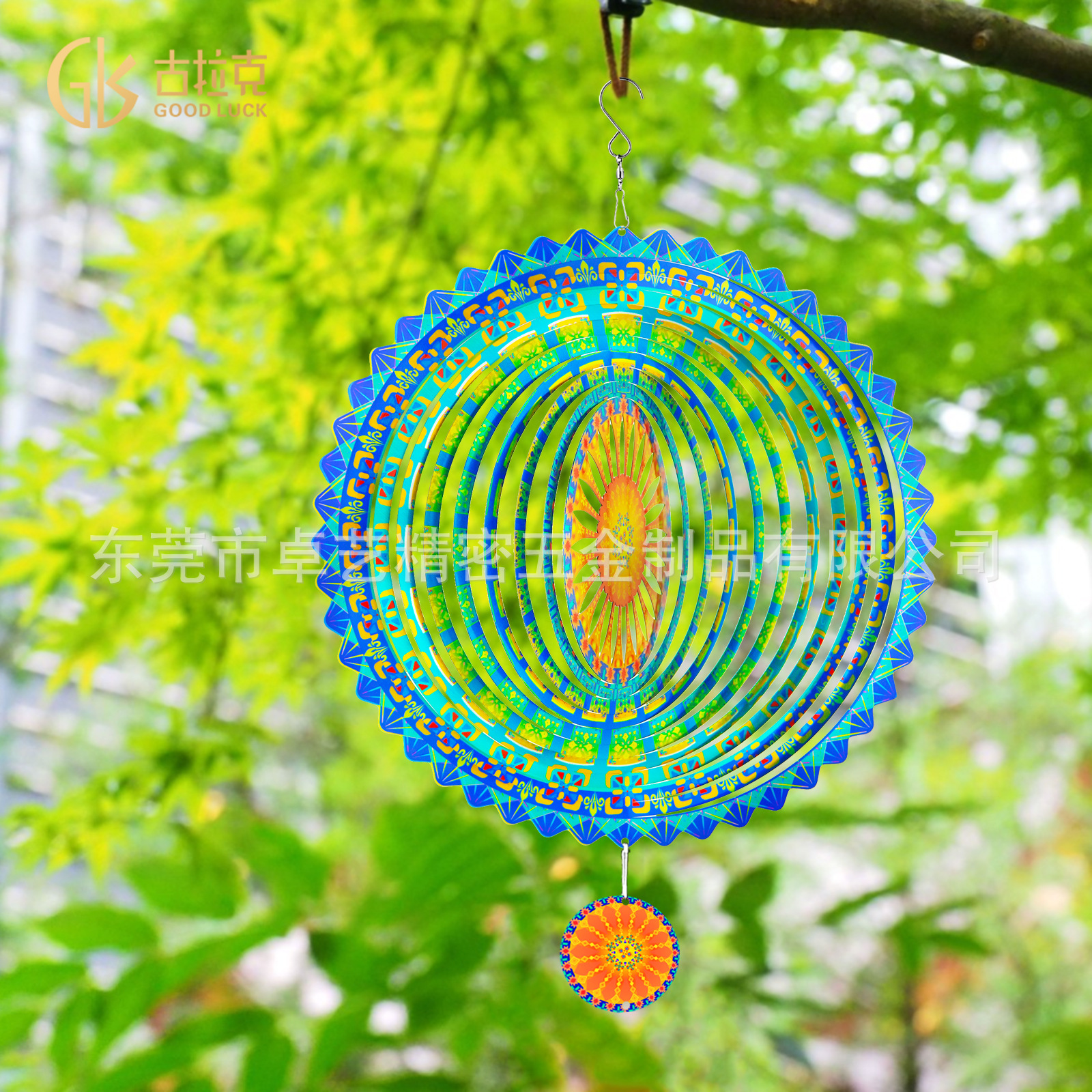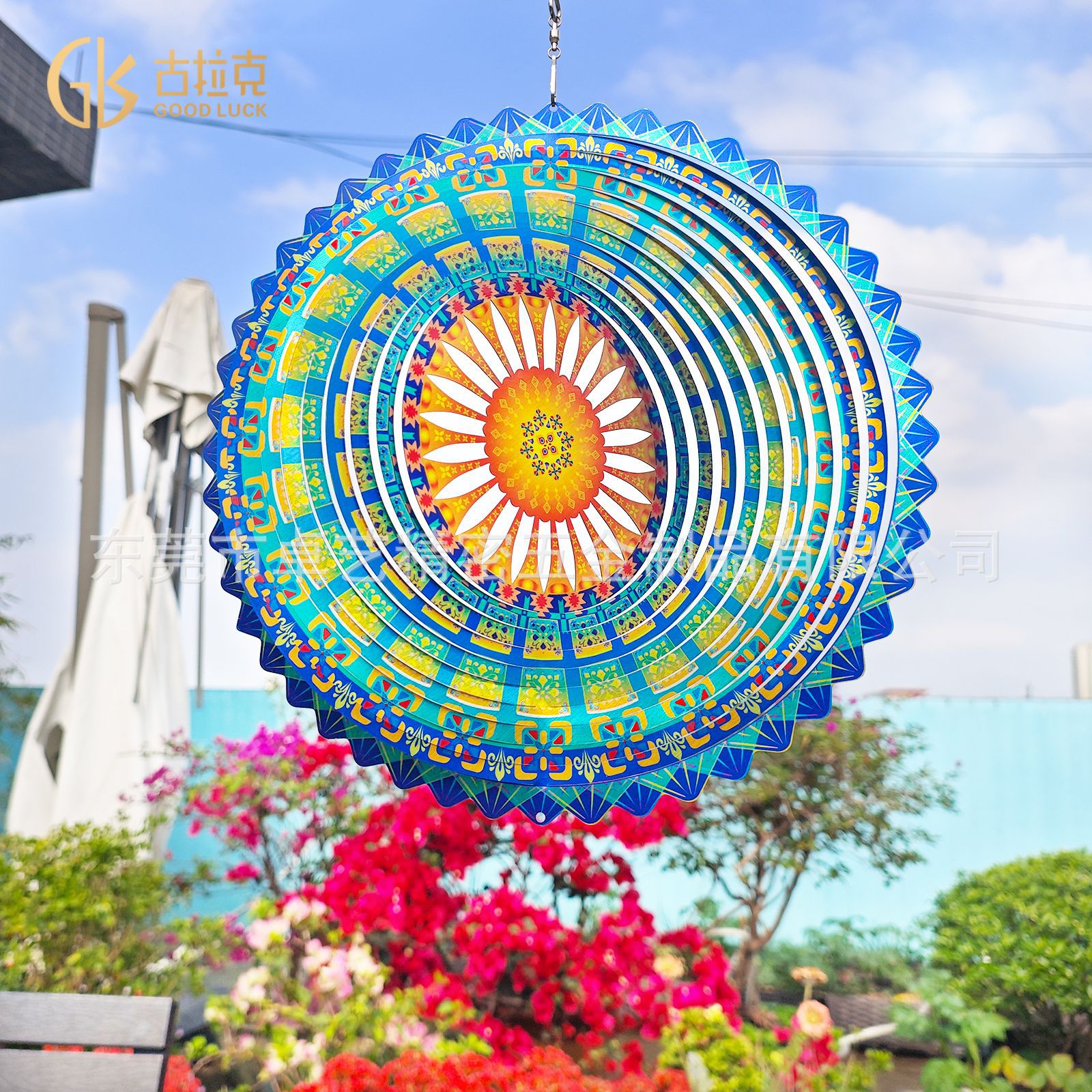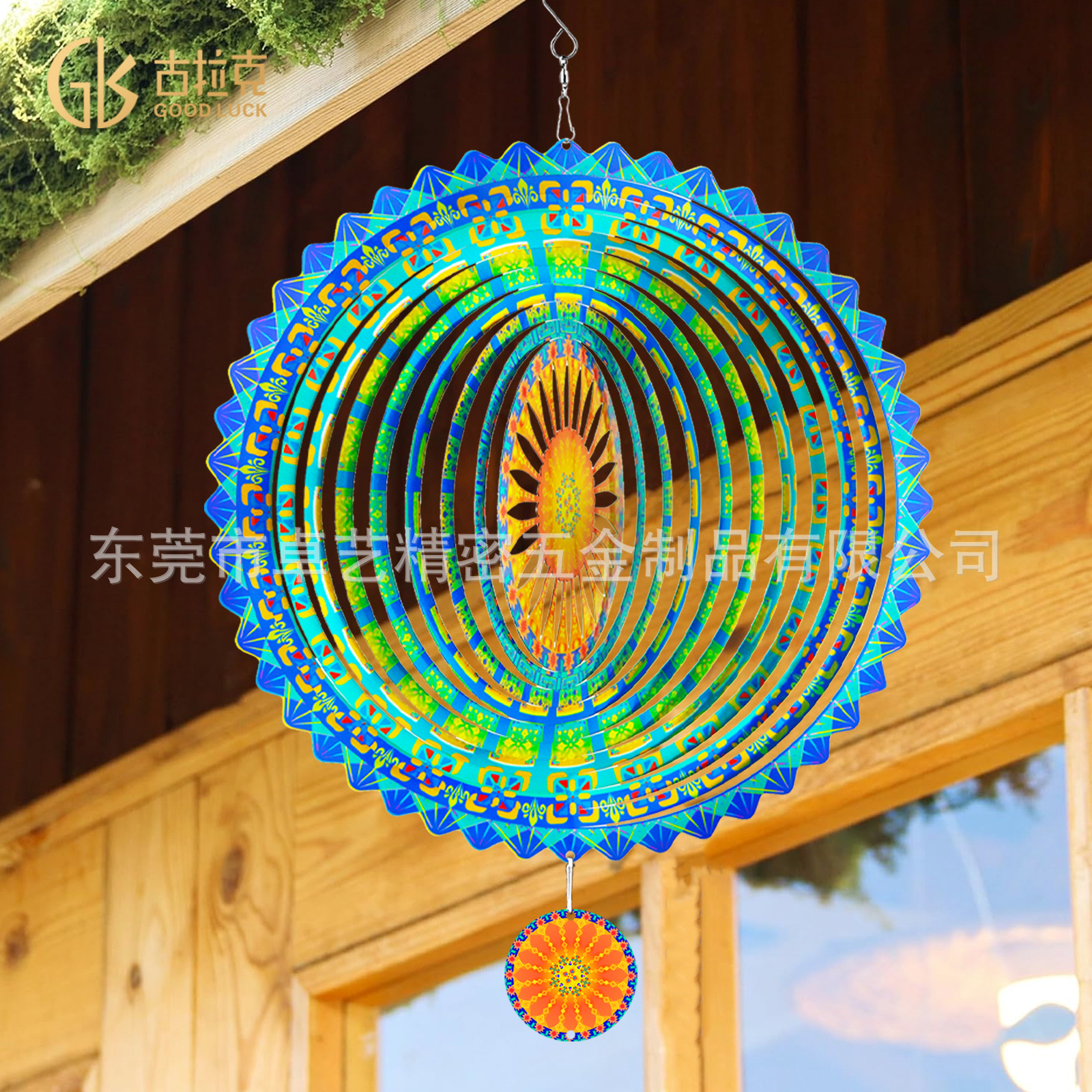 국경 간 뜨거운 판매 3D 만다라 로타리 바람 벨 오렌지 하트 만다라 로타리 가든 금속 매달린 장식품