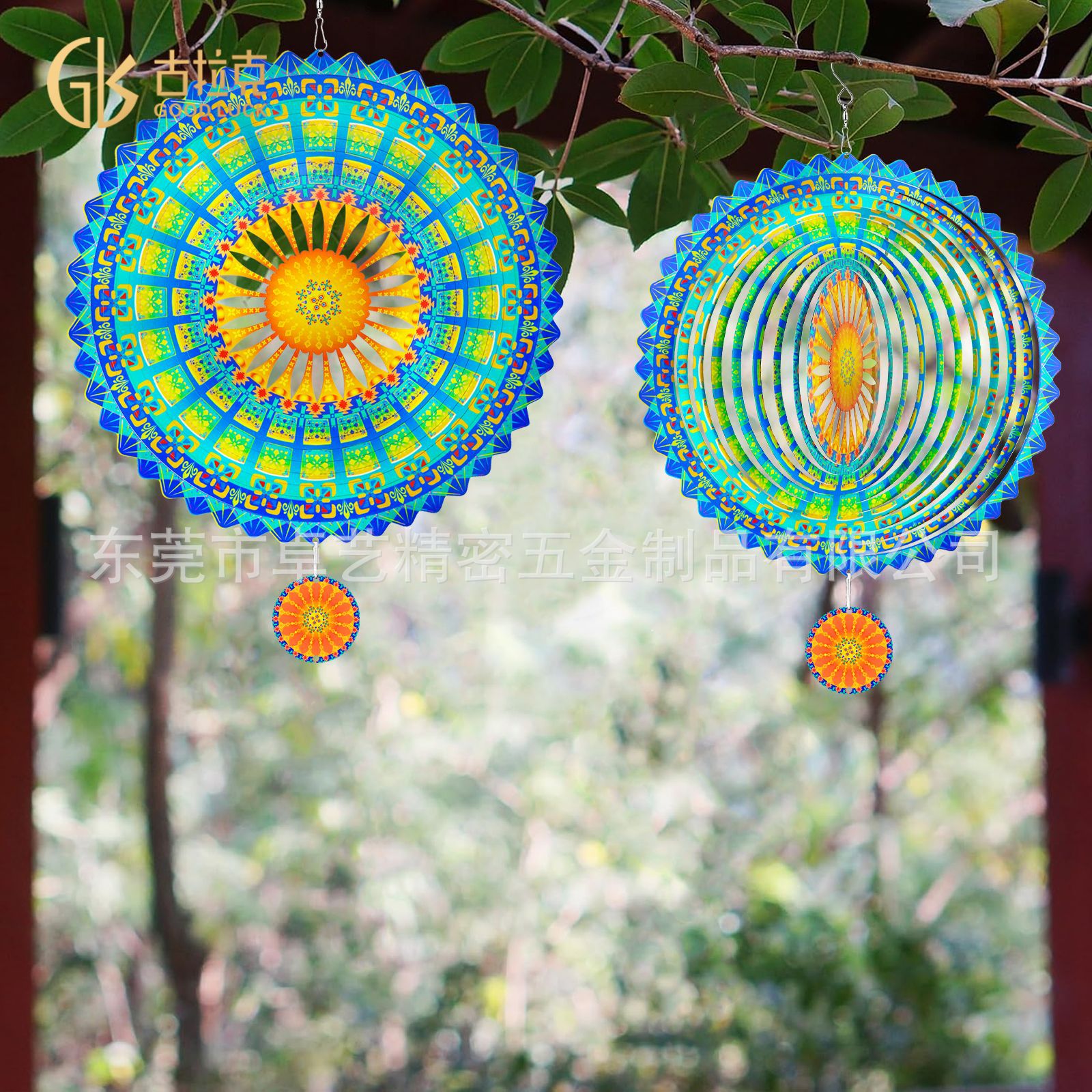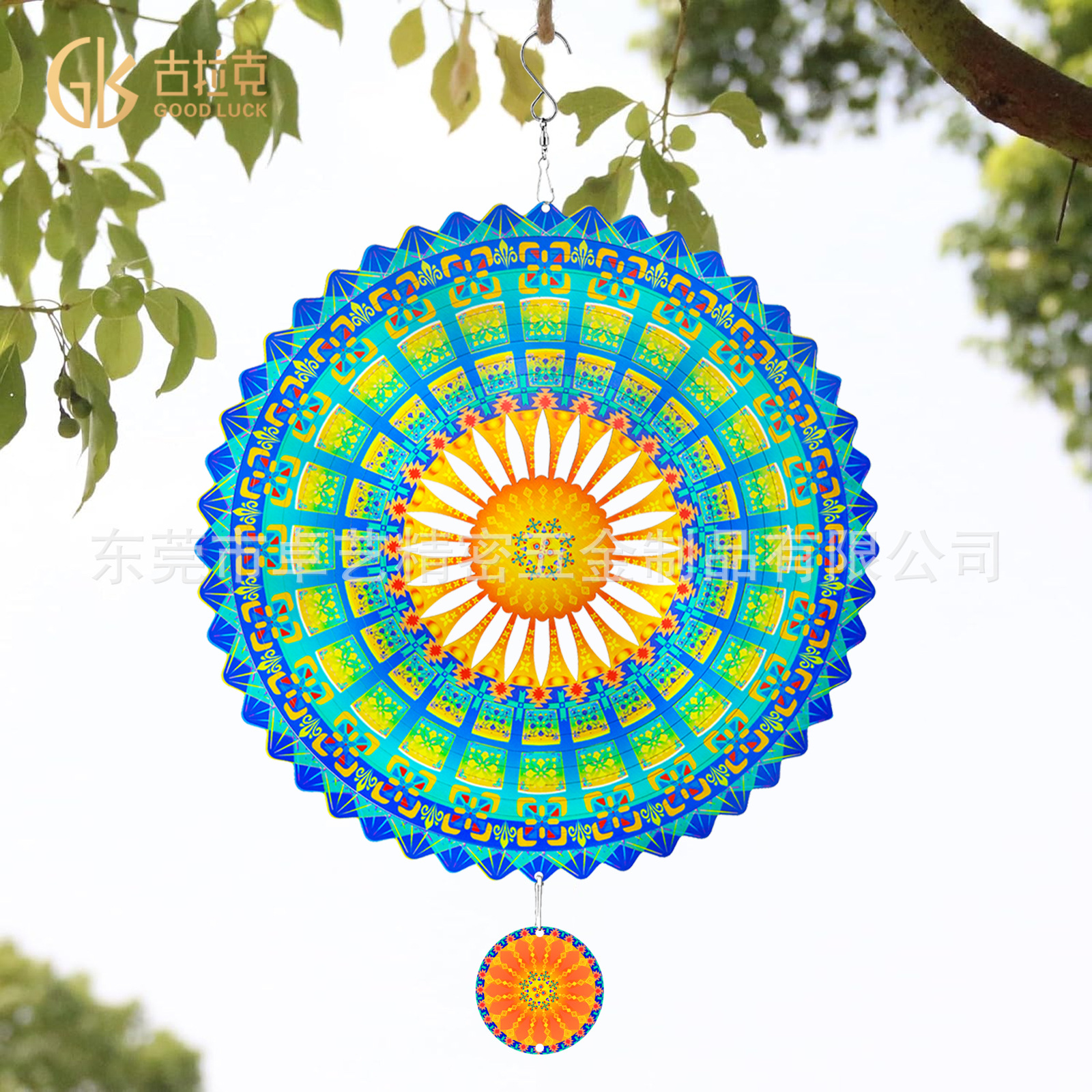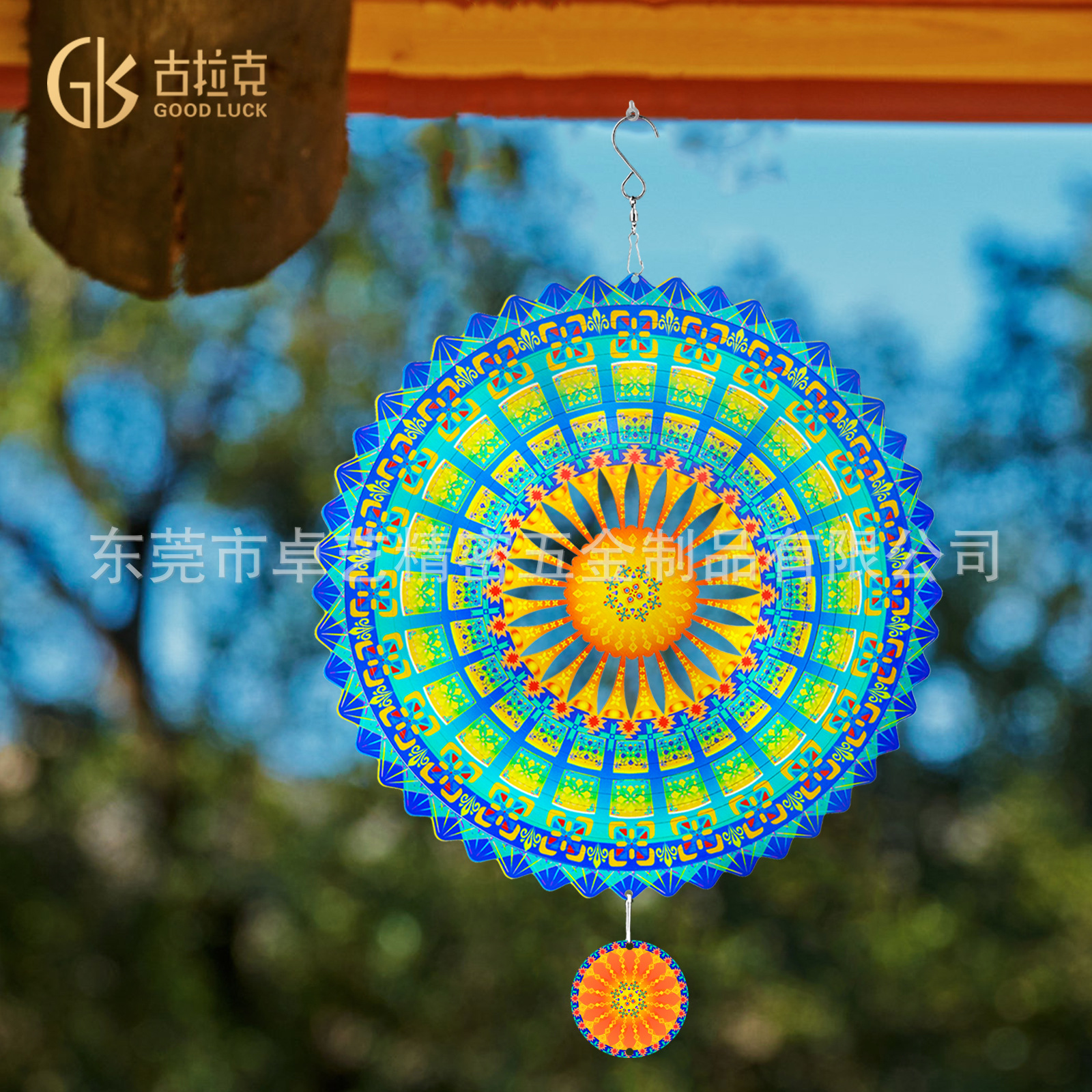 국경 간 뜨거운 판매 3D 만다라 로타리 바람 벨 오렌지 하트 만다라 로타리 가든 금속 매달린 장식품스토어 가기