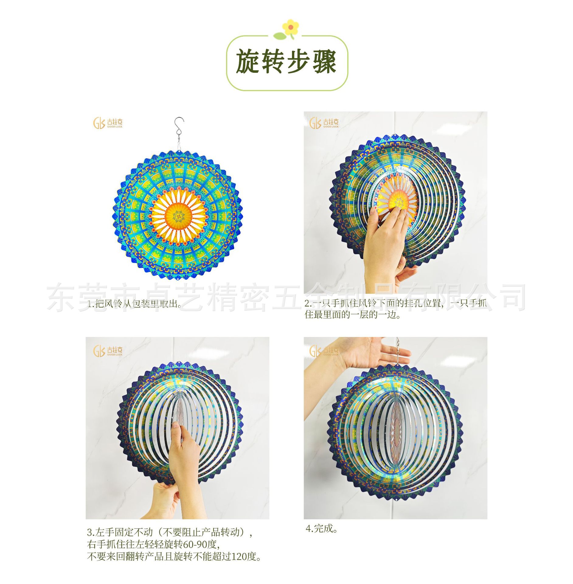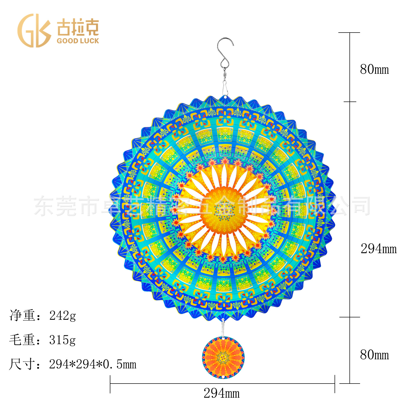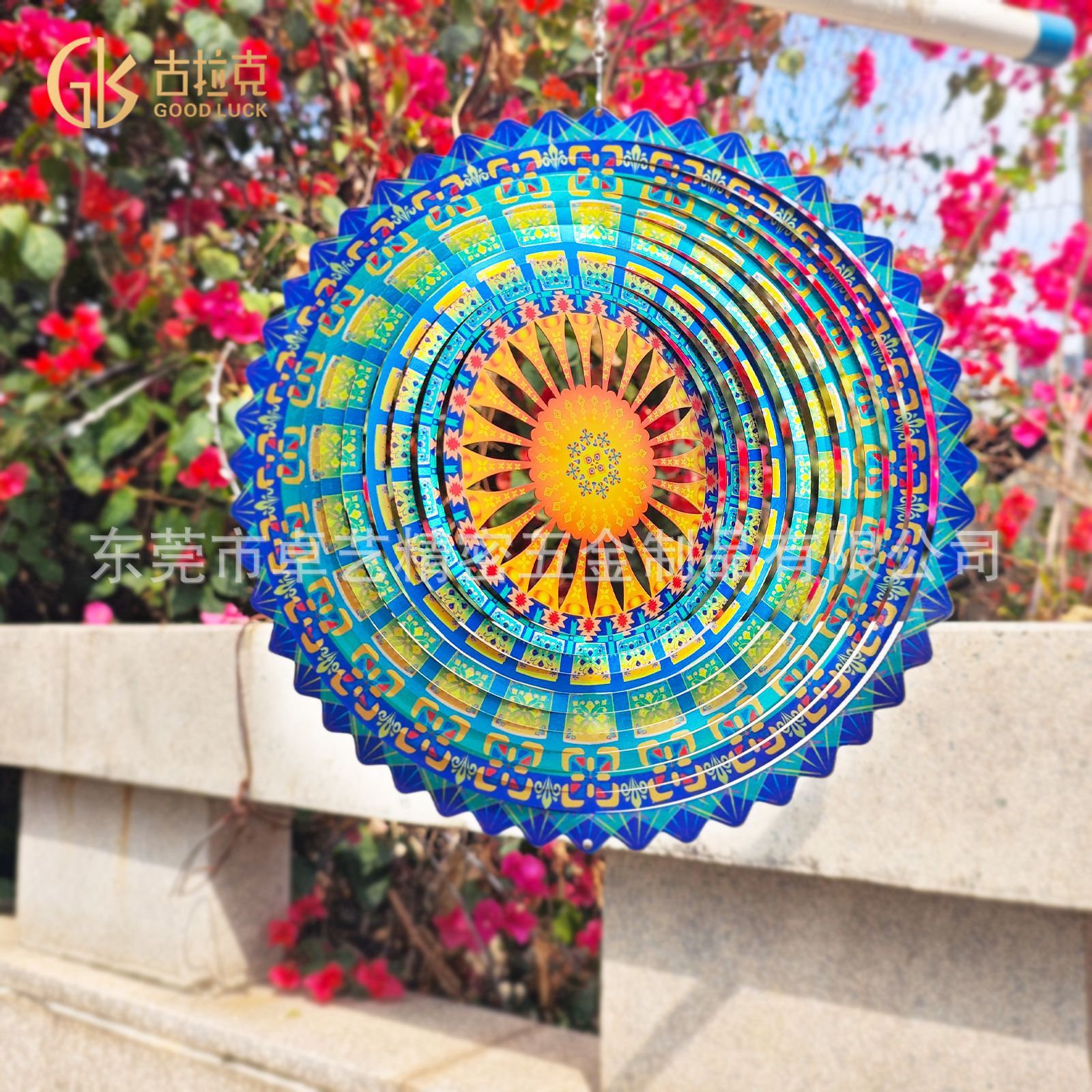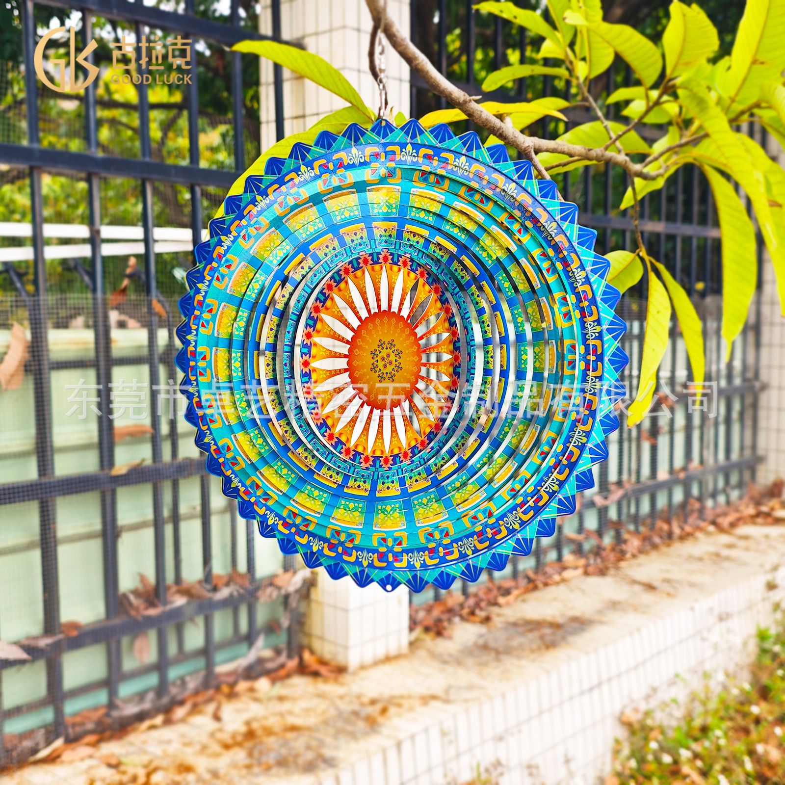 국경 간 뜨거운 판매 3D 만다라 로타리 바람 벨 오렌지 하트 만다라 로타리 가든 금속 매달린 장식품스토어 가기