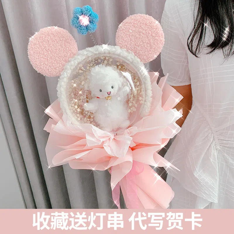 • ( • ̀Ω•́ )핑크 안개꽃 + 미키 머리띠 (가방 + 램프) ( • ̀Ω•́ )