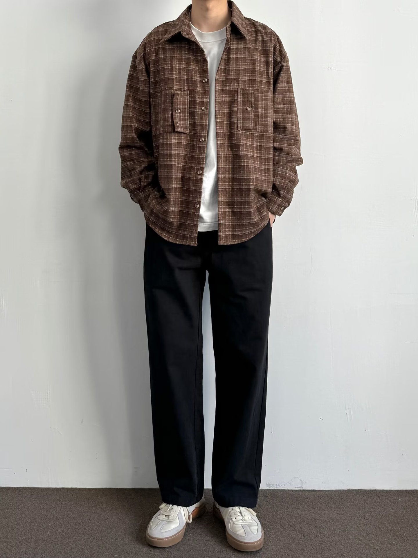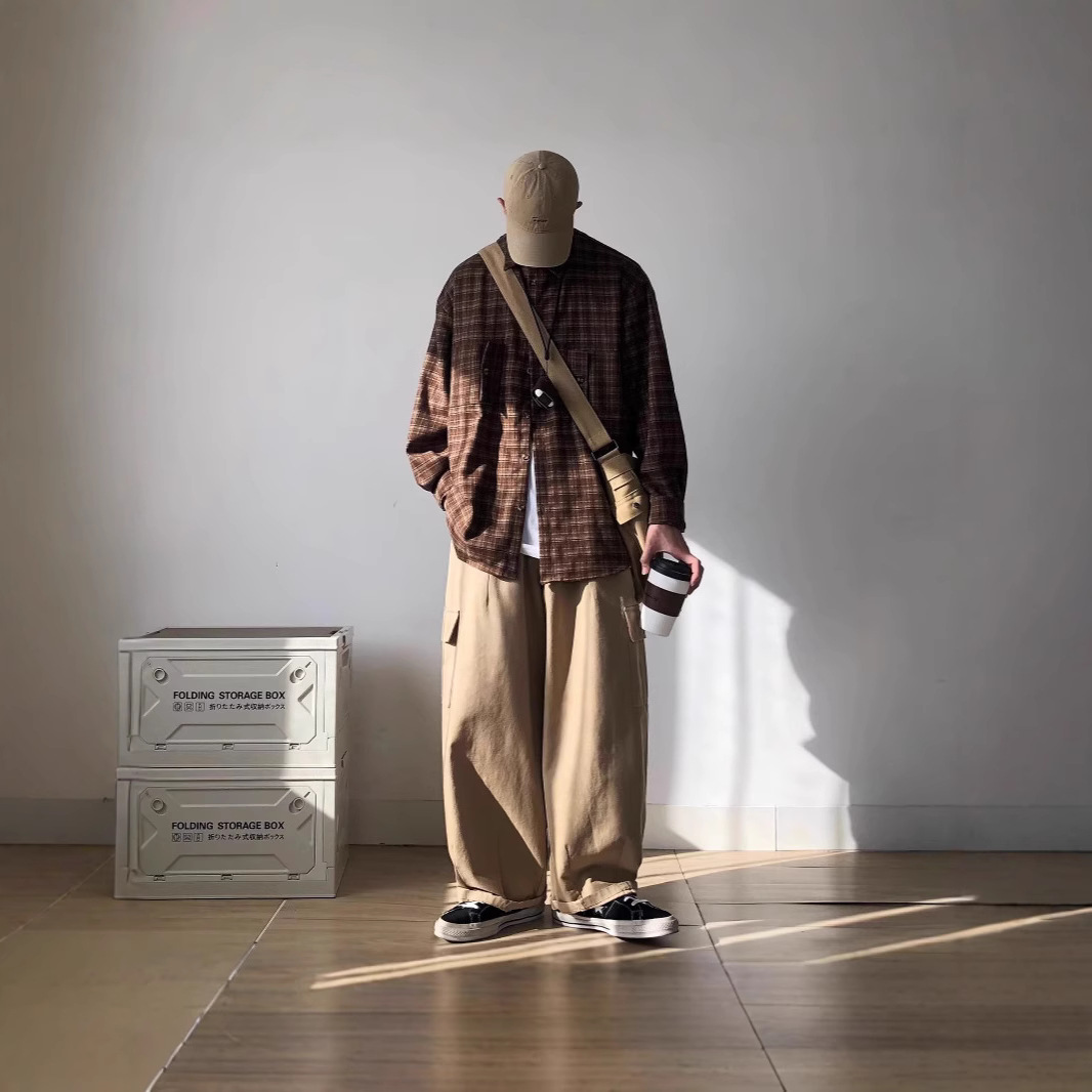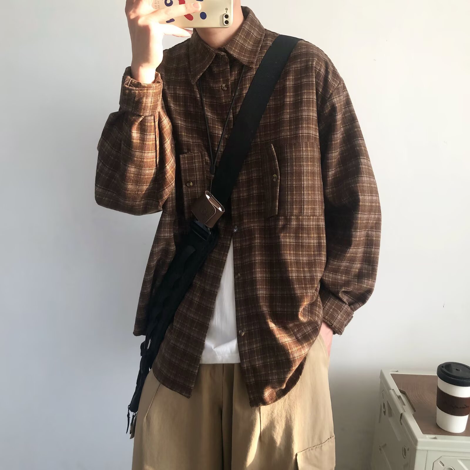 빈티지 콘트라스트 격자 셔츠 남성과 여성의 긴 소매 탑 봄과 가을 하이 엔드베이스 셔츠 스택 캐주얼 자켓스토어 가기