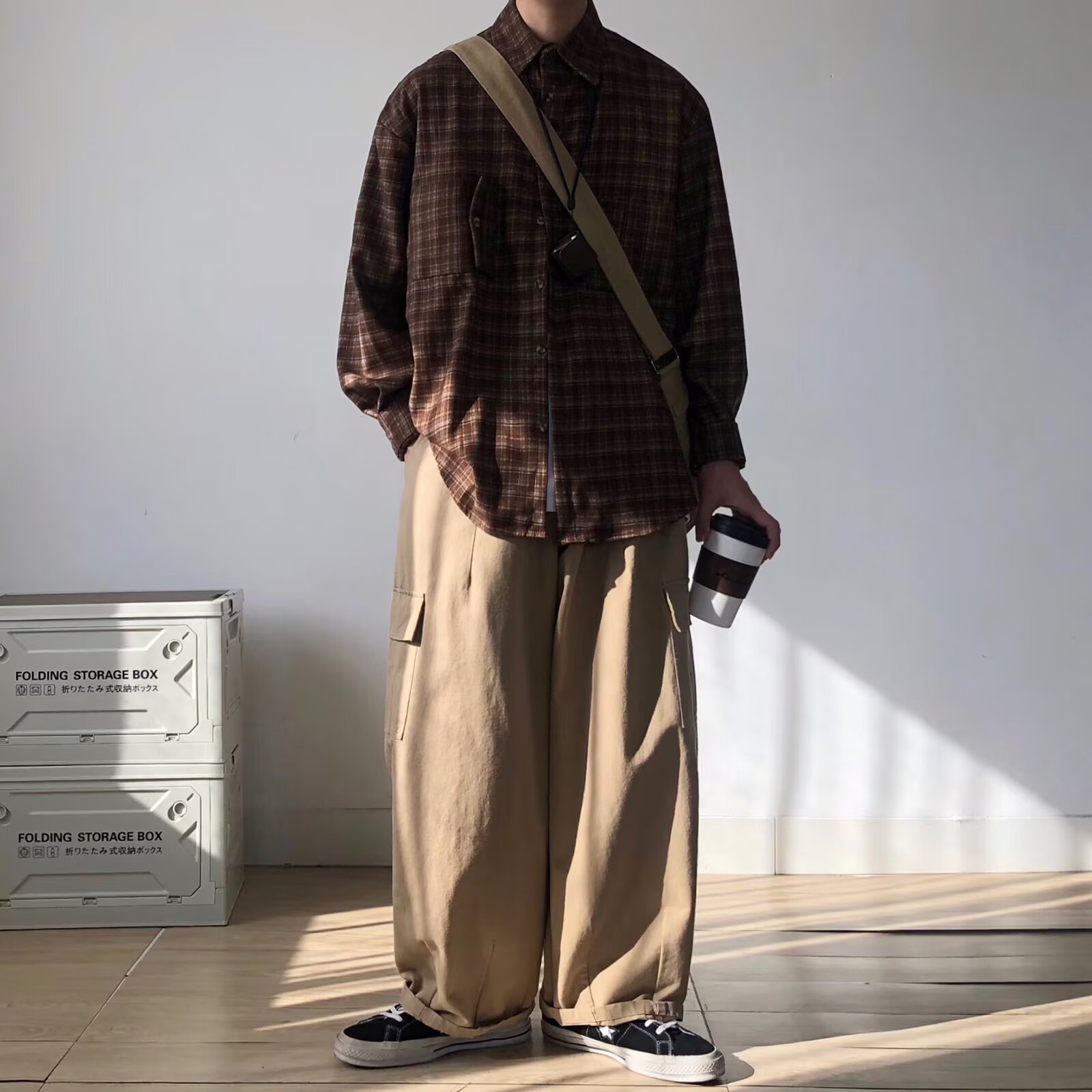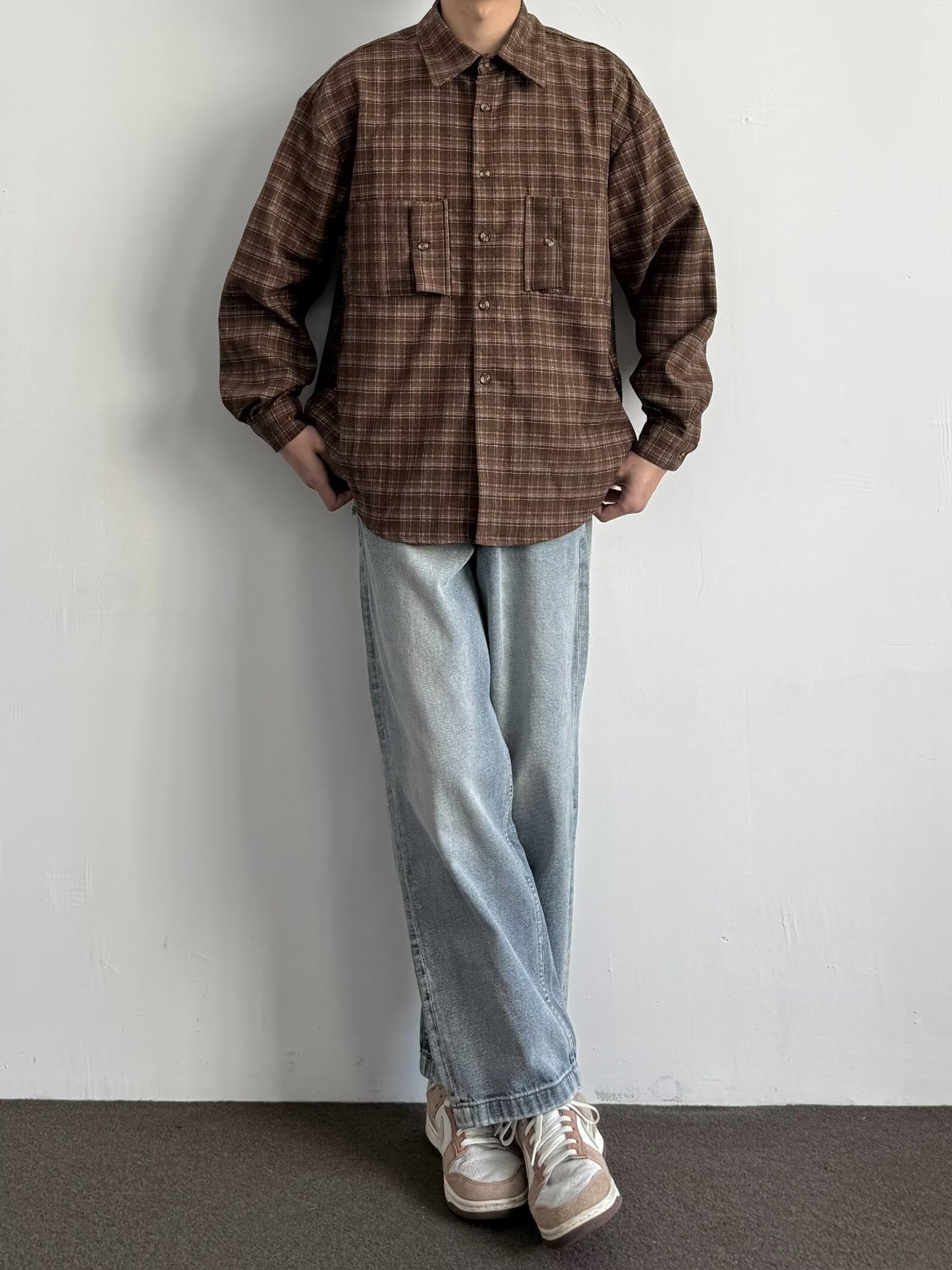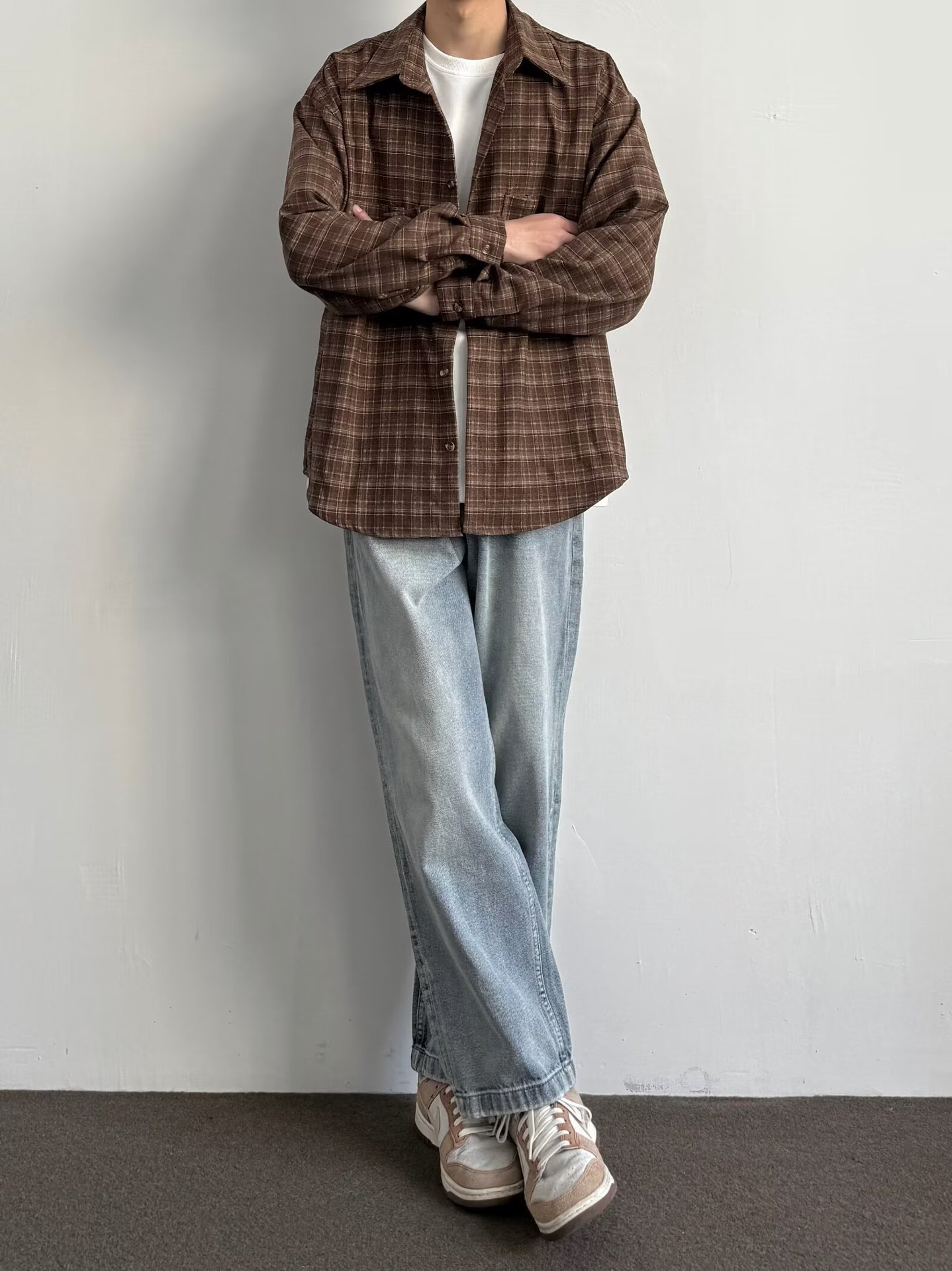 빈티지 콘트라스트 격자 셔츠 남성과 여성의 긴 소매 탑 봄과 가을 하이 엔드베이스 셔츠 스택 캐주얼 자켓스토어 가기