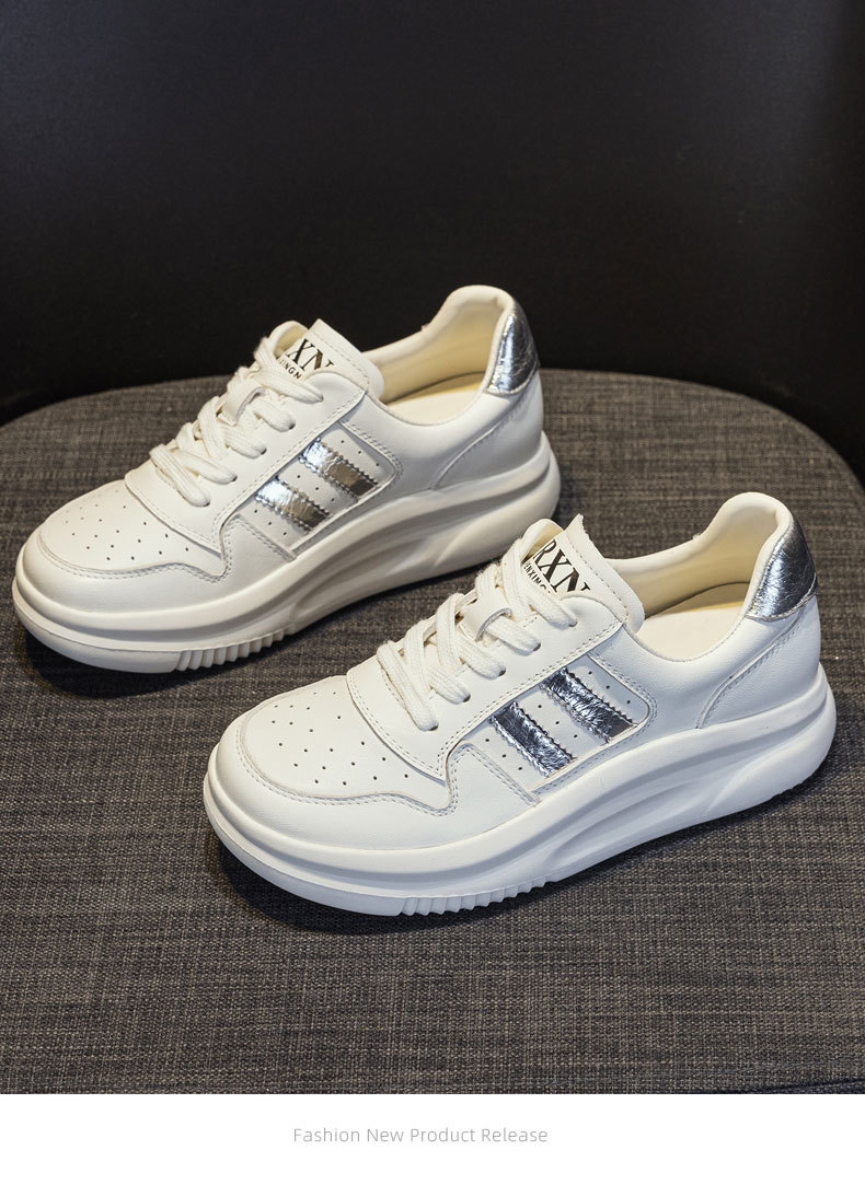 봄 2025 새로운 스타일 탑 레이어 Cowhide 유행 올 매치 화이트 신발 여성 한국식 캐주얼 보드 신발 내마모성 여성용 두꺼운 단독 신발