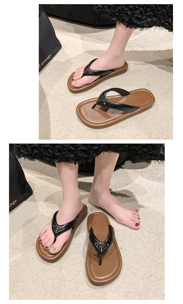 바람 스타일의 헤링 스퀘어 비치 스커트 한국식 발 클립 평면 슬리퍼 여성 여름 야외 요정 샌들 새로운 삼각형스토어 가기