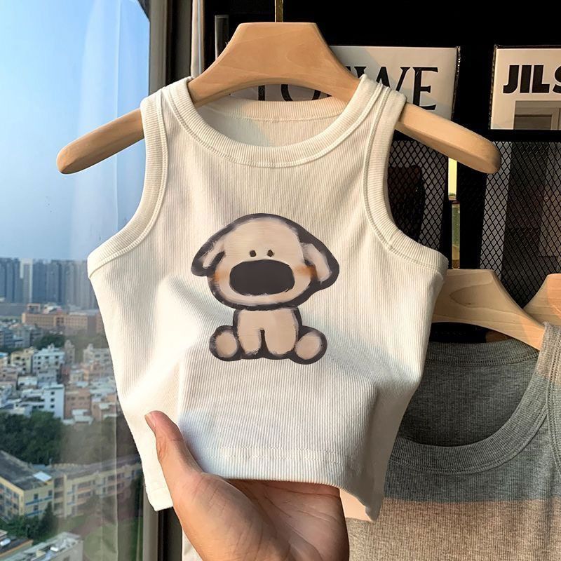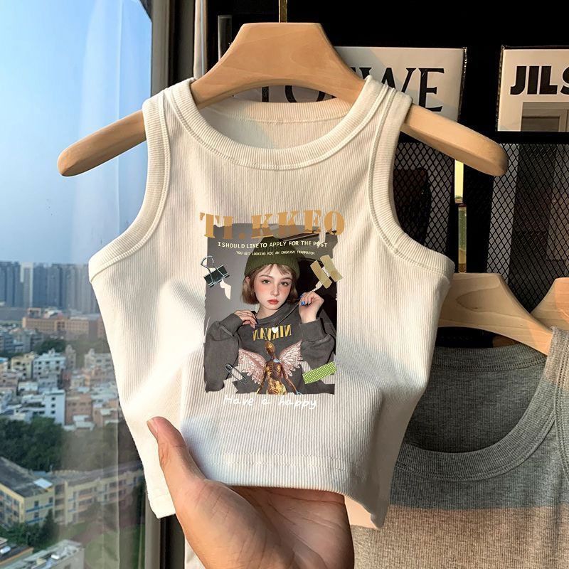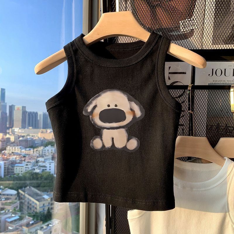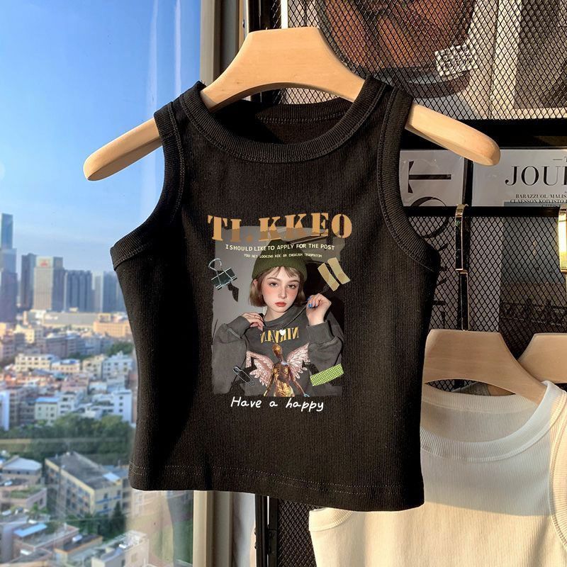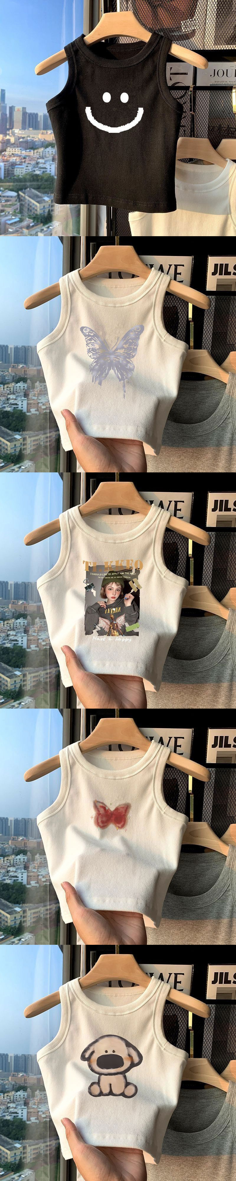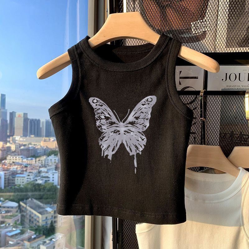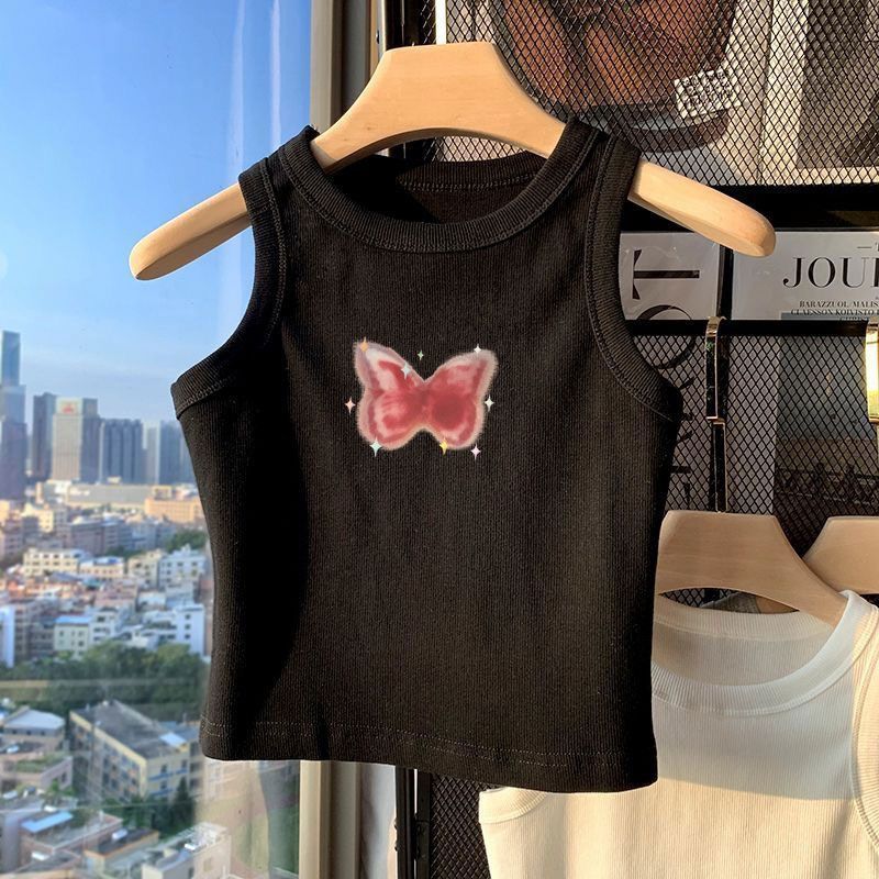 소녀 나비 인쇄 검은 민소매 조끼 여름 2025 새로운 달콤한 나비 인쇄 모든 경기 외부 착용 탑스토어 가기