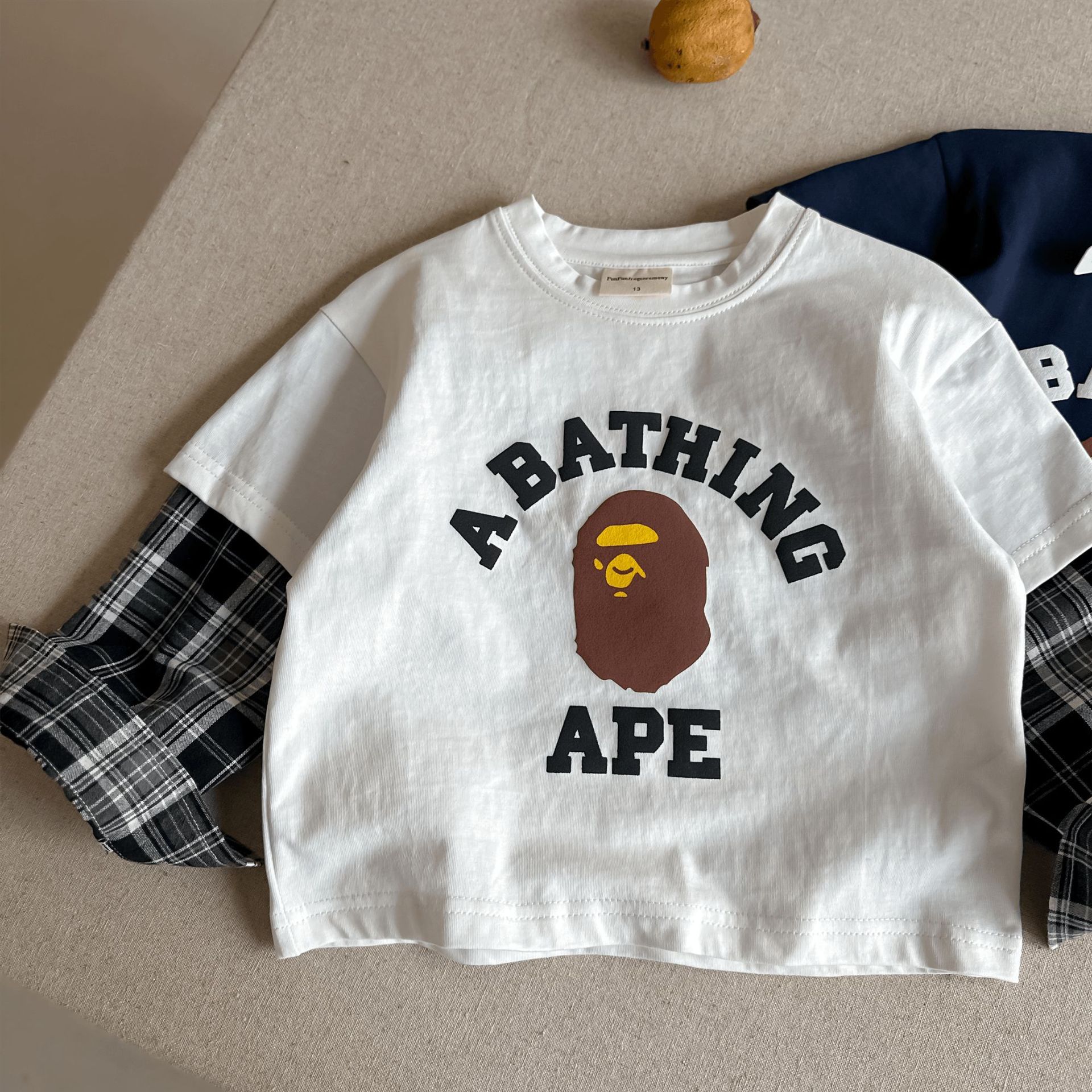 [한샤오샤오] 봄 · 가을 패션 브랜드 가짜 투피스 베이스 셔츠 외래식 어린이 티셔츠 긴소매 소년 '잘 생긴 탑'스토어 가기