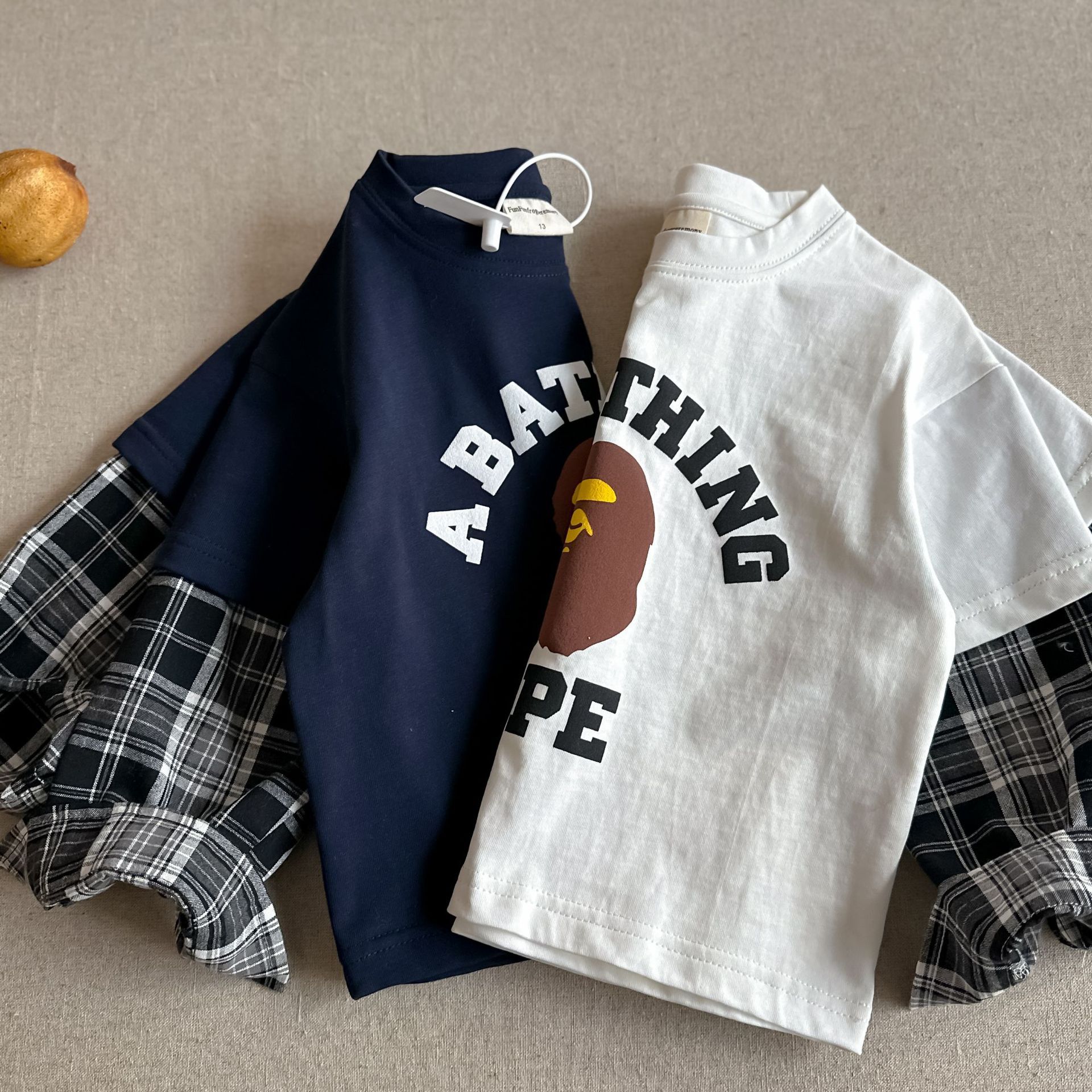 [한샤오샤오] 봄 · 가을 패션 브랜드 가짜 투피스 베이스 셔츠 외래식 어린이 티셔츠 긴소매 소년 '잘 생긴 탑'