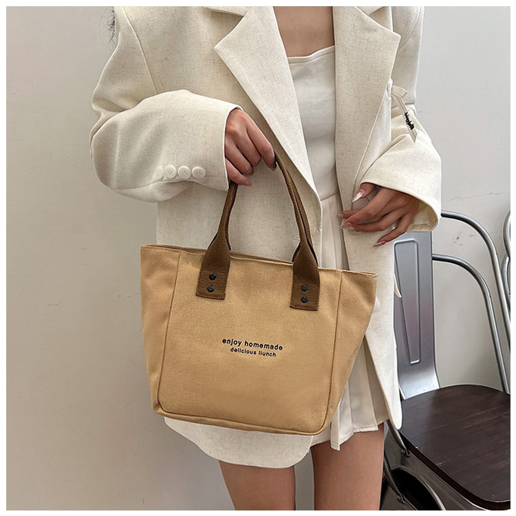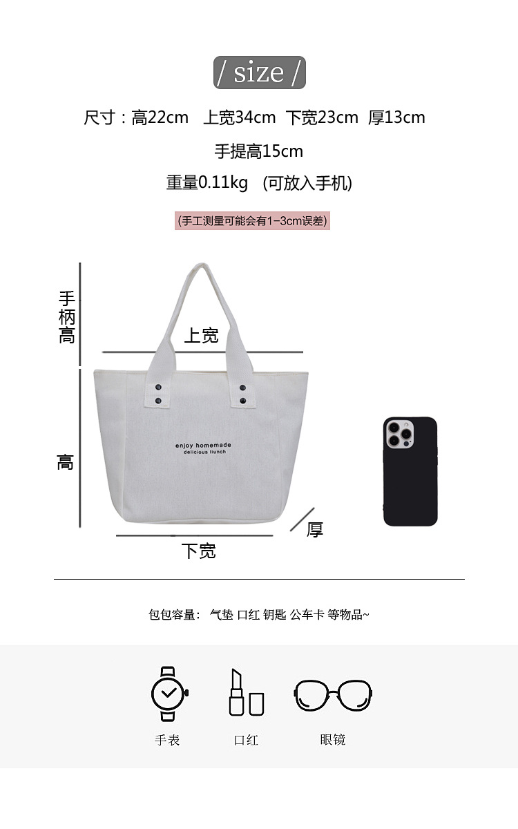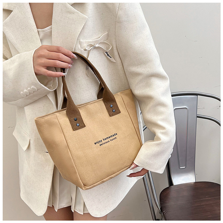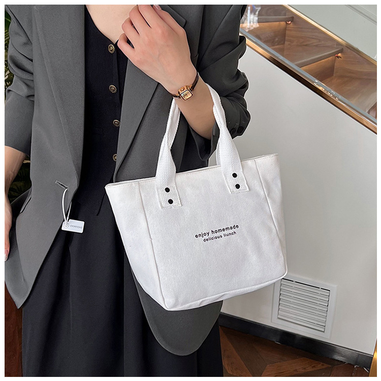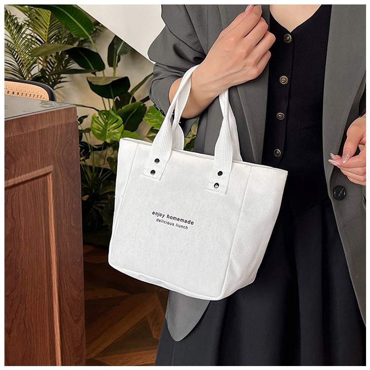 대용량 휴대용 캔버스 가방 새로운 남성과 여성의 통근 핸드백 캐주얼 보관 가방 학생 간단한 점심 가방스토어 가기