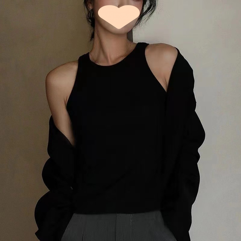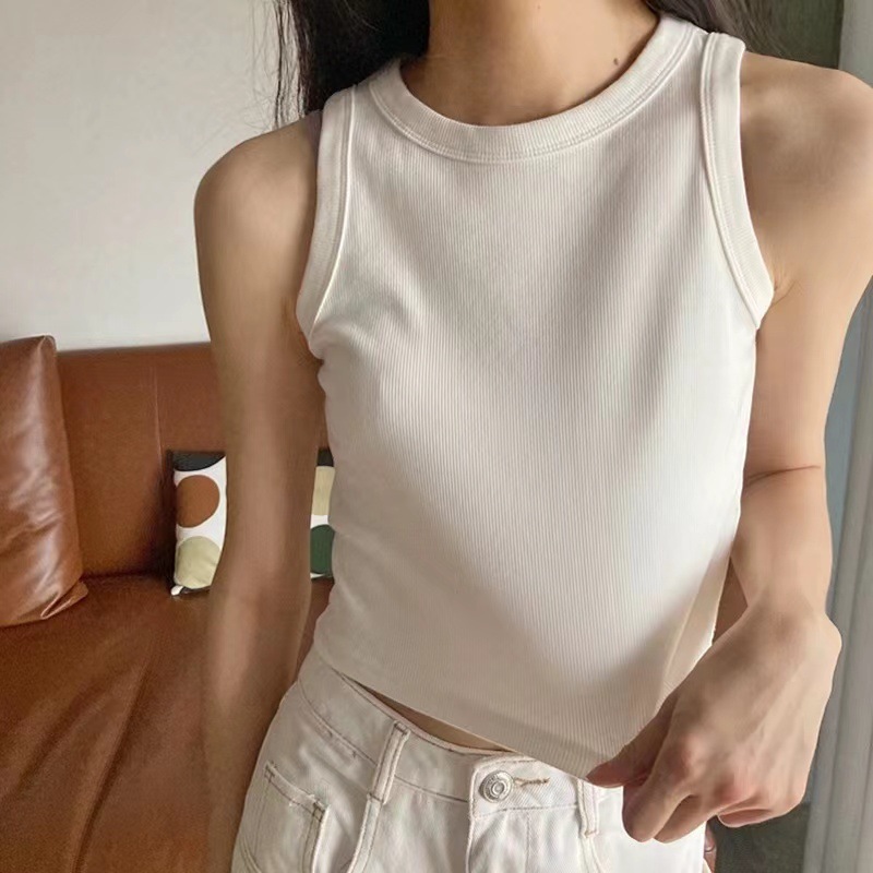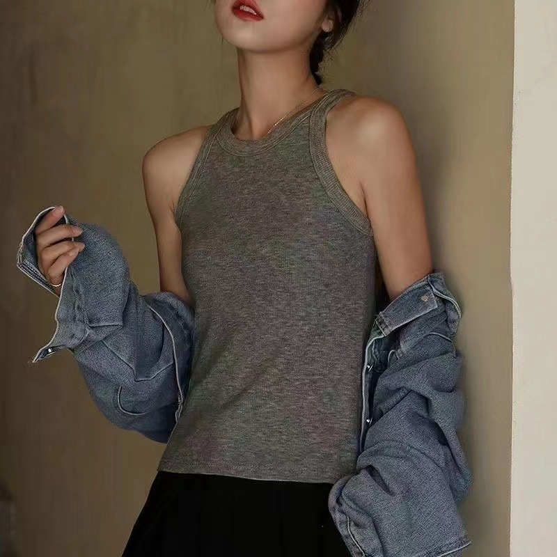 여성 쇼트 스포츠 슬링 작은 조끼 여성 여름 새로운 디자인 센스 작은 아름다운 백 스레드 민소매 탑 블랙