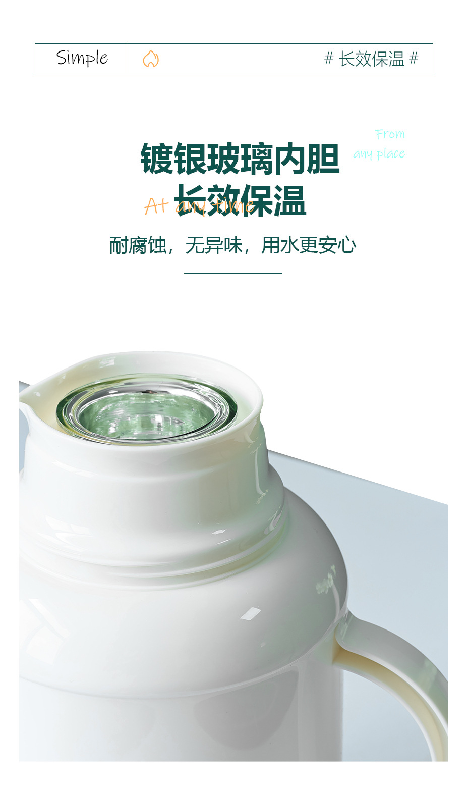 푸청 열 보존 냄비 가정용 대용량 휴대용 열 보존 및 냉간 단열 가정용 화이트 오렌지 녹색 유리스토어 가기