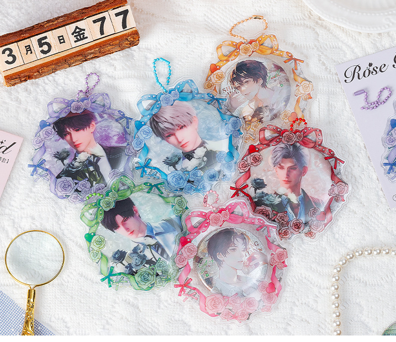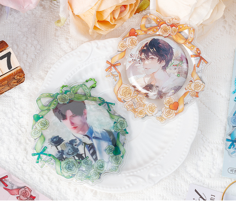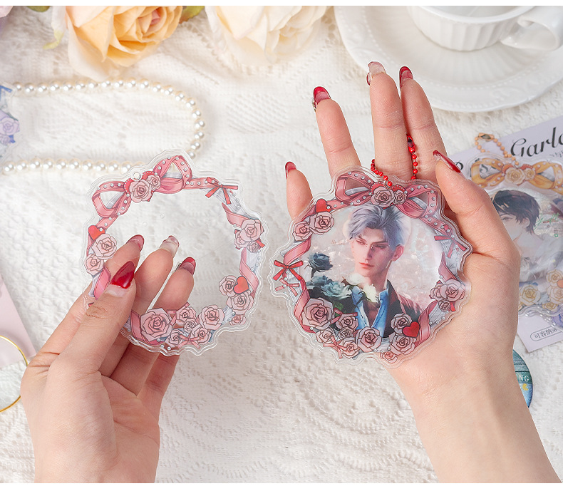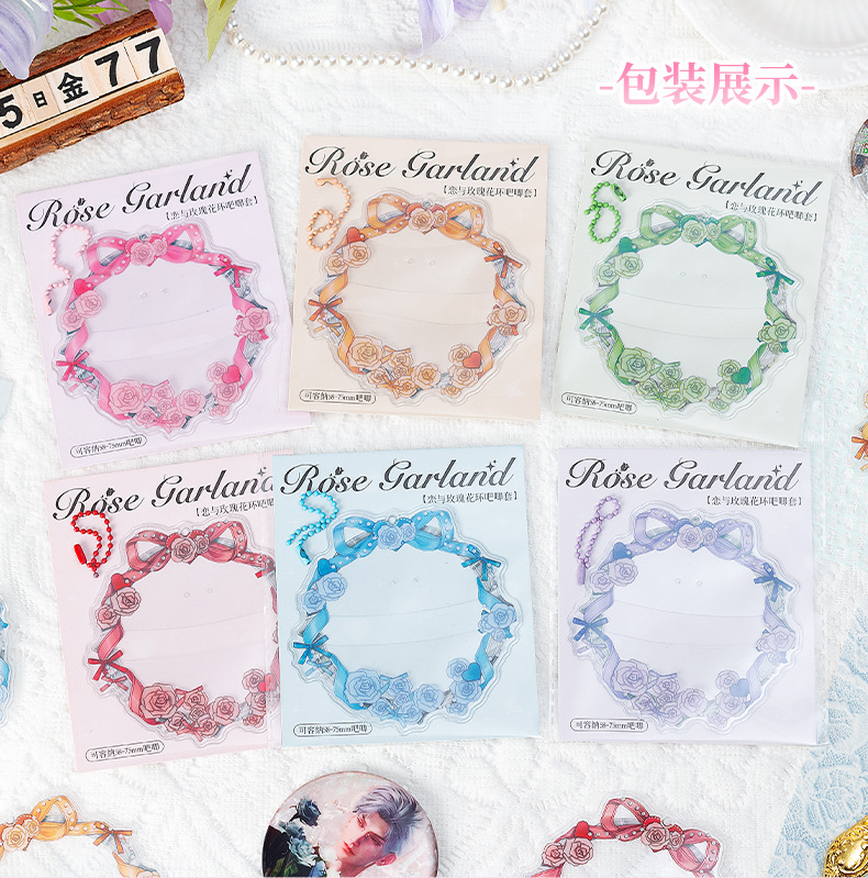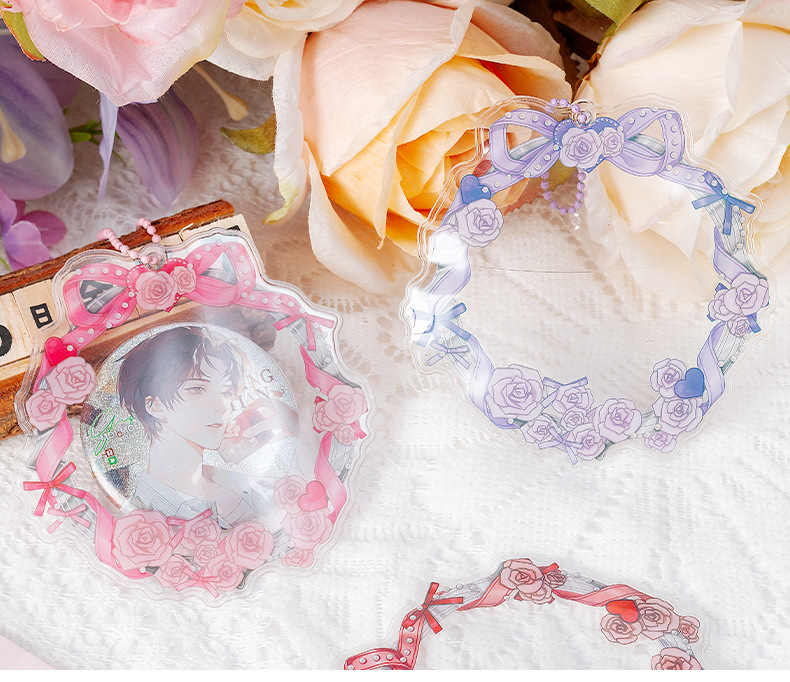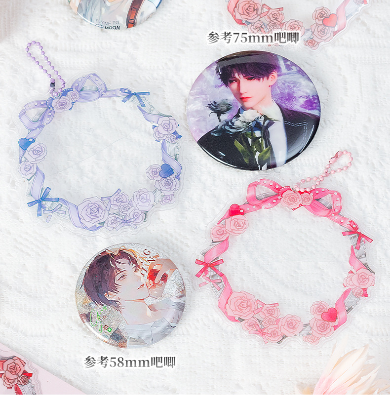 사랑과 장미 화환 세트 2 차원 배지 주변 애니메이션 가방 펜던트 브로치 디스플레이 보호 카드 세트스토어 가기
