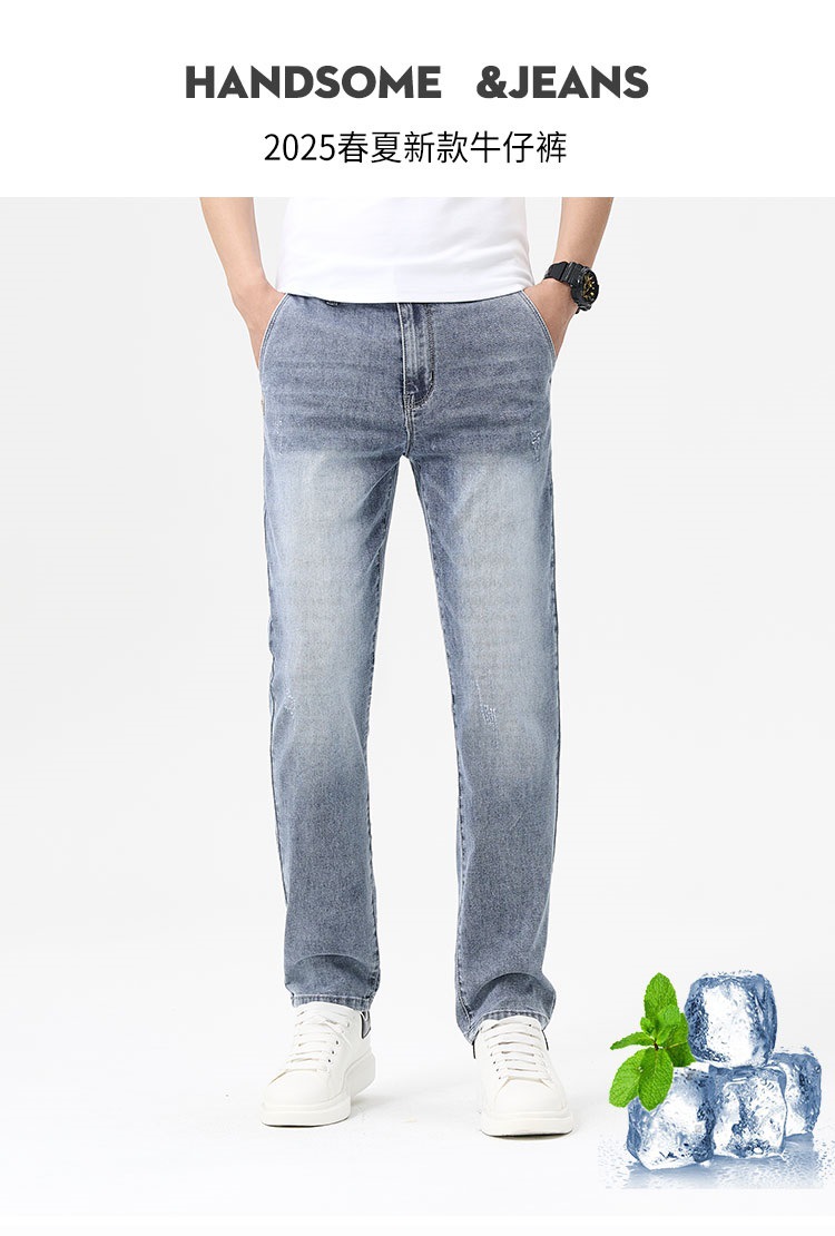 Fengshe 남성복/2025 여름 얇은 높은 허리 느슨한 빛 사업 얇은 직선 바지 청바지