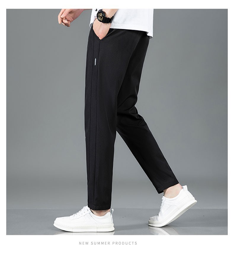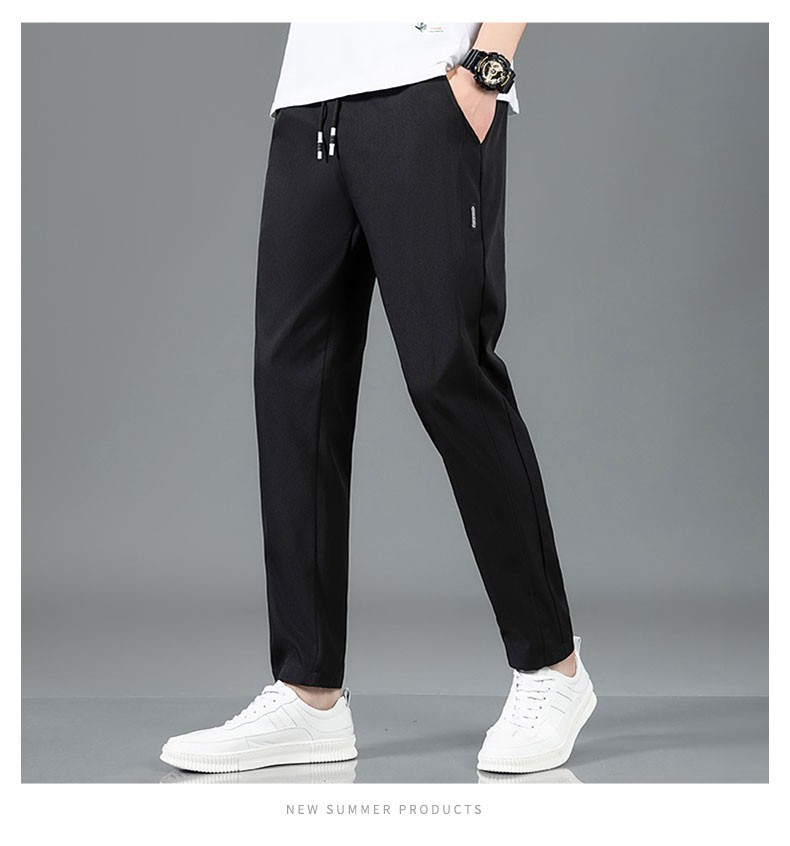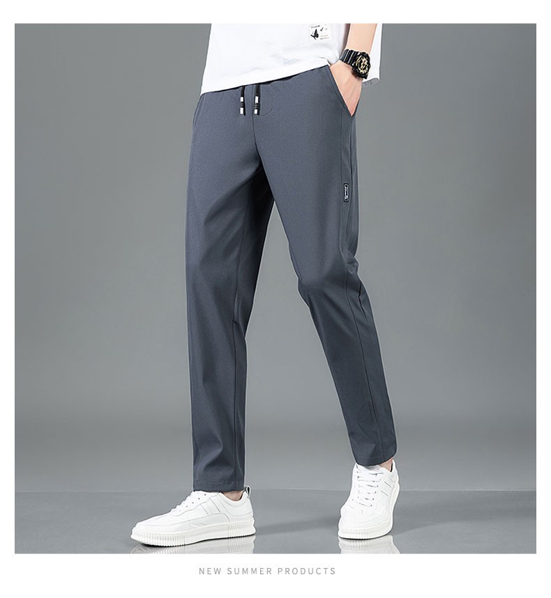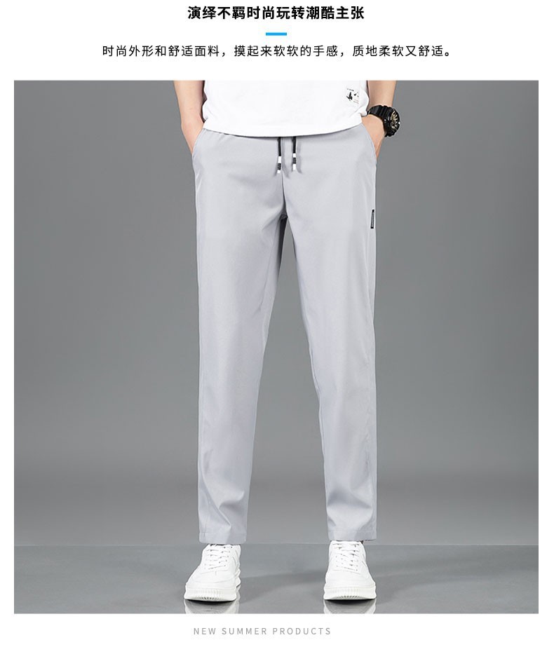 바지 남자의 캐주얼 바지 여름 얇은 남자의 유행 빠른 건조 남자의 스포츠 발목 길이 바지 아이스 실크 남자의 바지 아이스 실크스토어 가기