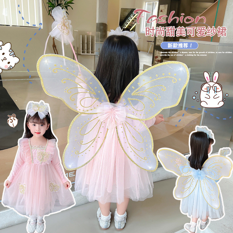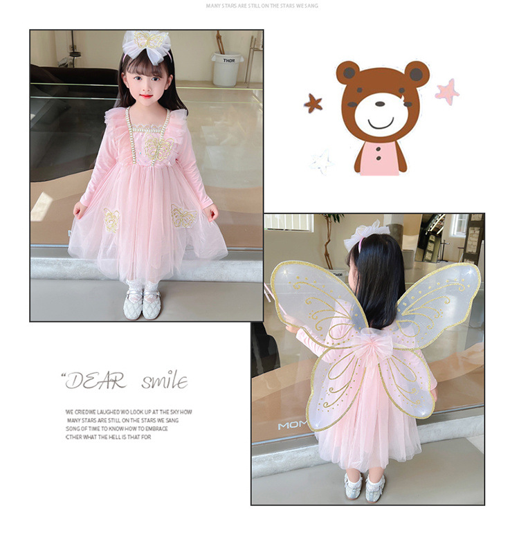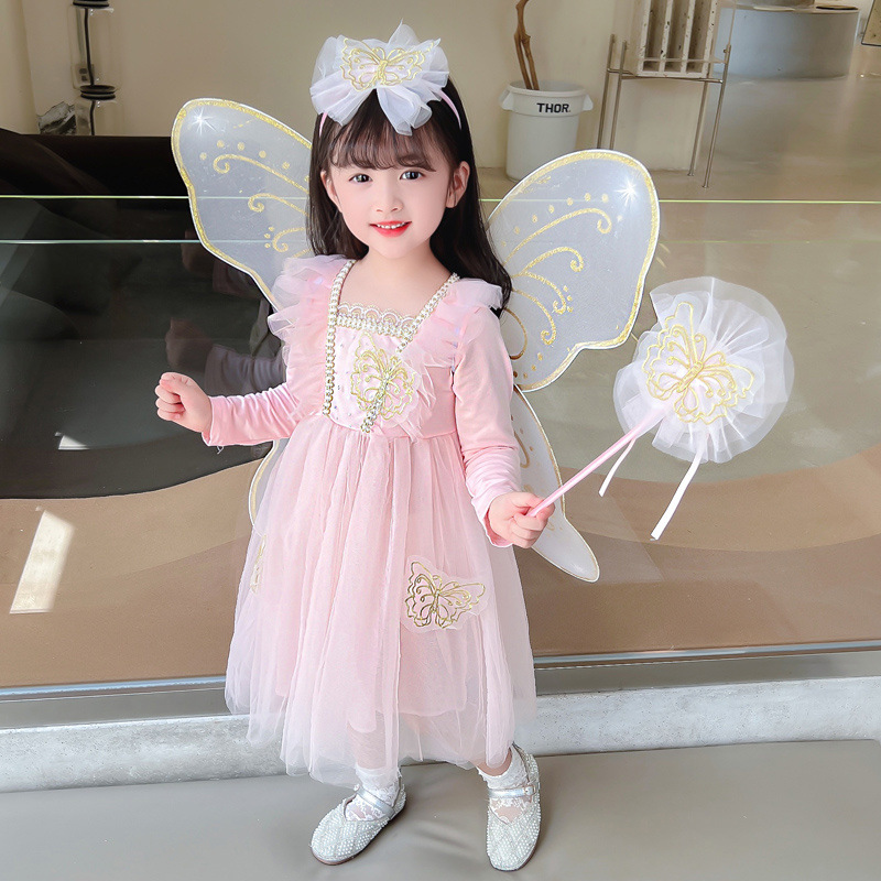 여자 원피스 2025 가을 새 생일 공연 원피스 아기 꽃 요정 나비 날개 폰카