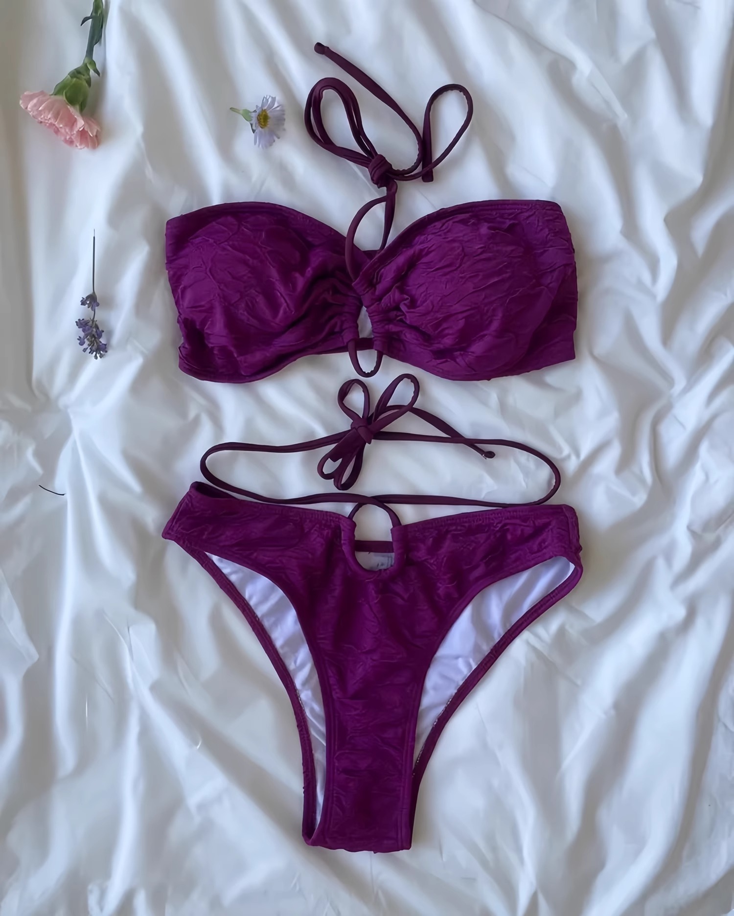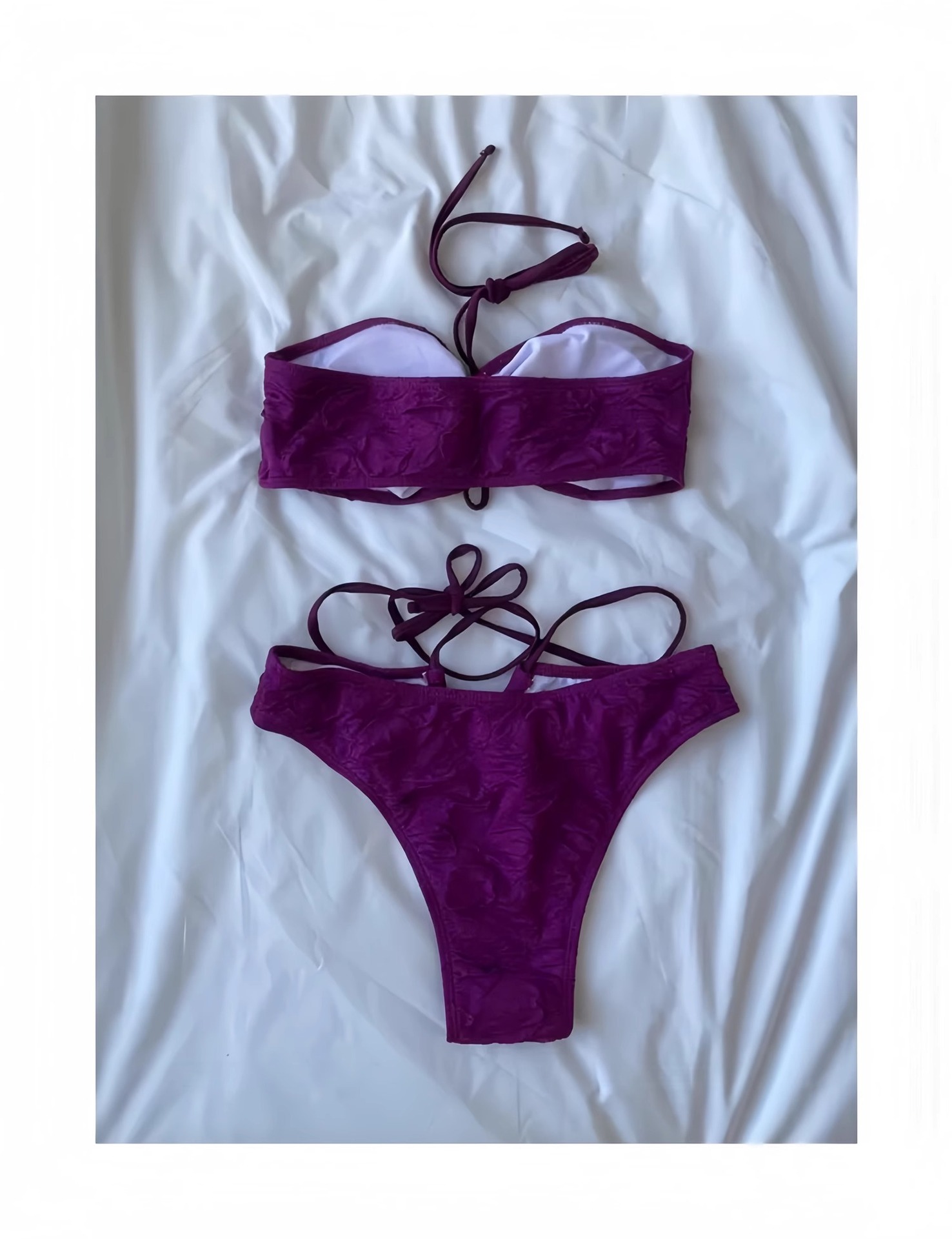 2025 새로운 BIKINI 고급 퍼플 화이트 버킷 비키니 3 피스 세트 휴가 여성을위한 온천 해변 수영복