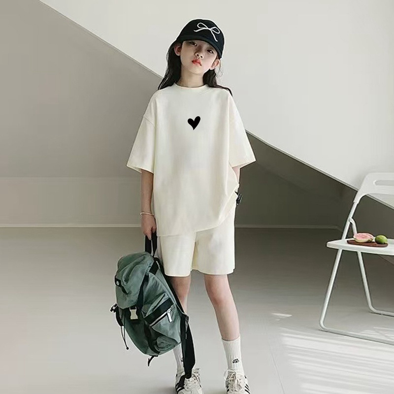 국경 간 소녀 세트 2025 새로운 여름 어린이 중 · 빅 걸스 서양식 레저 루즈 스포츠 투피스 세트