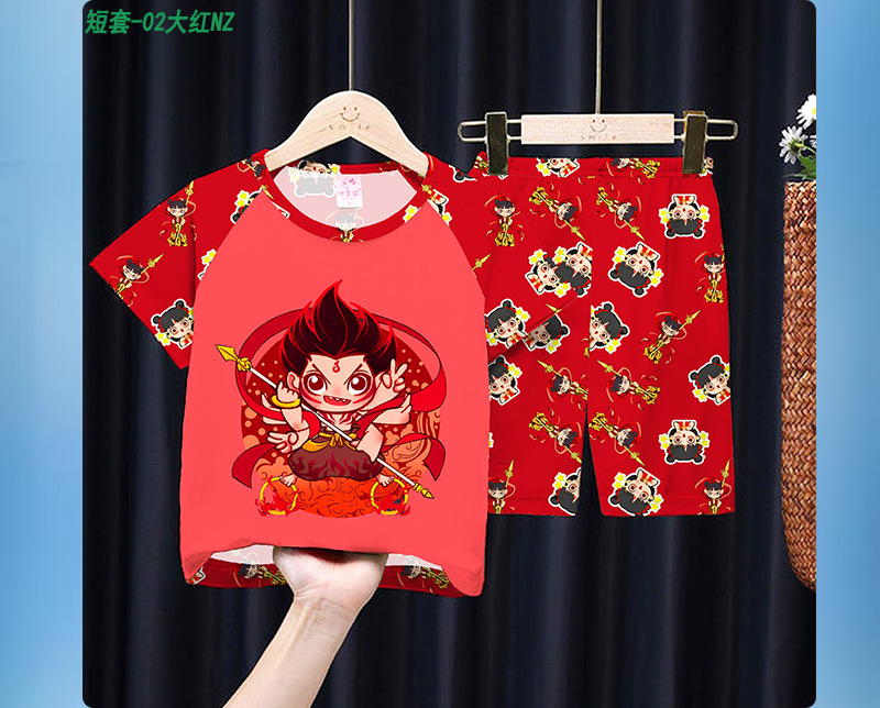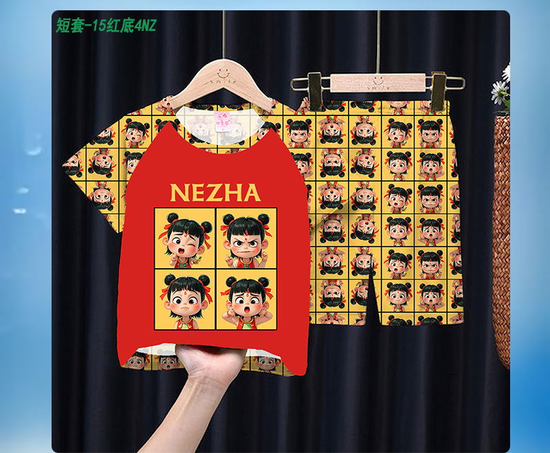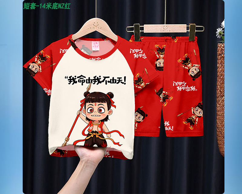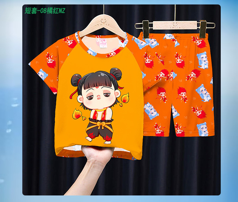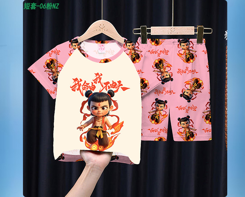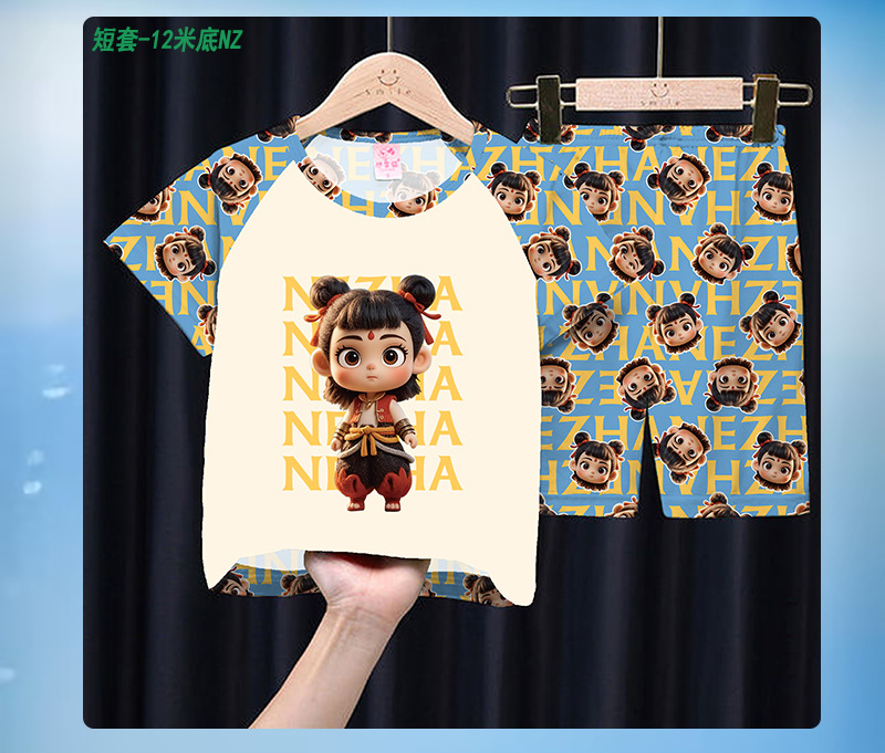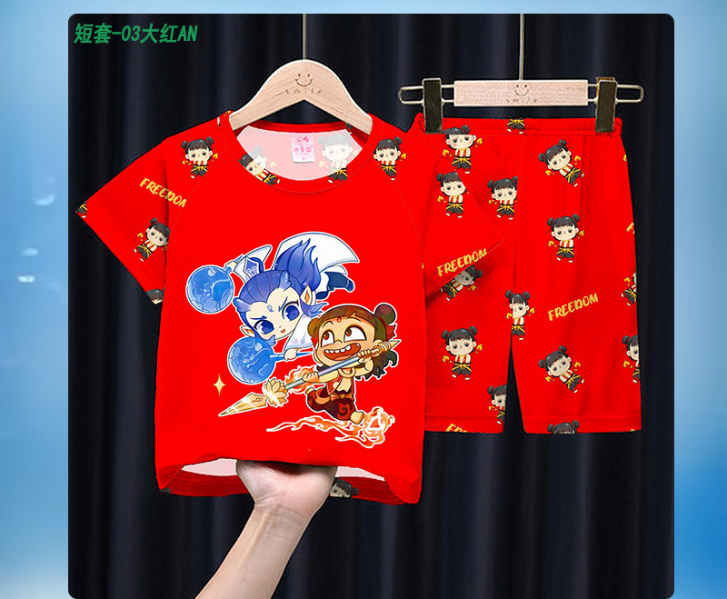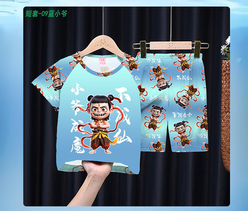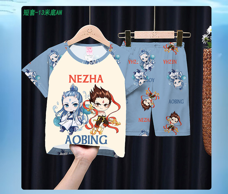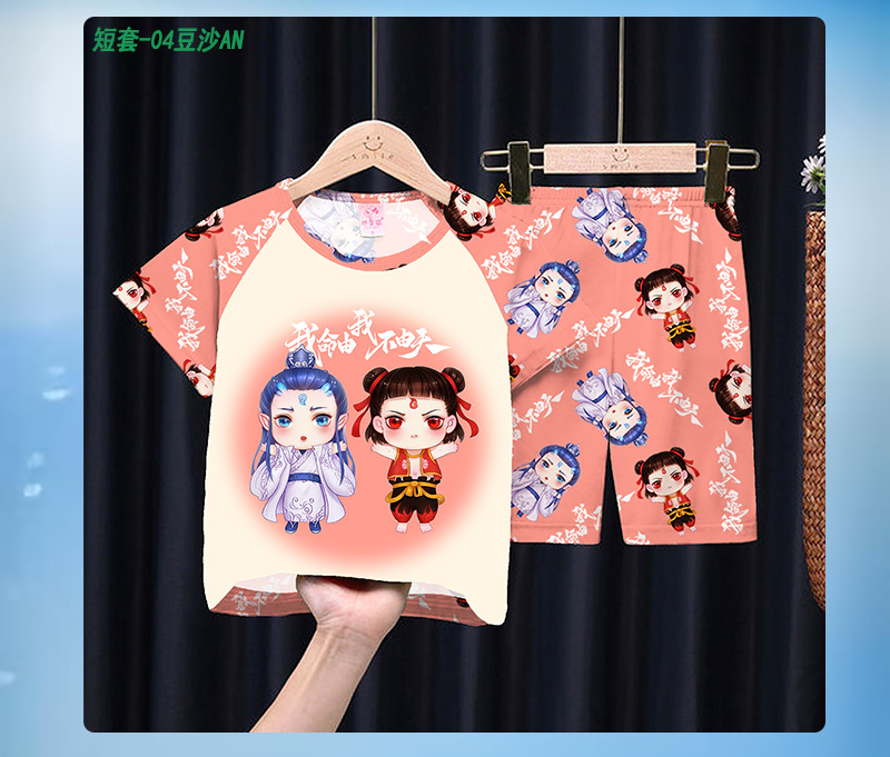2025 새로운 어린이 잠옷 여름 반팔 큰 소년의 집 옷 어린 소녀의 만화 세트스토어 가기
