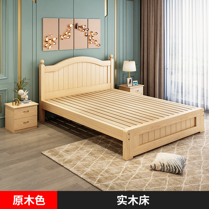 단단한 나무 침대 1.5 m 현대 간단한 유럽 더블 침대 마스터 침실 1.8 가구 경제적 인 임대 방 나무 침대 싱글 침대스토어 가기