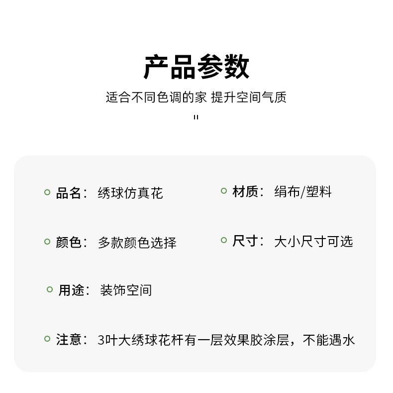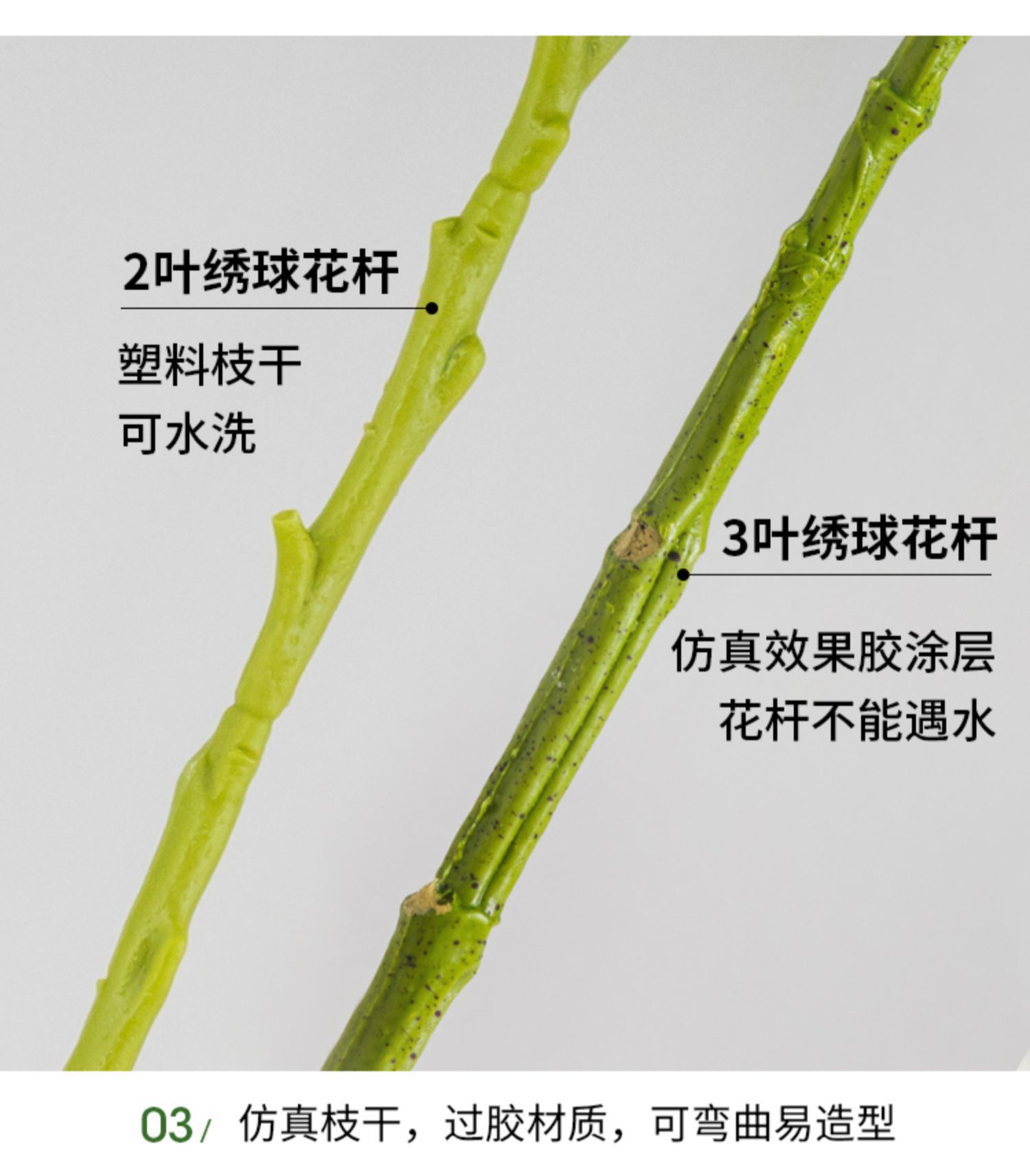 • 다크 말차 그린 대형 수국 3잎 [싱글] 3D 프린팅으로 매우 사실적