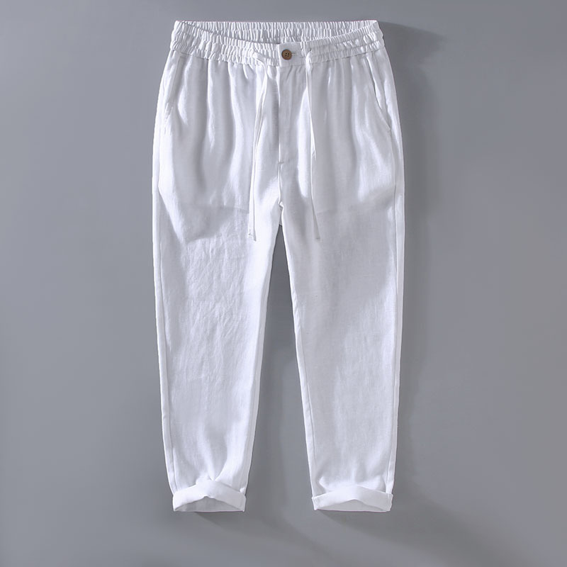 3042 순수 리넨 바지 남자 여름 새로운 느슨한 올 매치 바지 린넨 얇은 통기성 드로우 스트링 스트레이트 캐주얼 바지