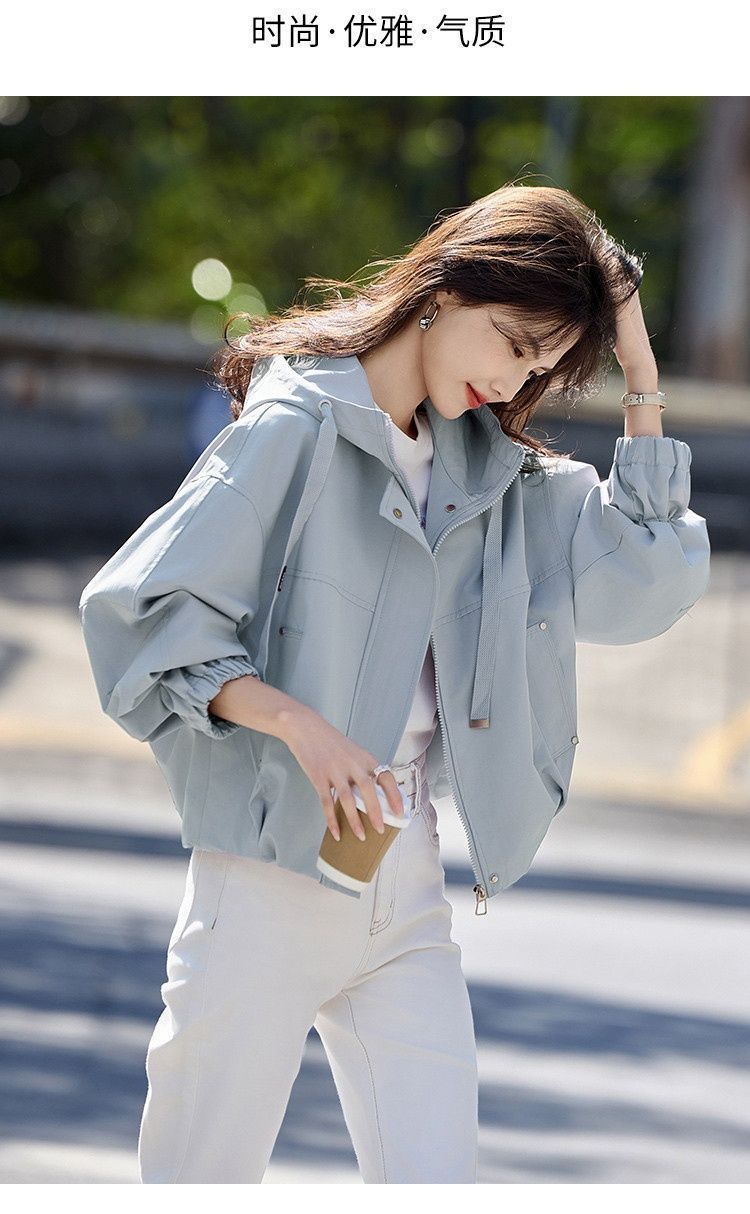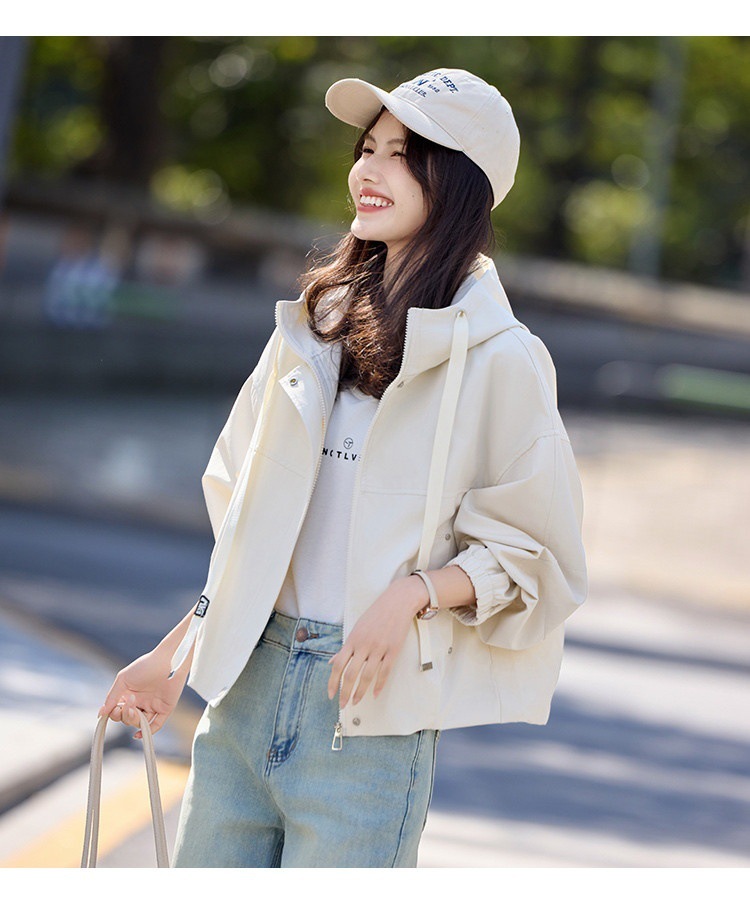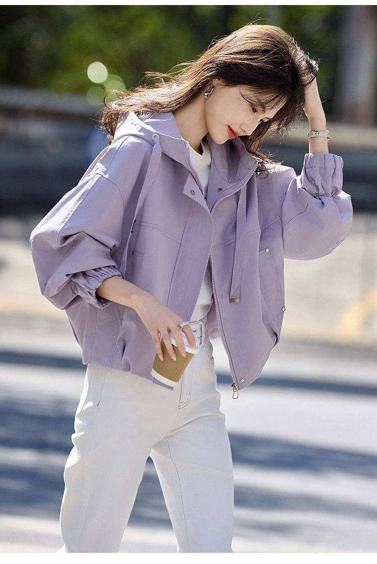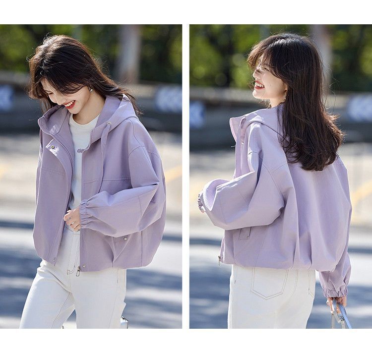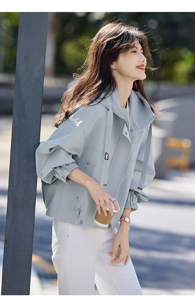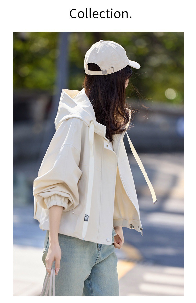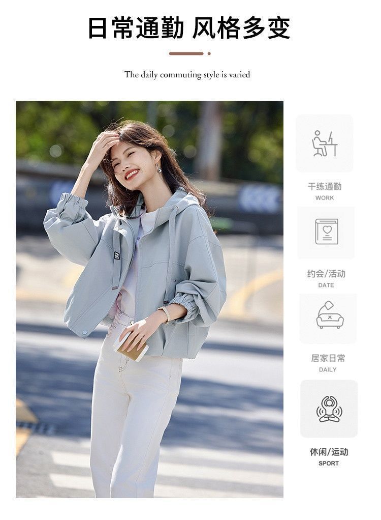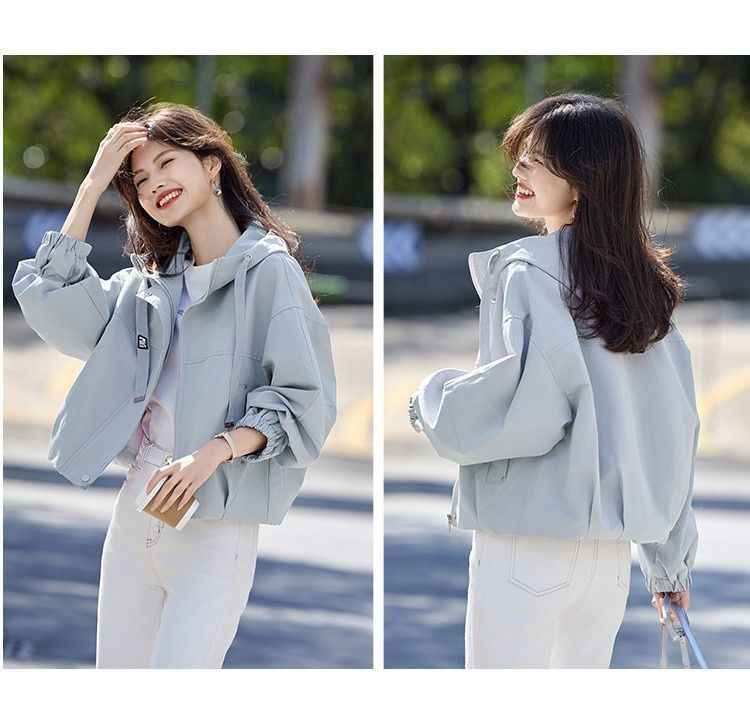 우아한 통근 짧은 후드 재킷 여성의 2025 새로운 봄과 가을 짧은 느슨한 캐주얼 자켓 탑스토어 가기