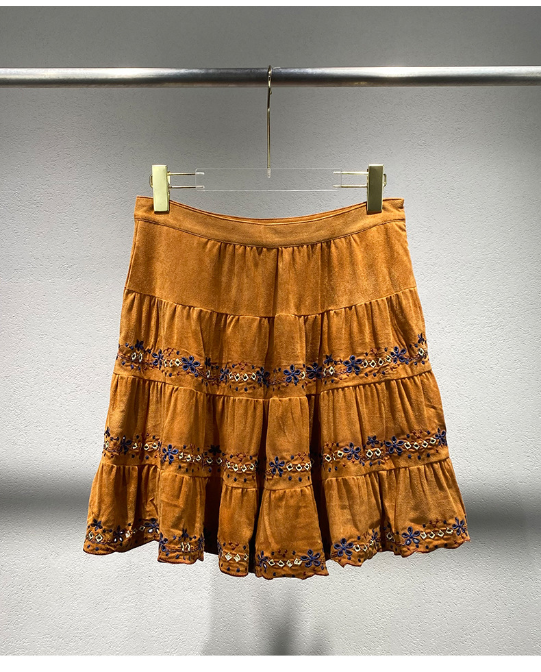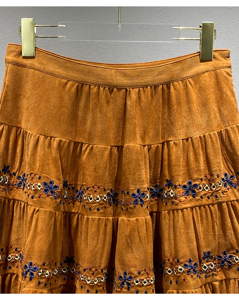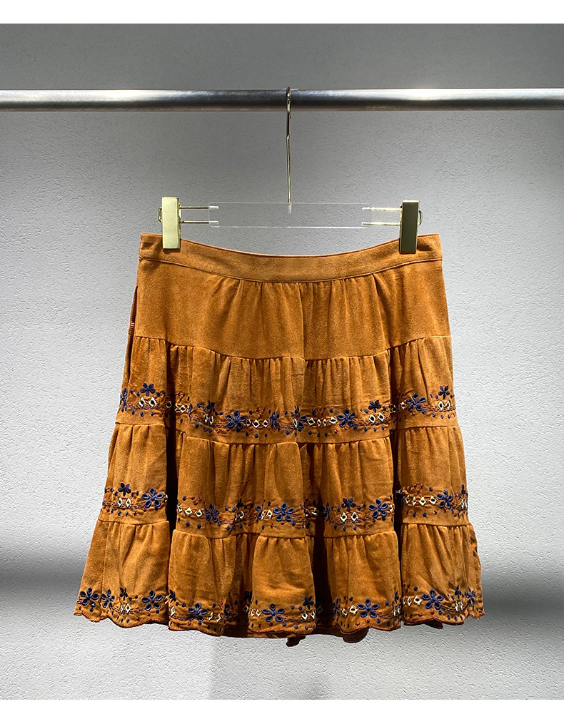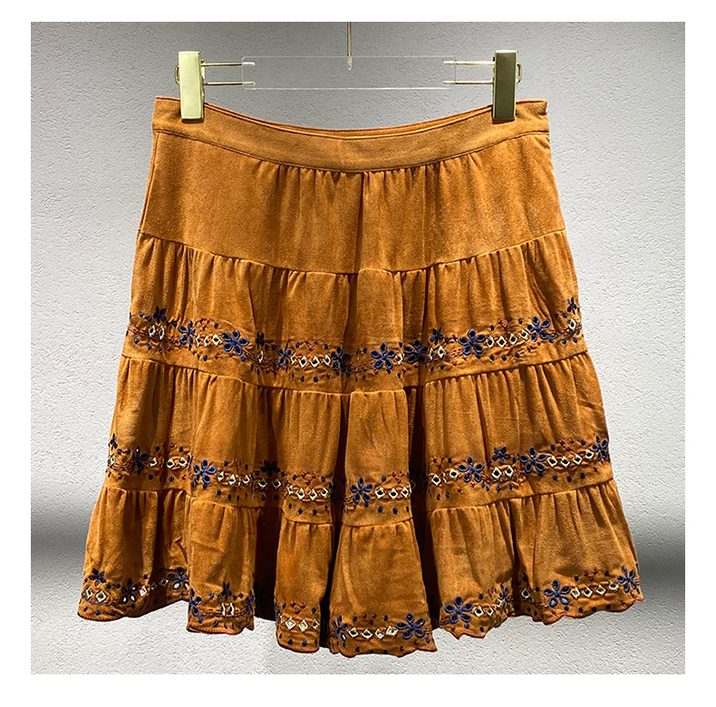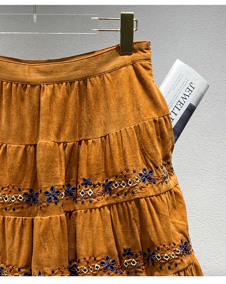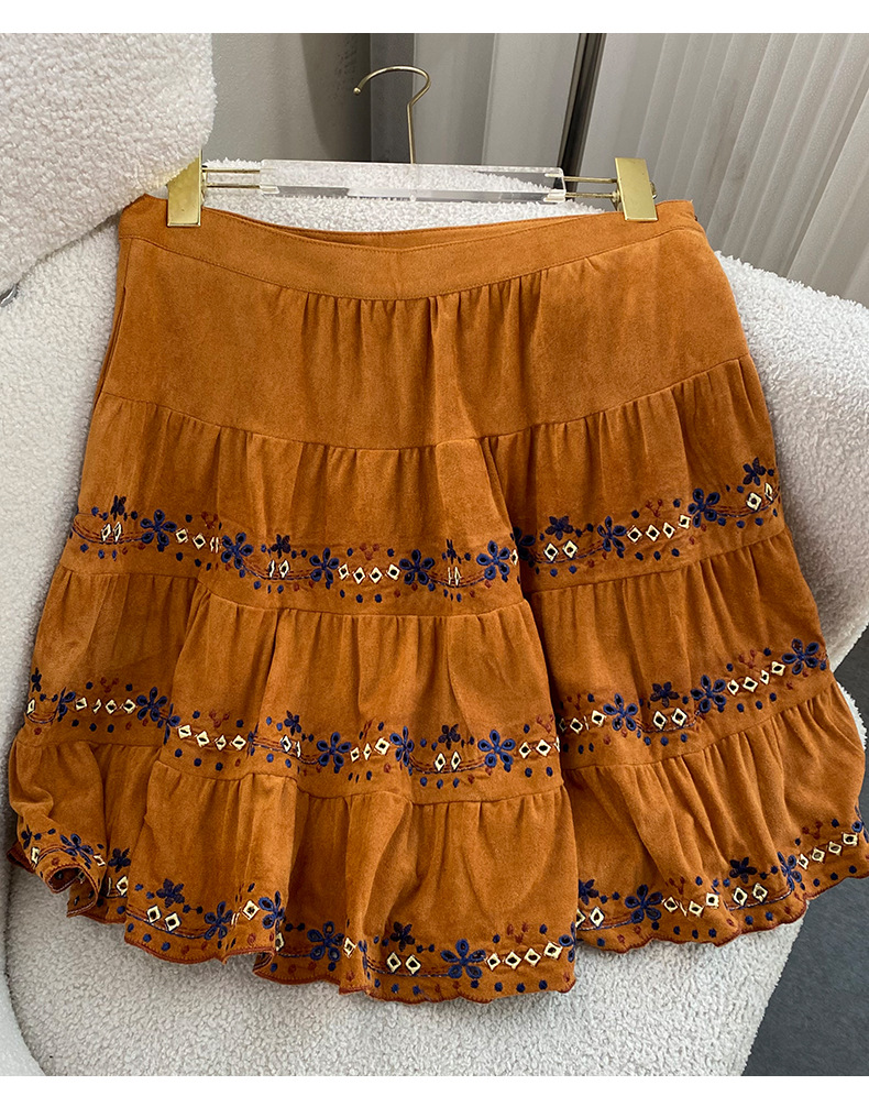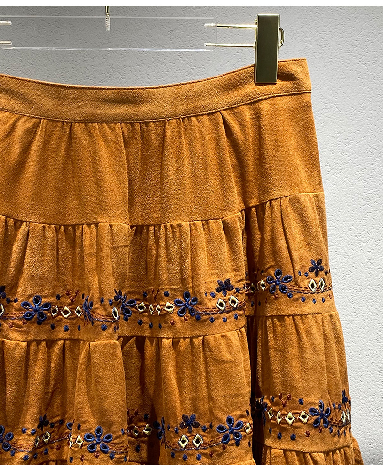 2025년 여름 새로운 스타일의 틈새 브라운 하이웨이스트 자수 A라인 스커트 여성용 다용도 캐주얼 스커트스토어 가기