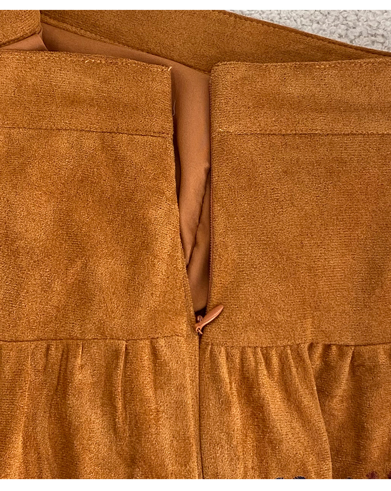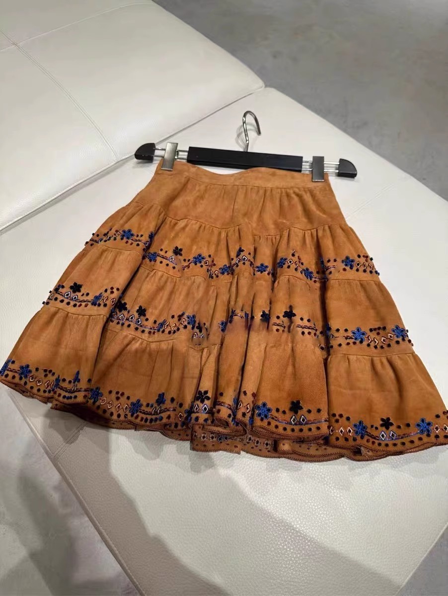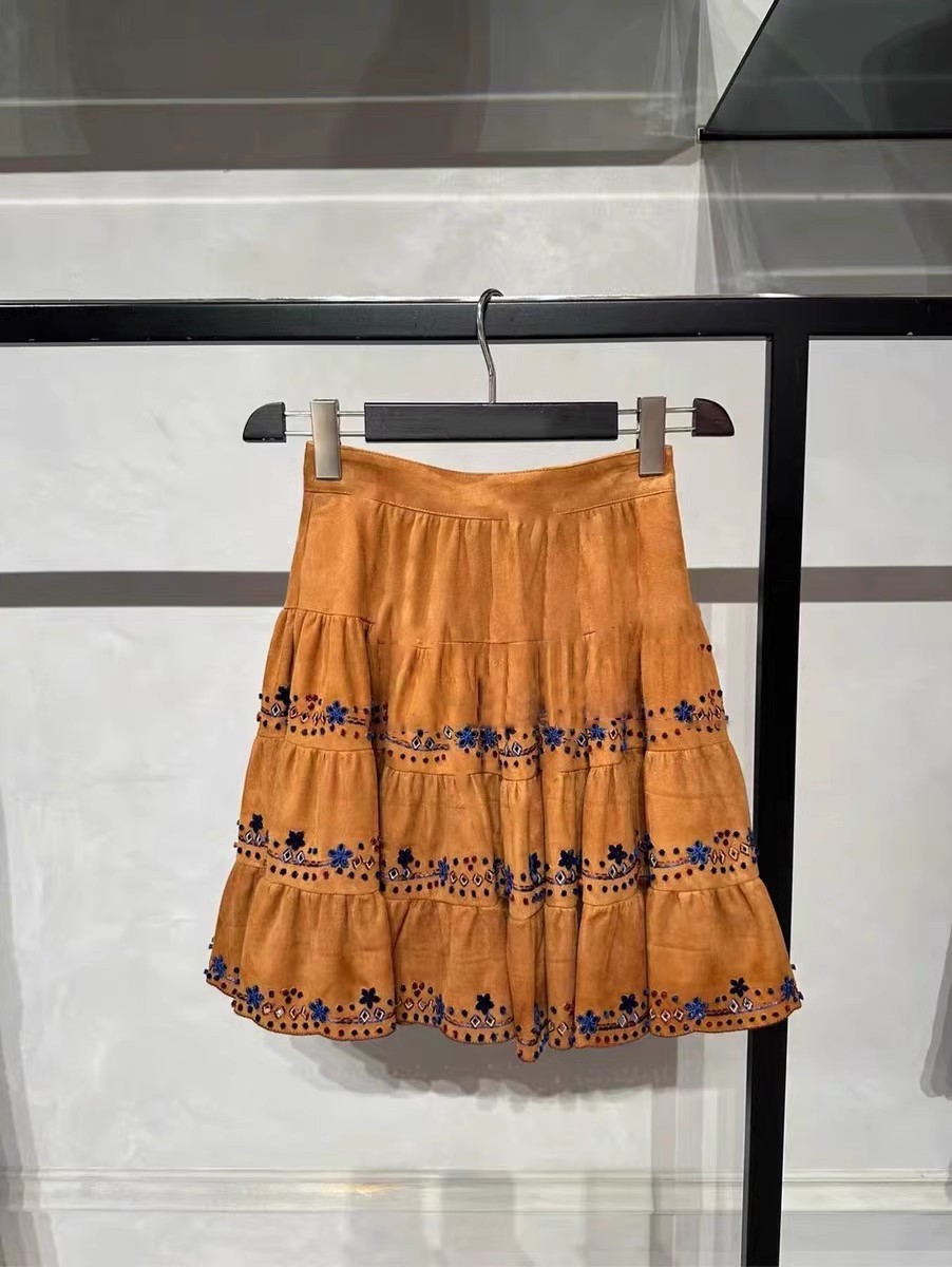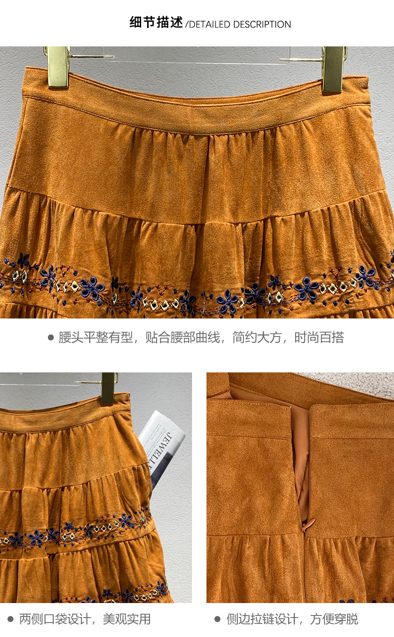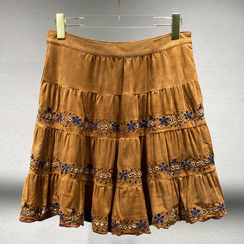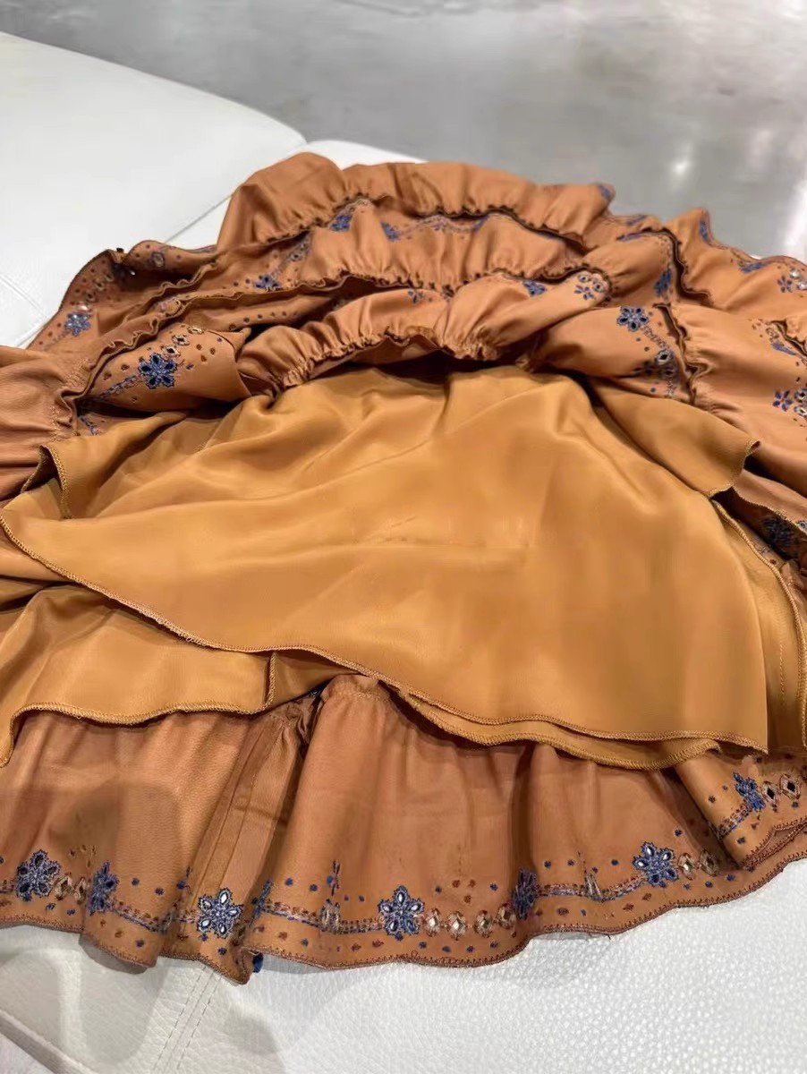 2025년 여름 새로운 스타일의 틈새 브라운 하이웨이스트 자수 A라인 스커트 여성용 다용도 캐주얼 스커트스토어 가기