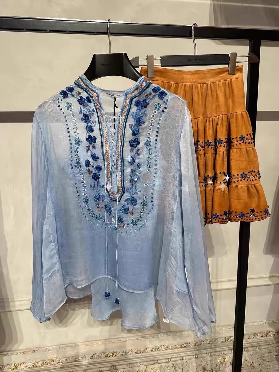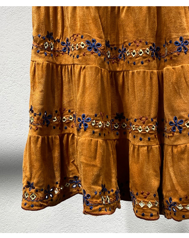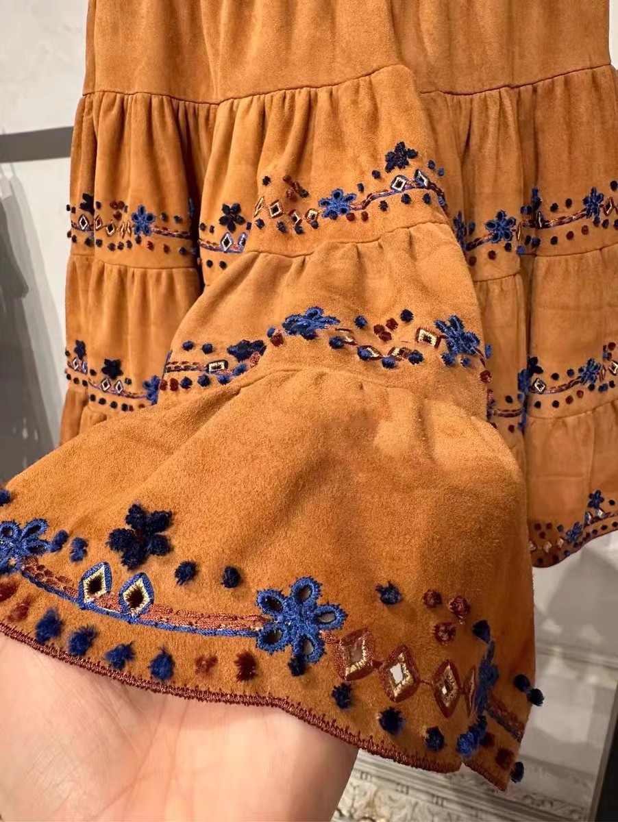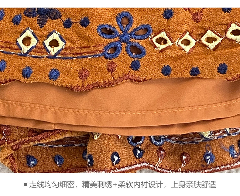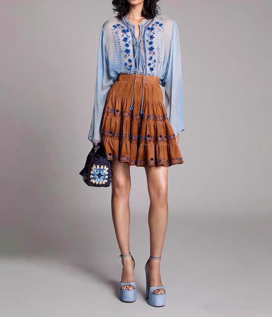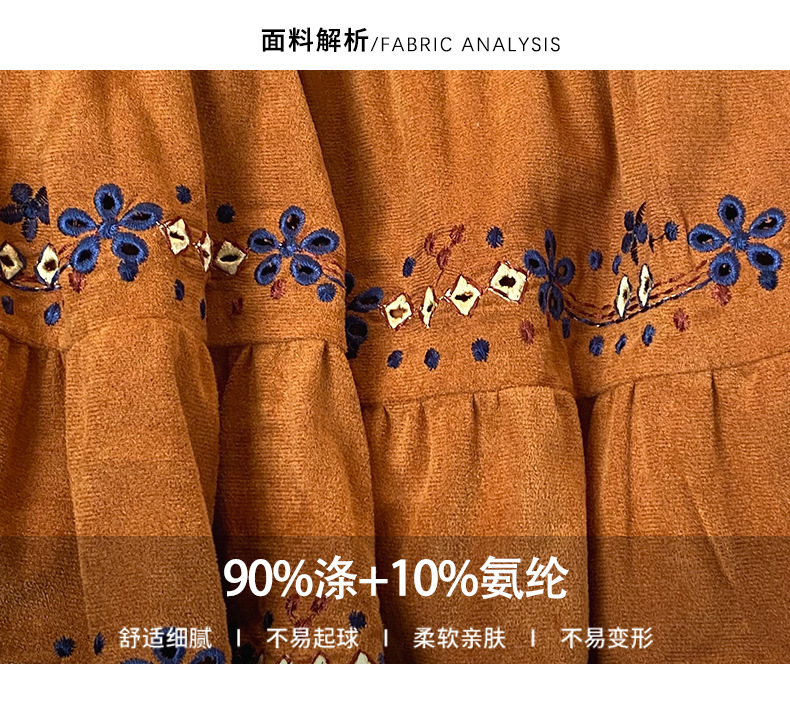 2025년 여름 새로운 스타일의 틈새 브라운 하이웨이스트 자수 A라인 스커트 여성용 다용도 캐주얼 스커트스토어 가기