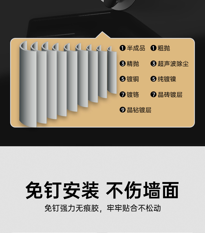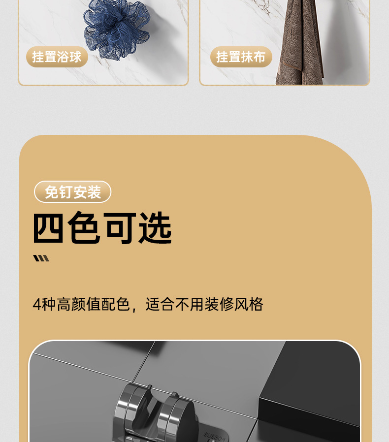 • 후크 포함 - 검정색 - 못이 없는 접착제 포함
