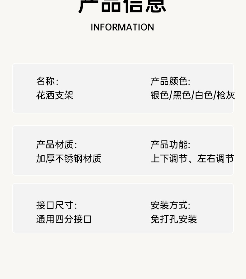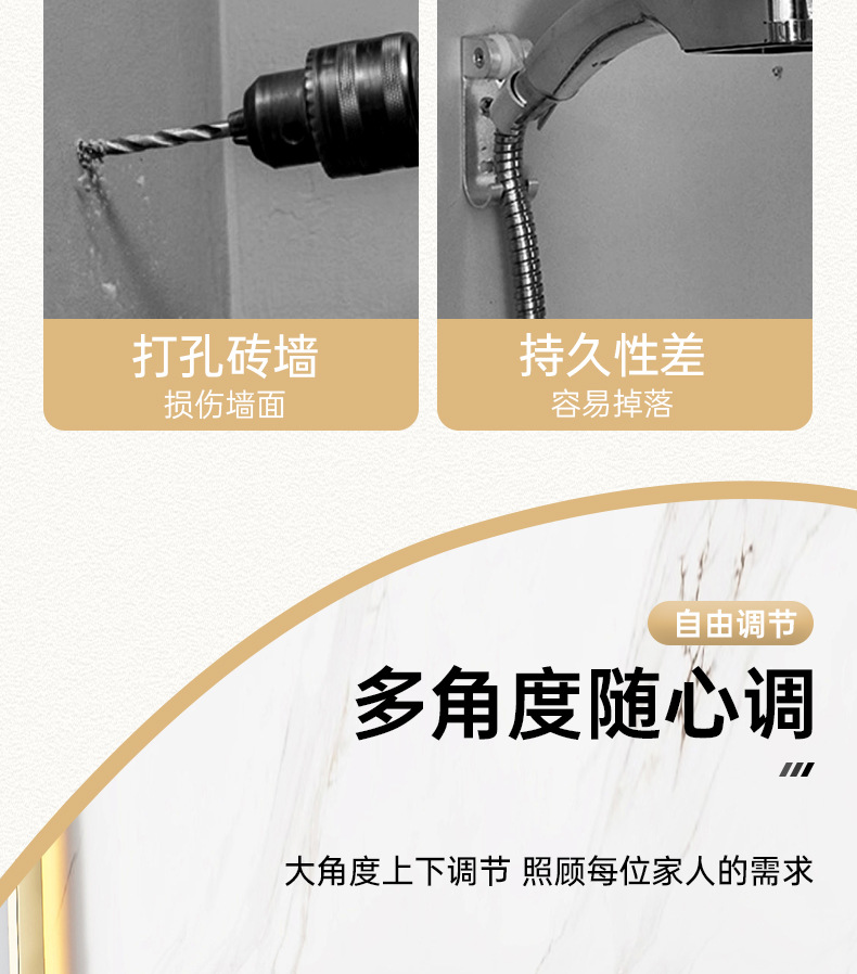 펀치없는 샤워 브래킷 조절 샤워 헤드 걸이 욕실 샤워 액세서리 샤워 캐노피 고정 벽베이스