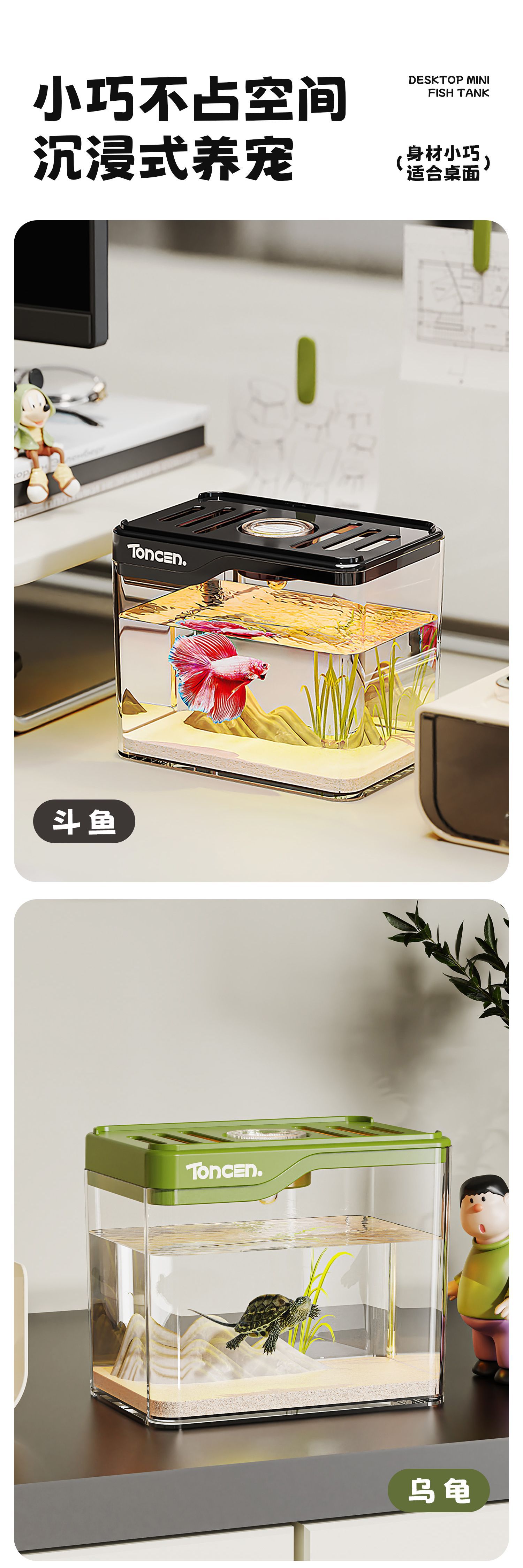거북 수조, 가정용 플라스틱 어항, 거실 수족관, 작고 심플하며 투명한 데스크탑, 수어를 키우기 좋은 특수 어항스토어 가기