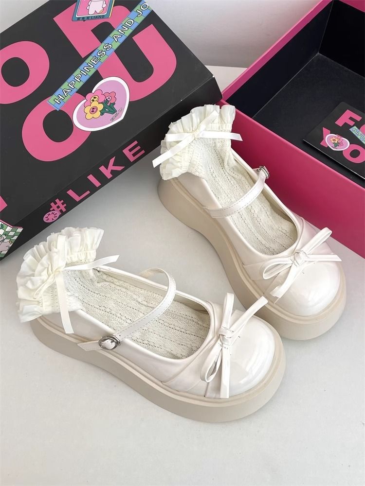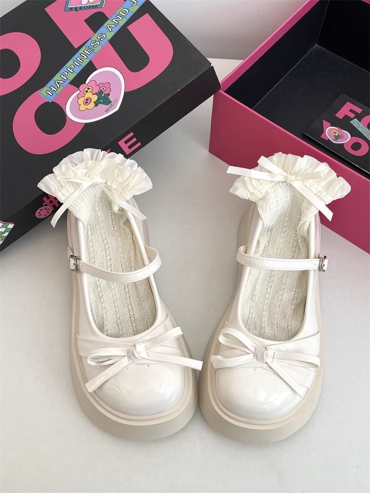 빈티지 달콤한 활 작은 가죽 신발 여성 2025 년 여름 새로운 고층 블랙 스타일리스트 고층 올 매치 싱글 신발