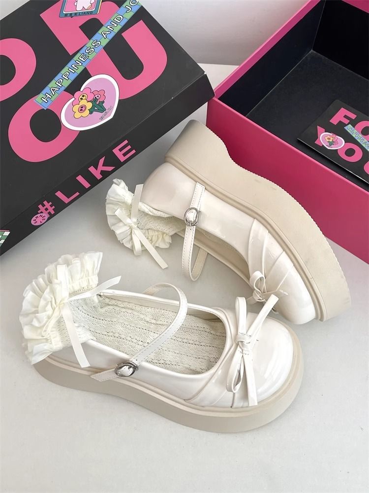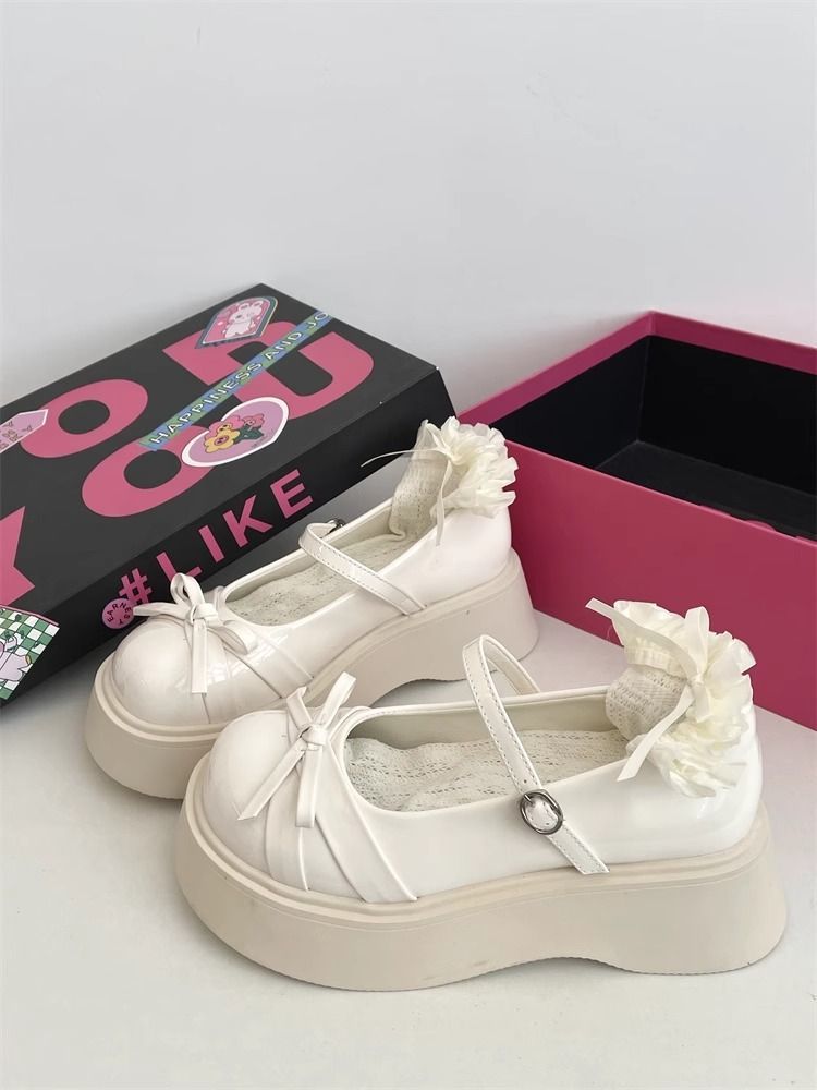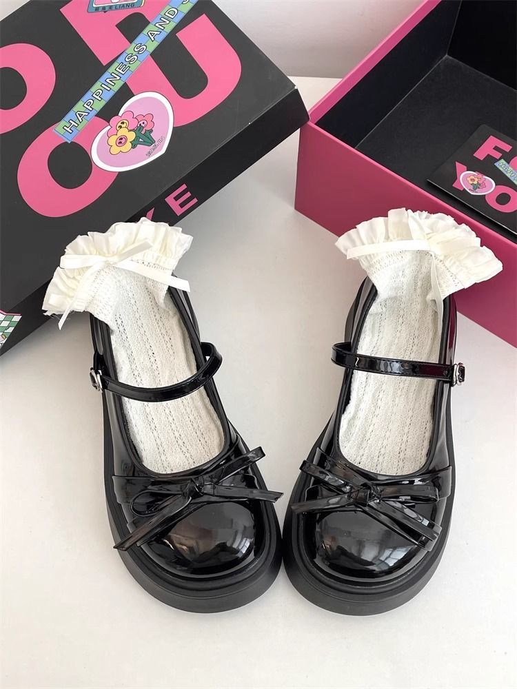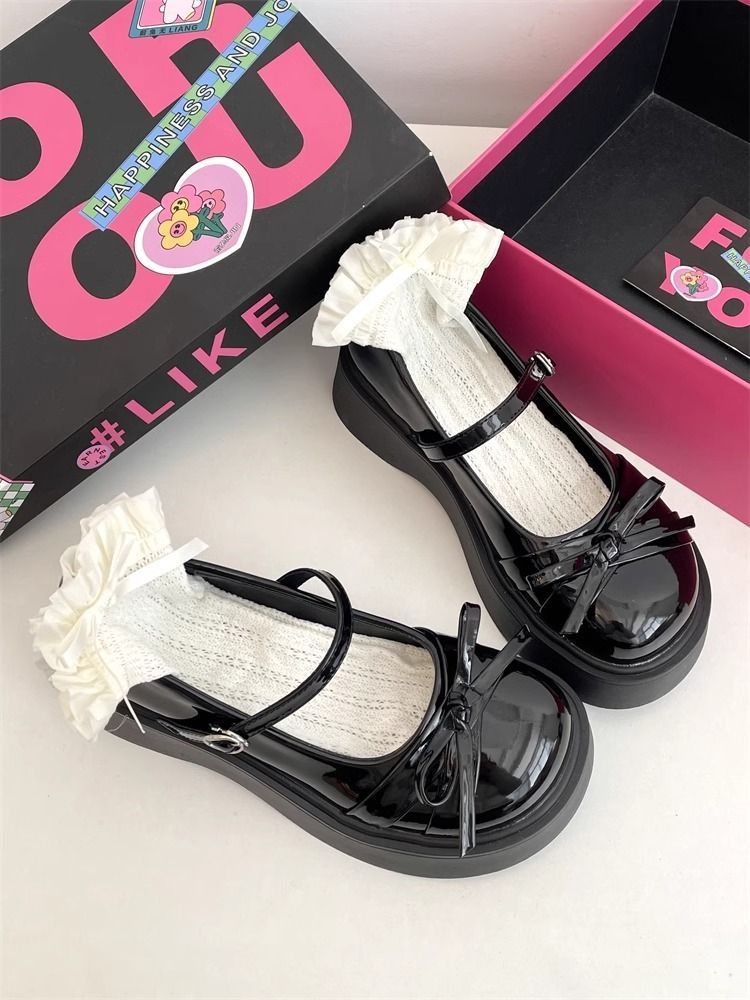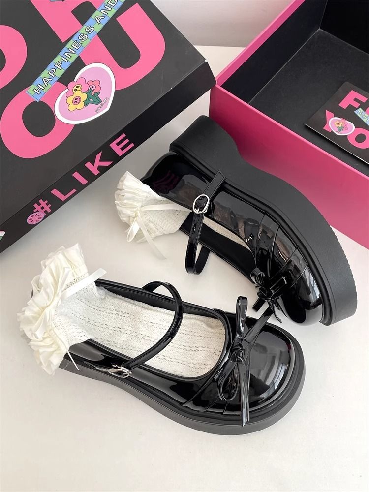 빈티지 달콤한 활 작은 가죽 신발 여성 2025 년 여름 새로운 고층 블랙 스타일리스트 고층 올 매치 싱글 신발스토어 가기
