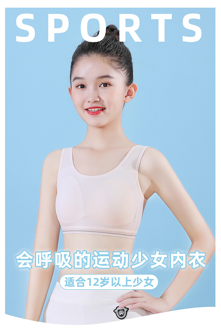 여아용 브라, 중고생, 여름 통기성 메쉬 스포츠 고정 컵 조끼 스타일 발달 기간 학생 속옷스토어 가기