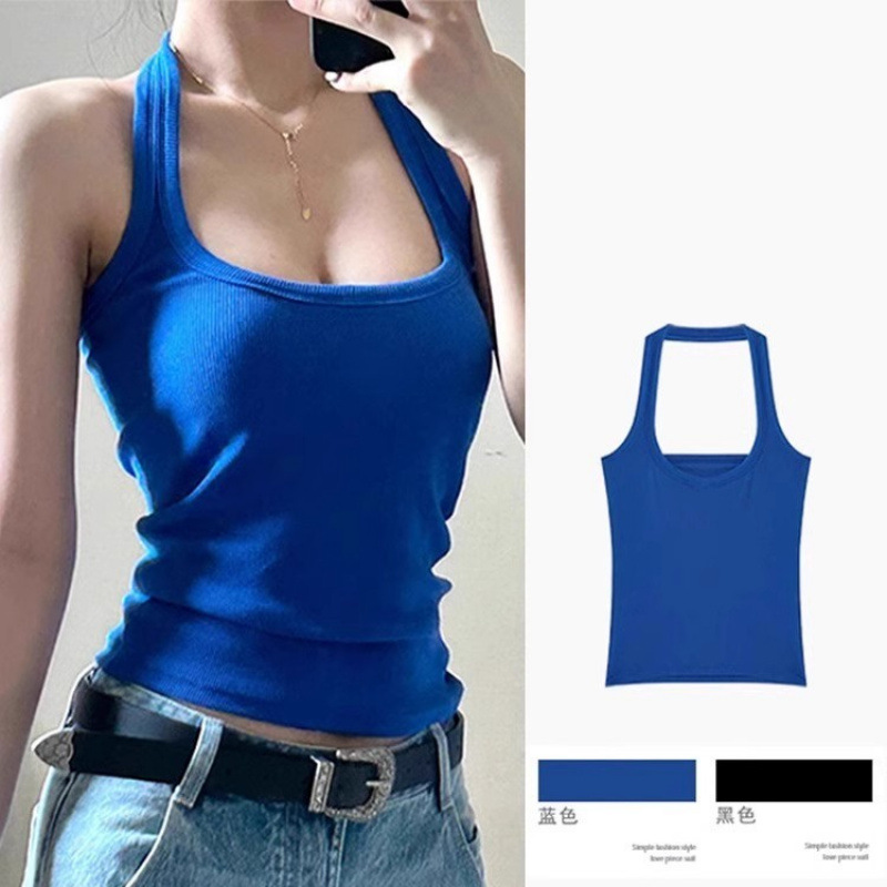 교수형 목이 달린 도파민 해변 착용 블루 카미 솔 여성용 여름복 슬림 핏 슬리밍 아메리칸 스위트와 핫 스몰 탑