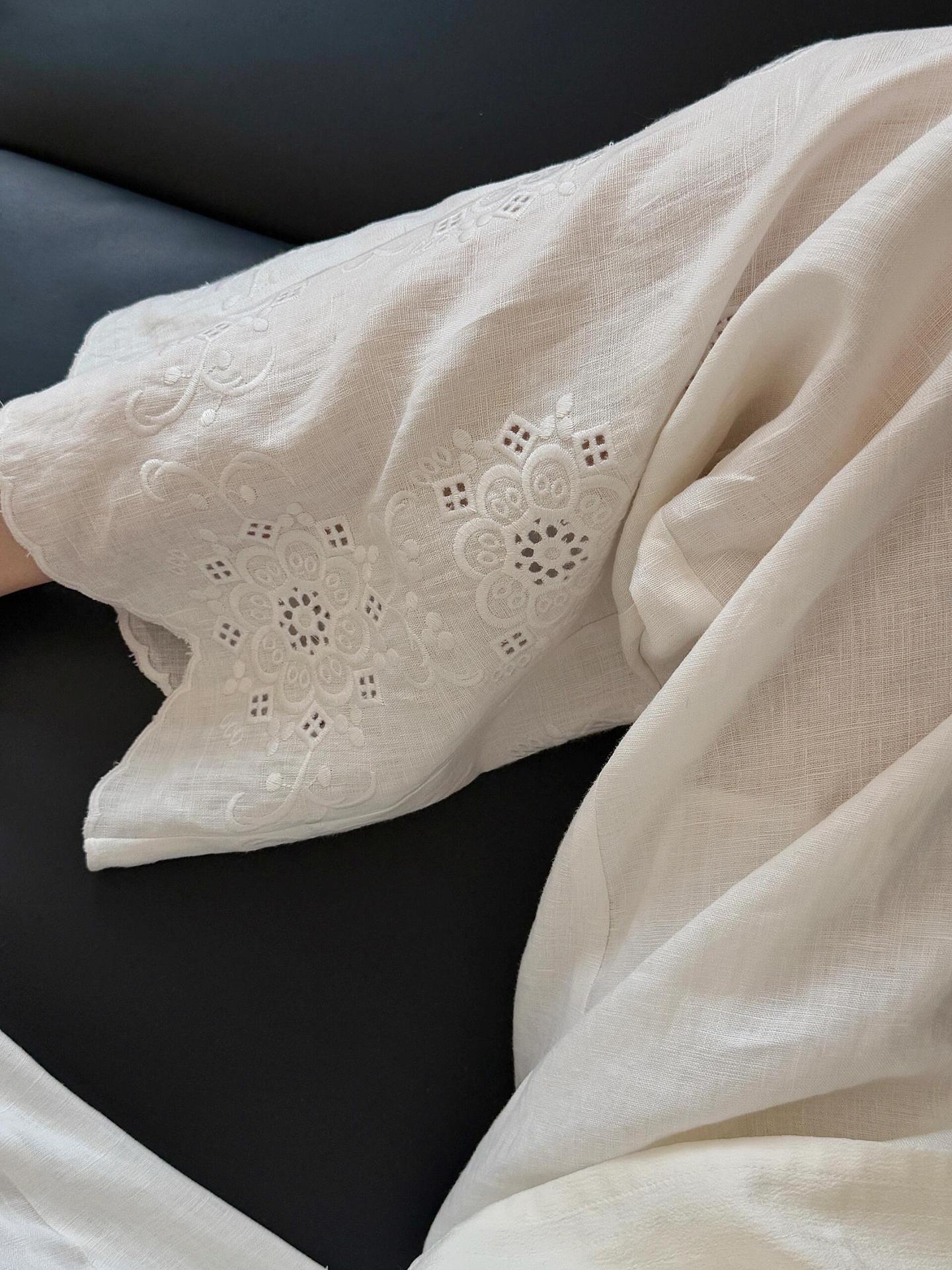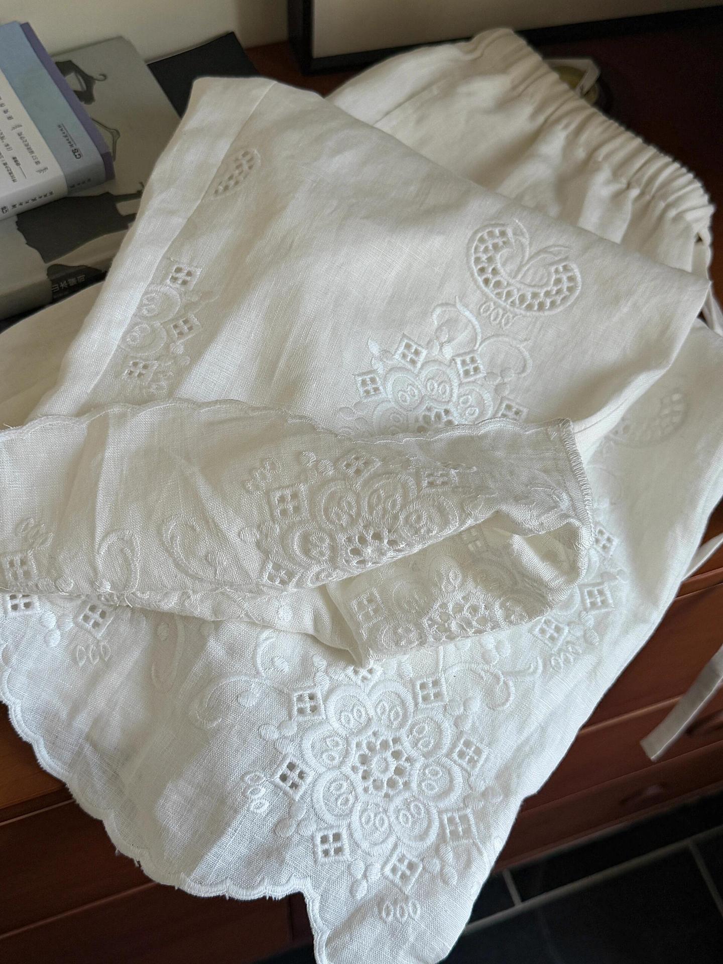 봄과 가을 새로운 우아한 스키니 젠틀 편안한 올 매치 패션 디자인 틈새 게으른 분위기 리넨 자수 바지스토어 가기